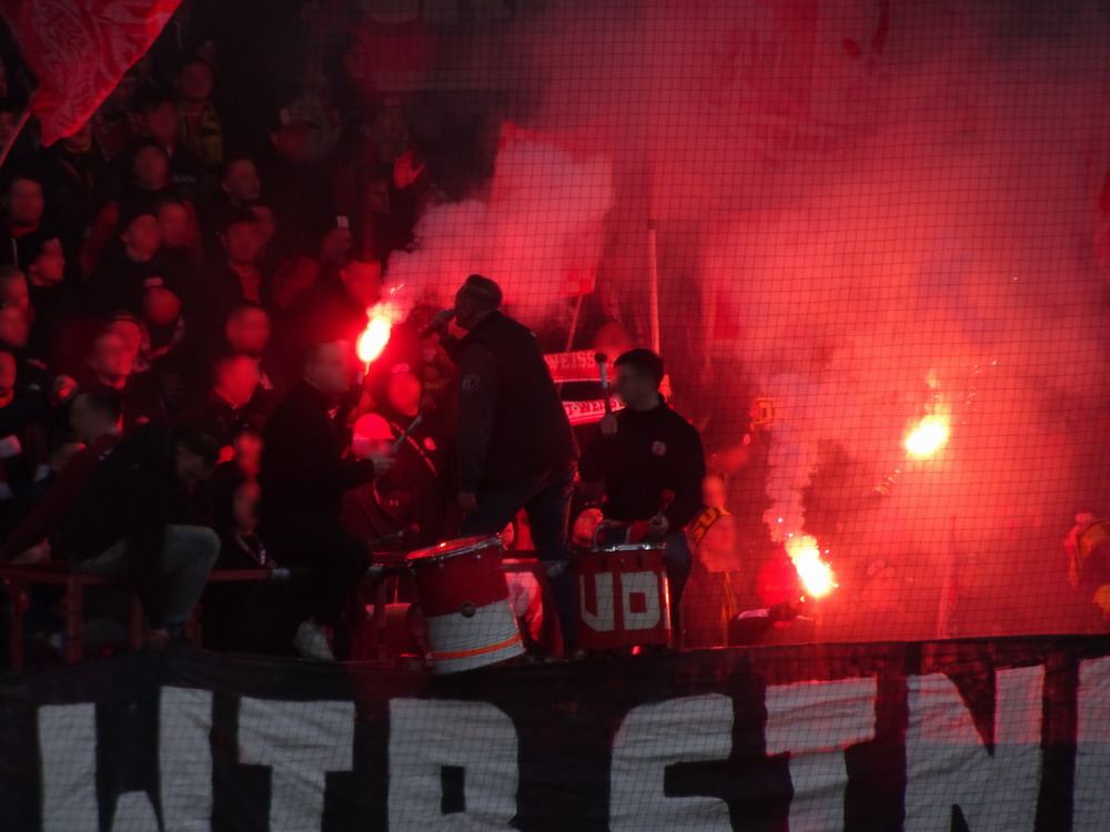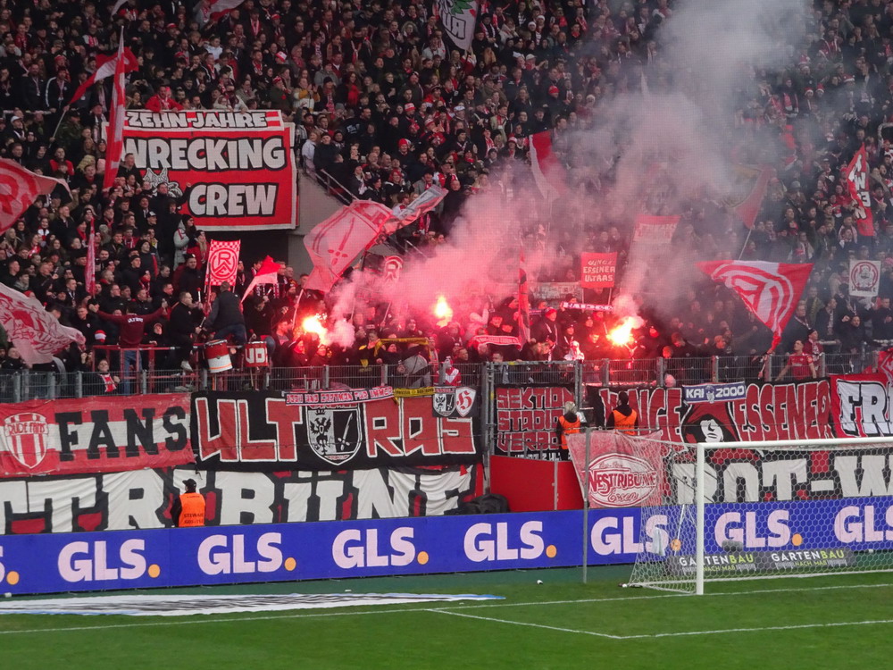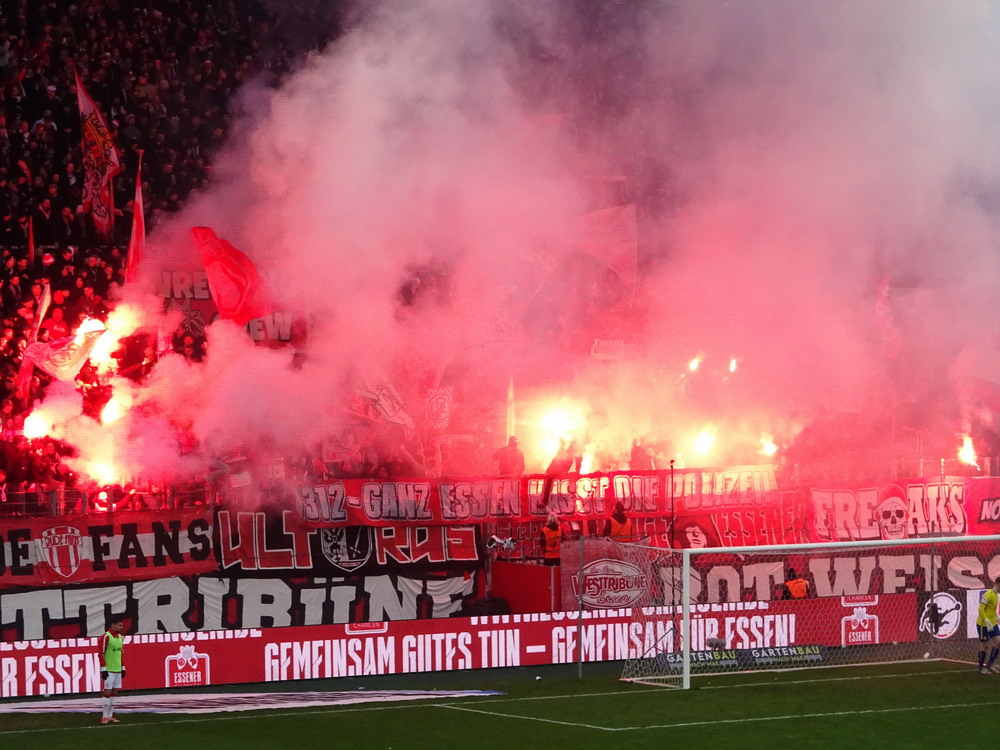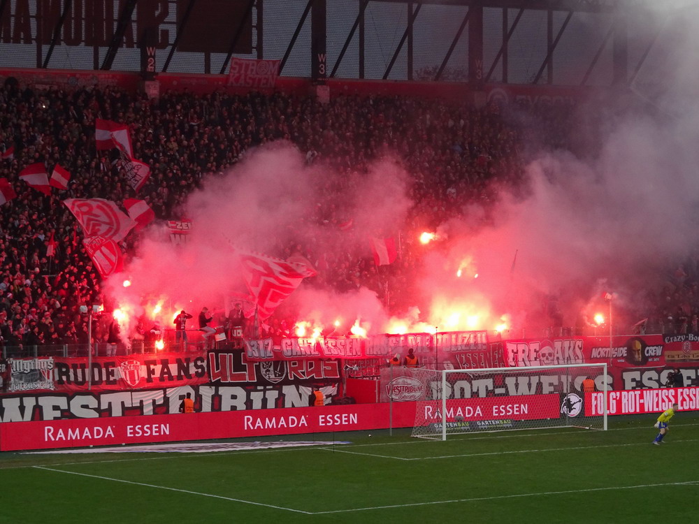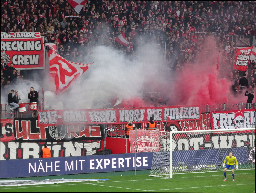 Ich bin zu Pyro positiv eingestellt. Der (verantwortungsvolle) Einsatz von Pyrotechnik ist für meinen Geschmack ein wertvolles optisches Stilmittel des Supports. Die RWE-Szene nutzte es in der Hinrunde aber zu häufig. Das gefällt nicht jedem und kostet vor allem viel Geld, da die Vereine ja vor dem Mafia-Verband einknicken und brav jede auferlegte Strafe zahlen, anstatt sich gemeinsam dagegen zu positionieren. Auch die zuletzt dauerpräsente, unsachliche Kritik, an der Polizei, beinahe eine Art Kriegserklärung, begründet durch ein jüngeres Choreo-Verbot aus mir nicht bekannten Gründen, findet in der rot-weissen Anhängerschaft keine Mehrheit. Zumal die Szene sich anmaßt für die ganze Stadt zu sprechen. Ich sehe polizeiliche Maßnahmen und Entscheidungen beim Fußball auch kritisch und oft nicht nachvollziehbar und willkürlich. Ein sachliches Aufbegehren trifft aber auf mehr Verständnis als wilde Polemik. Beide Sachverhalte spalten aktuell das rot-weisse Publikum und nach meiner Meinung wäre die Ultra-Szene gut beraten, die Schärfe herauszunehmen und etwas sparsamer mit brennbarem Material umzugehen, anderenfalls kann das die Stimmung bald endgültig vergiften. Was grundsätzlich schade wäre, aber eben auch die Mannschaft auf dem Rasen erreichen und hemmen kann, was eine aktuell durchaus existente Aufstiegs-Chance dann deutlich verkleinert.