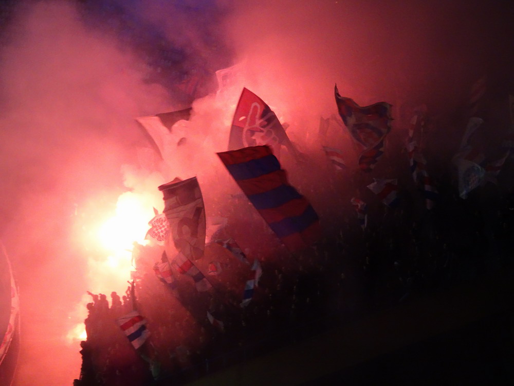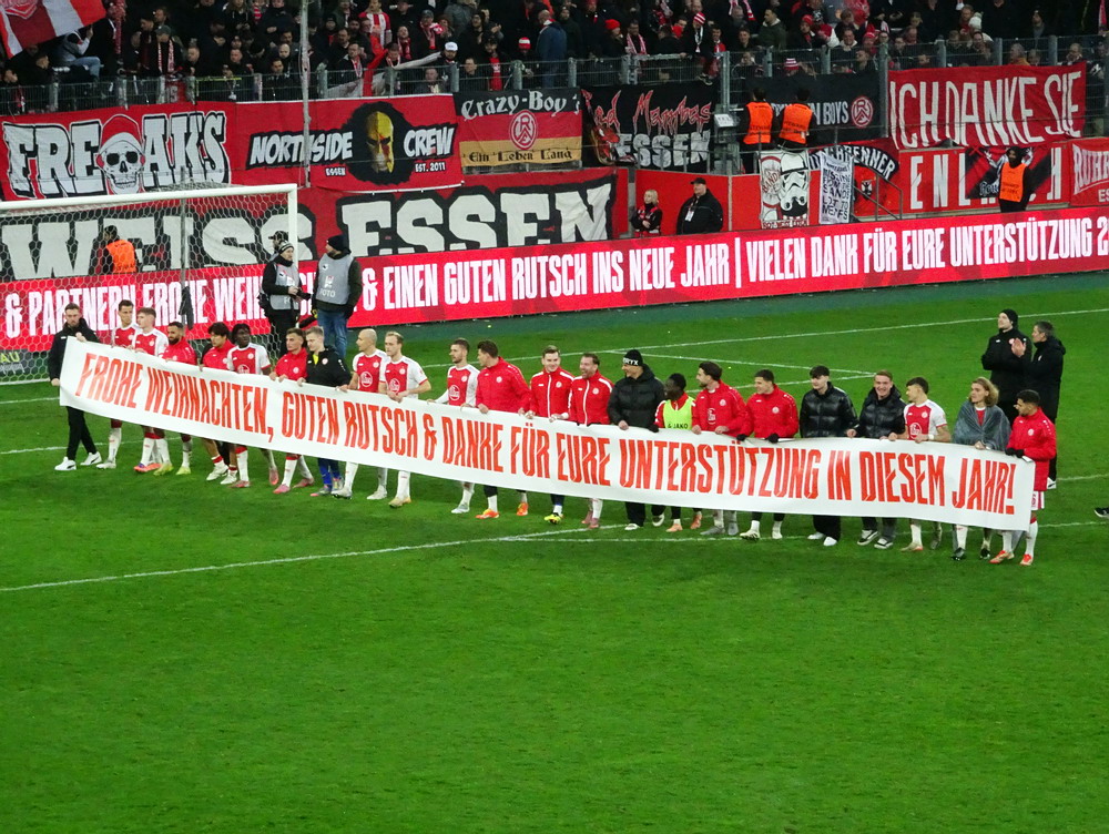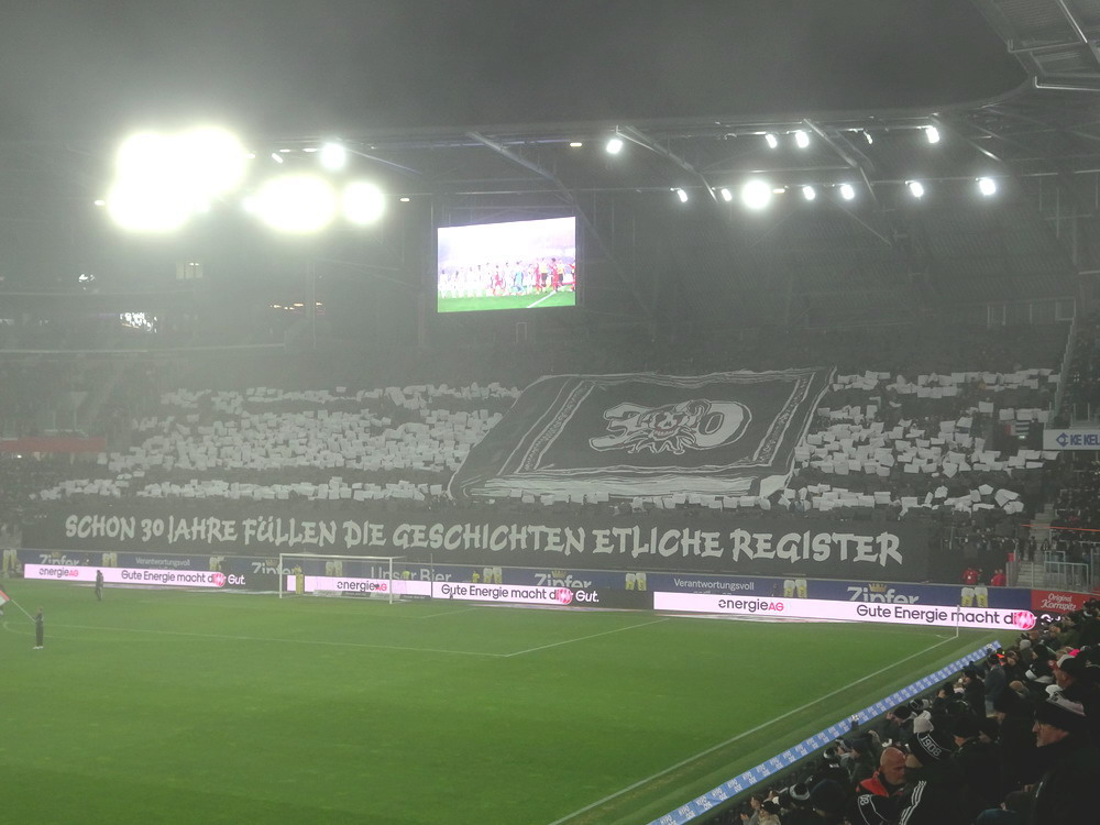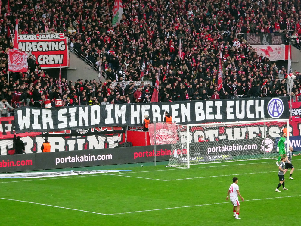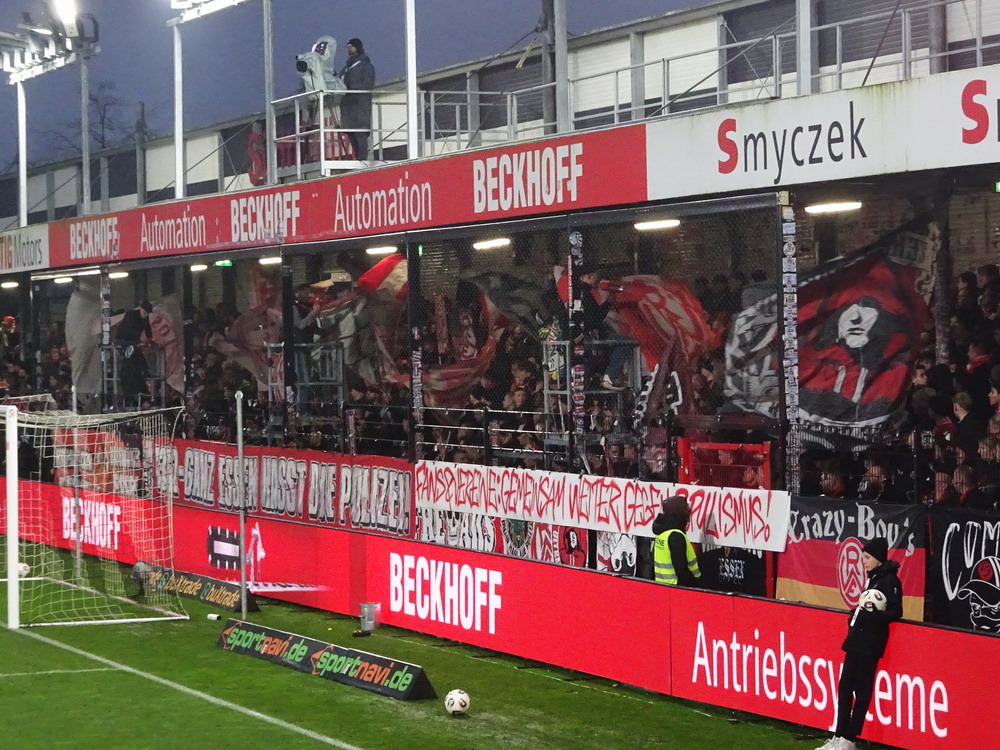 Ich bin zu Pyro positiv eingestellt. Der (verantwortungsvolle) Einsatz von Pyrotechnik ist für meinen Geschmack ein wertvolles optisches Stilmittel des Supports. Die RWE-Szene nutzte es in der Hinrunde aber zu häufig. Das gefällt nicht jedem und kostet vor allem viel Geld, da die Vereine ja vor dem Mafia-Verband einknicken und brav jede auferlegte Strafe zahlen, anstatt sich gemeinsam dagegen zu positionieren. Auch die zuletzt dauerpräsente, unsachliche Kritik, an der Polizei, beinahe eine Art Kriegserklärung, begründet durch ein jüngeres Choreo-Verbot aus mir nicht bekannten Gründen, findet in der rot-weissen Anhängerschaft keine Mehrheit. Zumal die Szene sich anmaßt für die ganze Stadt zu sprechen. Ich sehe polizeiliche Maßnahmen und Entscheidungen beim Fußball auch kritisch und oft nicht nachvollziehbar und willkürlich. Ein sachliches Aufbegehren trifft aber auf mehr Verständnis als wilde Polemik. Beide Sachverhalte spalten aktuell das rot-weisse Publikum und nach meiner Meinung wäre die Ultra-Szene gut beraten, die Schärfe herauszunehmen und etwas sparsamer mit brennbarem Material umzugehen, anderenfalls kann das die Stimmung bald endgültig vergiften. Was grundsätzlich schade wäre, aber eben auch die Mannschaft auf dem Rasen erreichen und hemmen kann, was eine aktuell durchaus existente Aufstiegs-Chance dann deutlich verkleinert.