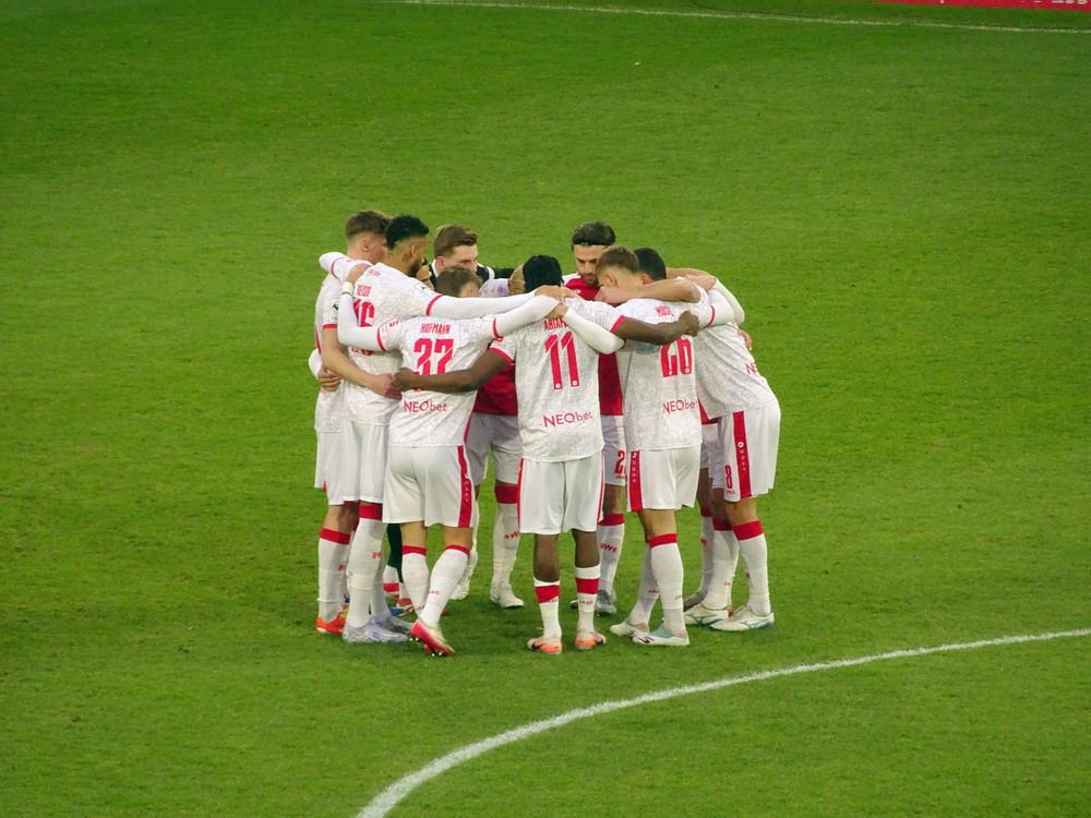 Die Gäste versuchten mitzuspielen, das gelang auch phasenweise, insgesamt hatte der RWE aber das heimische Heft in der Hand. Brumme bekam dann nach einem von ihm selbst getretenen Eckstoß das Spielgerät auf Umwegen zurück, nahm von der Strafraumgrenze Maß und jagte das Teil zum verdienten Ausgleich in die Maschen. So ging es in die Pause. Nach dem Seitenwechsel hatte der Jahn ganz starke zehn Minuten mit einigen Abschlüssen. Aber man weiß ja… haust Du Dinger nicht rein, macht es irgendwann der Gegner. Über mehrere Stationen kam der Ball am Sechzehner zu Hofmann, der über eine feine Schusstechnik verfügt und diese nutzte, um die Kirsche aus halbrechter Position zur Führung ins lange Eck abzusenden. Nur ein paar Minuten später behinderten sich der Jahn-Schnapper und ein Verteidiger nach einem Brumme-Eckball gegenseitig. Alonso hieß der Nutznießer, der aus kurzer Distanz auf 3:1 erhöhte. Mitnichten die Entscheidung, denn die Gäste gaben sich nicht auf und verkürzten eine Viertelstunde vor dem Ende noch einmal. Die Regensburger erkämpften sich dann Eckball um Eckball – 8:15 lautete das Eckenverhältnis am Ende, wenn ich richtig aufgepasst habe – von denen aber die wenigsten gefährlich wurden. Da aber ie Roten die Konterchancen nicht konzentriert ausspielten, blieb es spannend bis in die Nachspielzeit. In dieser hätte der Ex-Kölner Dietz zum Held für die Bajuwaren werden können, wenn sein Abschluss mit der Hacke nicht knapp über sondern unter die Querlatte geflogen wäre. So reichte es zu einem knappen Heimerfolg, aber auch der wird mit drei Punkten belohnt.