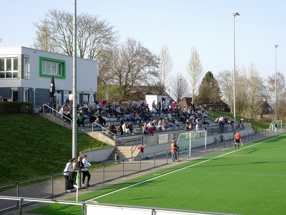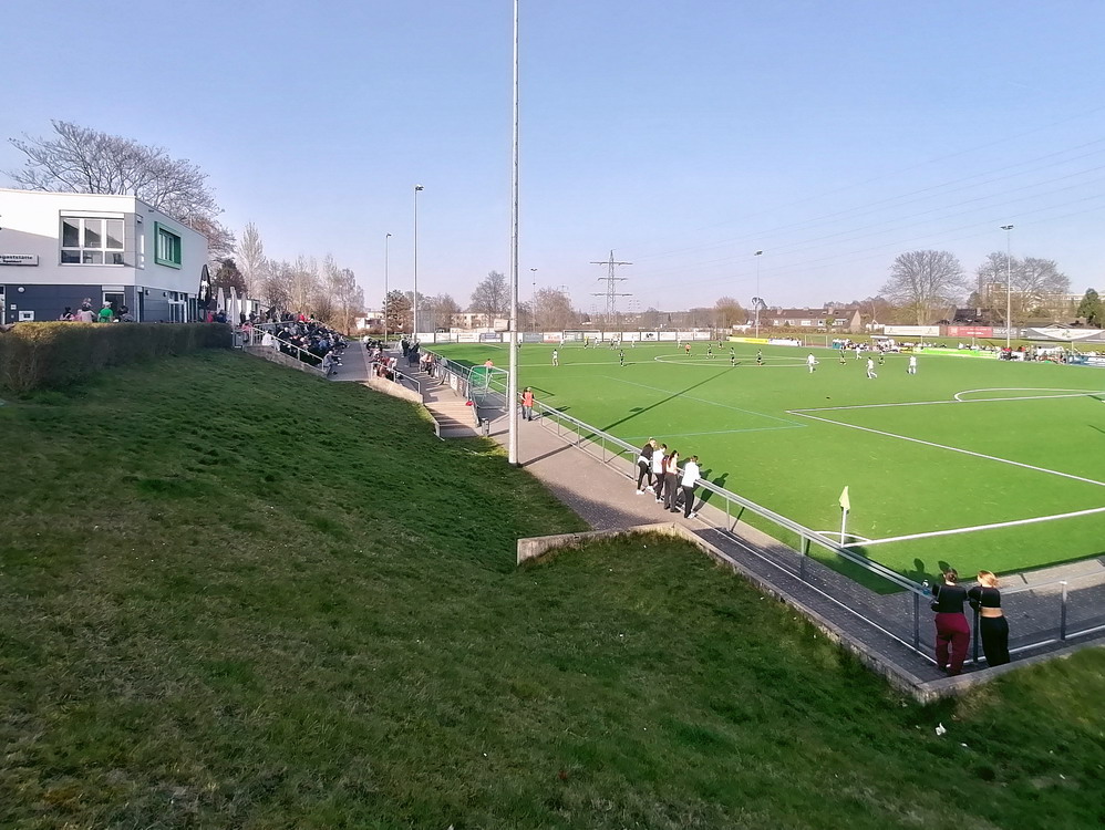 Es dauerte lange. Für meine Geschmack zu lange und ich empfand es auf eine Art erstaunlich, wie ruhig das Publikum nach anfänglichen Unmutsbekundungen gegen die Gäste-Fans blieb. Nach ziemlich exakt einer Dreiviertelstunde wurde die Partie tatsächlich fortgesetzt. Für meinen persönlich Geschmack skandalös, war das aber letztlich eine Entscheidung des Unparteiischen, dessen Beweggründe ich nicht kenne und daher nicht bewerten kann, und auch die Sicherheitsorgane durften bestimmt ihren unsäglichen Senf dazugeben. Für Felix Wienand ging es allerdings nicht weiter, dieser wurde zur ärztlichen Untersuchung ins Krankenhaus, später sickerte die Diagnose Knalltrauma mit akuter Belastungsreaktion durch. Für ihn kam Tino Casali in die Partie, der im Winter als Backup verpflichtet wurde, nachdem sich Jakob Golz verletzte. Casali fischte direkt eine Flanke und wehrte einen unorthodoxen Ball aufs kurze Eck stark ab, bekam dadurch Sicherheit. Er spielte insgesamt eine unaufgeregte Partie und strahlte damit Ruhe aus, das hat mir gut gefallen. Der nächste Aufreger ließ aber nicht lange auf sich warten. Waldhof-Stürmer Boyd ging mit zu hoher Extremität zum Ball und traf Hofmann unglücklich und sicher ungewollt im Gesicht. Ein Platzverweis sieht das Regelwerk dafür dennoch vor und der RWE war fortan in Überzahl. Optisch machte sich das aber lediglich dadurch bemerkbar, dass der Waldhof nun annähernd gar nicht mehr in den RWE-Sechzehner kam, ansonsten konnte die Gäste die Unterzahl gut kompensieren.