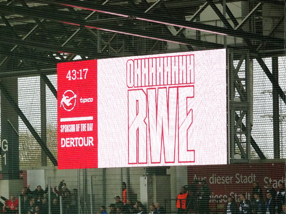 Nach unsäglichen durch die Presse angefeuerten Diskussionen, dass es nicht gelingt, in Essen eine Aufstiegseuphorie zu entfachen und nicht alle verfügbaren Gäste-Tickets im Vorfeld des Spiels vergriffen waren, befanden sich unter den sechseinhalbtausend letztlich doch an die 4.000 aus der Ruhr-Metropole. Davon mindestens ein Drittel auf der Haupttribüne, die einfach eine bessere Sicht auf das Geschehen und als einzige Tribüne einen Wetterschutz bietet, auch wenn letzteres heute zu vernachlässigen war. Nach drei Siegen reiste der RWE mit breiter Brust an. Alonso präsentierte dann aber direkt mal wieder einen seiner seltenen aber immer wieder mal auftretenden Aussetzer, zum Glück folgenlos. Der sonst insgesamt wieder starke Verteidiger legte einem Kölner Stürmer die Murmel nach vier Minuten in den Lauf, dieser war aber von dieser Großzügigkeit dermaßen übermannt, dass er das Spielgerät über das Tor drosch. Dann nahmen die Roten Fahrt auf. Nach zehn Minuten eroberte Alonso im Mittelfeld vom Gegner den Ball, dieser gelangte zu Müsel, der wiederum auf Mizuta durchsteckte. Der quirlige Japaner legte nach rechts auf den mitgelaufenen Abiama ab, welcher kompromisslos abschloss und die Murmel ins rot-weisse Glück beförderte. Auch die nächste Situation ging über Müsel, der einen herrlichen Diagonalpass auf Abiama schlug, der eine lang und länger werdende Flanke auf den zweiten Pfosten servierte, wo der einlaufende Brumme nur wenig mehr als eine Minute nach dem ersten Treffer direkt erhöhte.