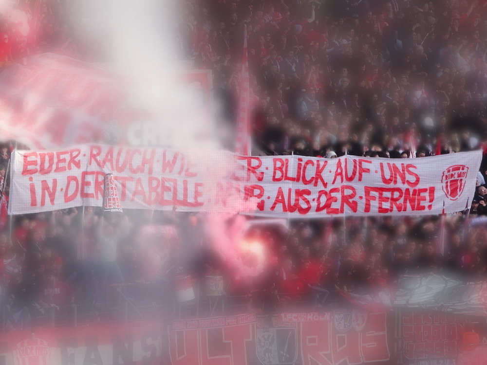 Auch das Auswärtsspiel der Roten auf der Kölner ‚Schäl Sick‘ hatte ich ursprünglich nicht auf der Speisekarte. Ursprünglich wurde dieses Wochenende für den Ausflug mit der buckligen Verwandtschaft sogar gezielt ausgewählt, da mich der Trip zur Viktoria prinzipiell nur nervt. Dem eigentlich einzigen Pro mit der kurzen Anreise standen zwei schwere Kontras entgegen. Zum einen das Stadion, welches einfach nur nervt. Die stattliche Haupttribüne ist noch recht ansehnlich, der Gästebereich dagegen einfach nur unappetitlich, denn die flache auf der alten Bausubstanz ruhende Stehgerade ist kein wirkliches Fundament für gute Stimmung. Der Stahlrohr-Sitzblock für die Gäste wurde in die Ecke gezwängt und auch die winzige, mit bloßem Auge kaum zu erkennende Vikki-Szene kann sich auf ihrem Metallgerüst kaum wohlfühlen. Dazu erinnert der VIP-Bereich hinter dem nördlichen Tor eher äußerlich an ein Billard-Cafe. Zum anderen litt der glorreiche RWE in den letzten Spielen im Stadtteil Höhenberg an chronischer Erfolg- und Torlosigkeit. Seit mehr als 13 Jahren konnte kein dreifacher Punktgewinn erreicht, in den letzten fünf Spielen nicht einmal ein Tor erzielt werden. Überhaupt war keine Torflut zu erwarten, in den zehn Spielen seit dem letzten RWE-Sieg im rechtsrheinischen Köln fielen gerade einmal genauso viele Tore, in den letzten fünf Partien gar nur deren zwei. Die späte Anstoßzeit, die eben nach Rückkehr aus Niedersachen die Option öffnete, und der aktuelle Erfolgslauf animierten mich dann doch anzureisen und dem Gesetz der Niederlagen-Serie nach musste ja auch diese irgendwann mal reißen.