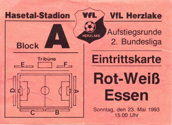 In 1993 wurde in drei Gruppen jeweils ein Aufsteiger ermittelt. Eine Gruppe umfasste die Meister der in drei Staffeln spielenden Oberliga Nordost, in der zweiten Gruppe spielten die Meister Baden-Württembergs, Hessens, Bayerns und dem Vizemeister der Oberliga Nord, welcher als einziger Tabellenzweiter antreten durfte, da die Nord-Oberliga ein sehr weites Gebiet umfasste. Und in der dritten Gruppe kämpfte der RWE mit den Meistern Westfalens, Preußen Münster, des Südwestens, Eintracht Trier, und des Nordens, dem VfL Herzlake. Die Preußen und der RWE gingen als Favoriten in die Runde – es war nahezu klar, dass der Platz an der Sonnen zwischen diesen beiden Clubs ausgemacht würde. Der Trierer Eintracht wurden Außenseiter-Chancen eingeräumt und der VfL aus dem 4000-Einwohner-Kaff Herzlake im Emsland war das unbeschriebene Blatt, das aber zurecht keiner auf der Rechnung hatte.