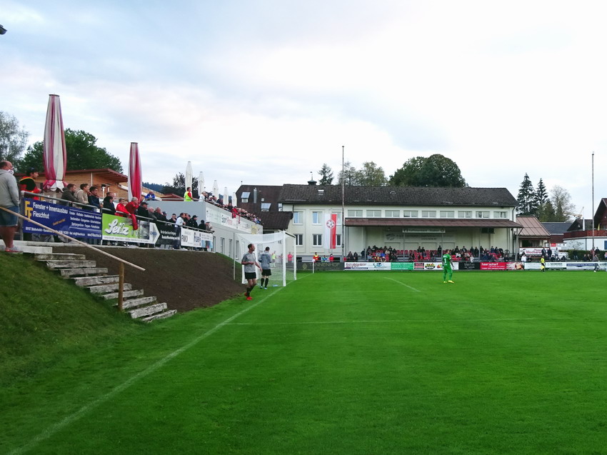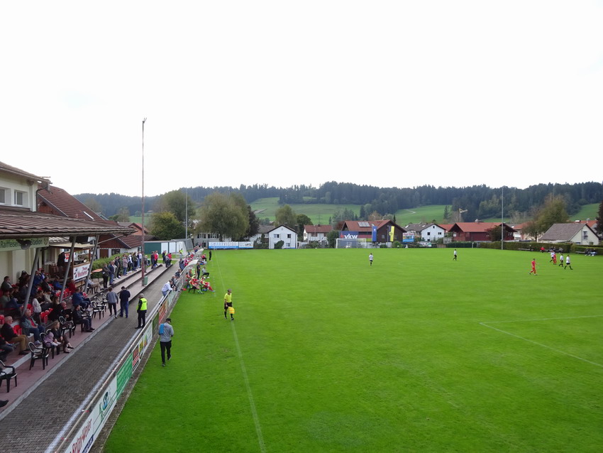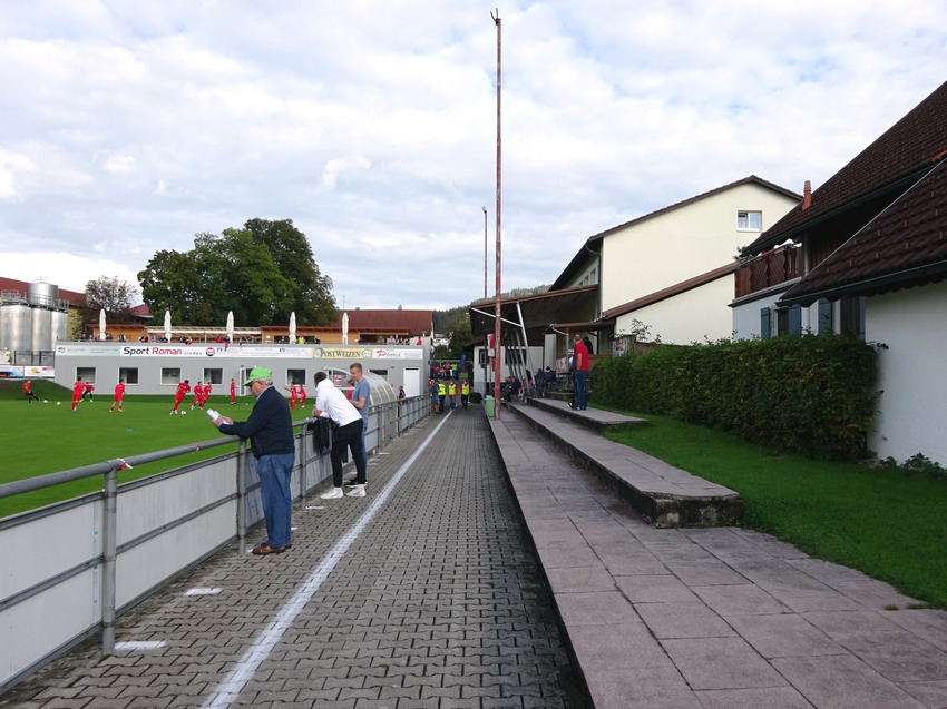 Am heutigen Tage spielte der glorreiche RWE gegen die Vereinsfarben-Brüder aus dem westfälischen Ahlen. 300 Zuschauer waren für dieses Spiel zugelassen und davon wurden 100 Personen unter den aktuell 4600 Dauerkarten-Besitzern ausgelost, die dieses Spiel im Stadion verfolgen durften. Ich gewinne ja nie etwas, aber es war sonnenklar, dass mein Name aus dem Lostopf gefischt wird, wenn ich knappe 600 Kilometer entfernt bin. So durfte sich halt einer meiner rot-weissen Leidensgenossen über die Teilnahme an diesem Spiel freuen. Ganz ohne Rot-Weiss musste ich dann aber doch nicht auskommen, denn die Namensvetter aus dem bayrischen Weiler kickten heute gegen in der württembergischen Landesliga. Mangels Flutlicht wurde im ganz schnuckeligen Ground früh angestoßen. Die Lösung, warum ein bayrischer Verein in der Württembergischen Landesliga mitwirkt, ist in der Geschichte des Landkreises Lindau zu finden, zu dem Weiler gehört. Lindau liegt als einziger bayrischer Kreis im historischen Land Württemberg-Hohenzollern und wurde erst in den 50er Jahren dem Freistaat zugeordnet. Die fußballerische Ordnung blieb jedoch bestehen. 180 Leute durften sich an einem ganz ordentlichen Spiel erfreuen, welches die Gastgeber verdient für sich entschieden.