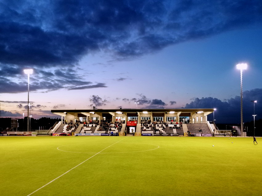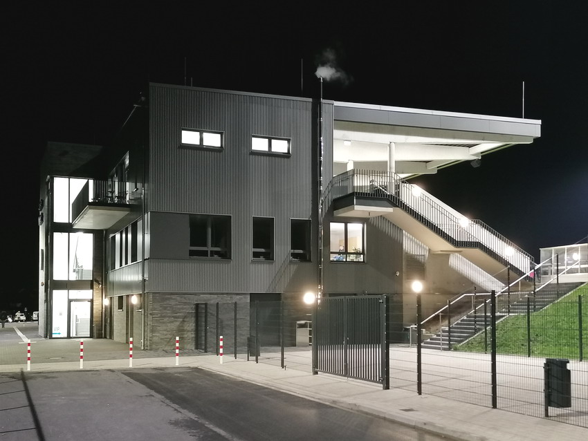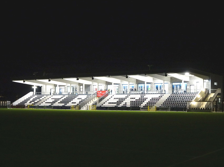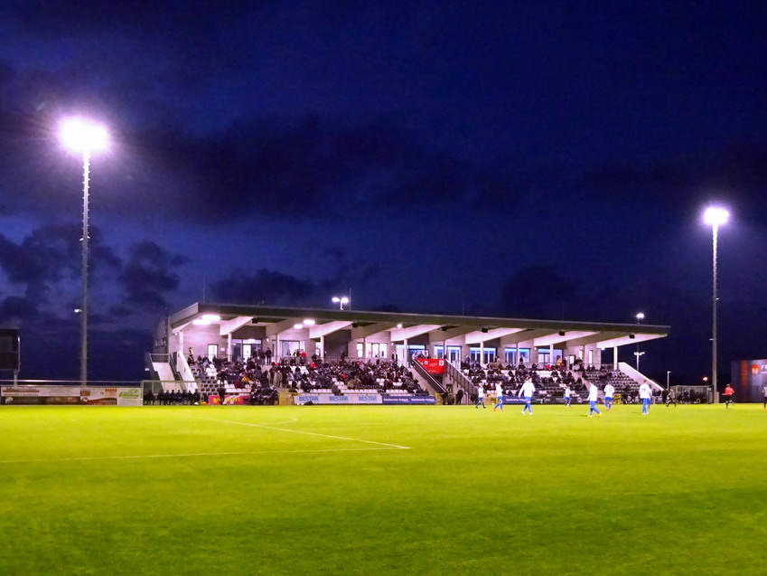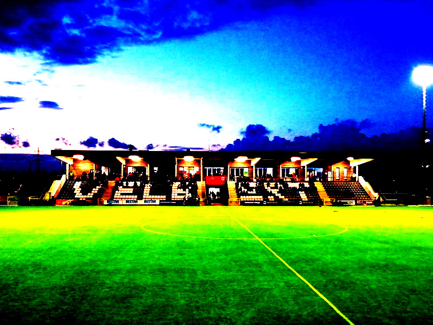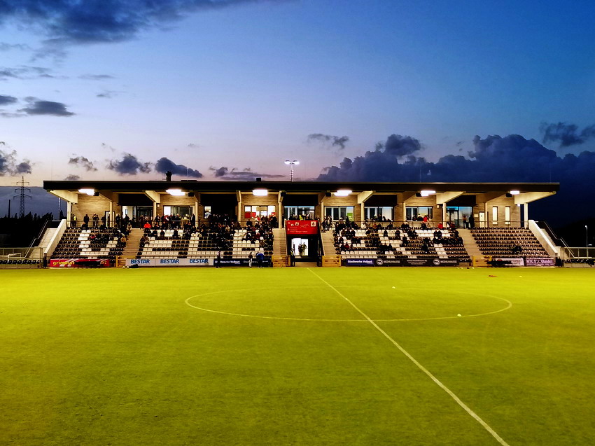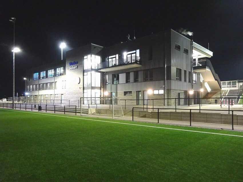 Im Juli musste die SSVg Velbert ihre alte Heimat, das ‚Stadion an der Sonnenblume‘, räumen. Die Stadt hat eine alternative Nutzung vorgesehen, was vermutlich nichts anderes bedeutet, als Wohnbebauung. Damit wurde wieder einmal ein schönes kleines Stadion mit eigener Identität aufgegeben und an anderer Stelle durch einen recht sterilen Neubau ersetzt. Natürlich ist das neue Velberter Stadion für einen Oberligisten recht ansehnlich, aber es ist eben auch mit anderen Neubauten austauschbar. Da die Spielvereinigung auf Sicht aber höhere Ziele anstrebt, kann diese Anlage natürlich einen weiteren Schub verleihen. Am heutigen nasskalten Mittwoch-Abend fand das Topspiel des Spieltages hier statt. Die Gastgeber empfingen den Tabellendritten aus dem Monheimer Stadtteil Baumberg, der zwar mittlerweile als gestandener Oberligist angesehen werden darf, aber aufgrund fehlender Infrastruktur mit hoher Wahrscheinlichkeit einen möglichen Aufstieg eh nicht annehmen würde. Das Spiel begann ausgeglichen, aber nach einer Viertelstunde übernahm die Sport- und Spielvereinigung von 1902 die Regie und erzielte bis zum Seitenwechsel drei Treffer. Die Vorentscheidung? Sah lange danach aus, bis die Gäste der Partie zehn Minuten vor dem Ende mit einem Doppelschlag Spannung verliehen. Zum Ausgleich sollte es aber nicht mehr reichen, zur Freude von knapp zehn aktiven Anhängern, die ihr Team mit den ihnen zur Verfügung stehenden Möglichkeiten unterstützten. Neben mir waren noch zwei Hände voll andere Anhänger der ‚Bewegung‘ anwesend, so dass hier und da ausreichend Gelegenheit zum Smalltalk blieb.
