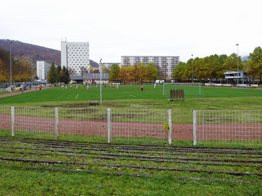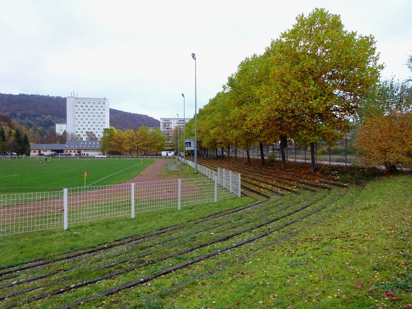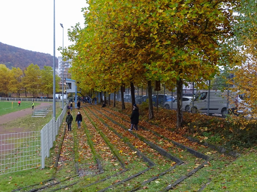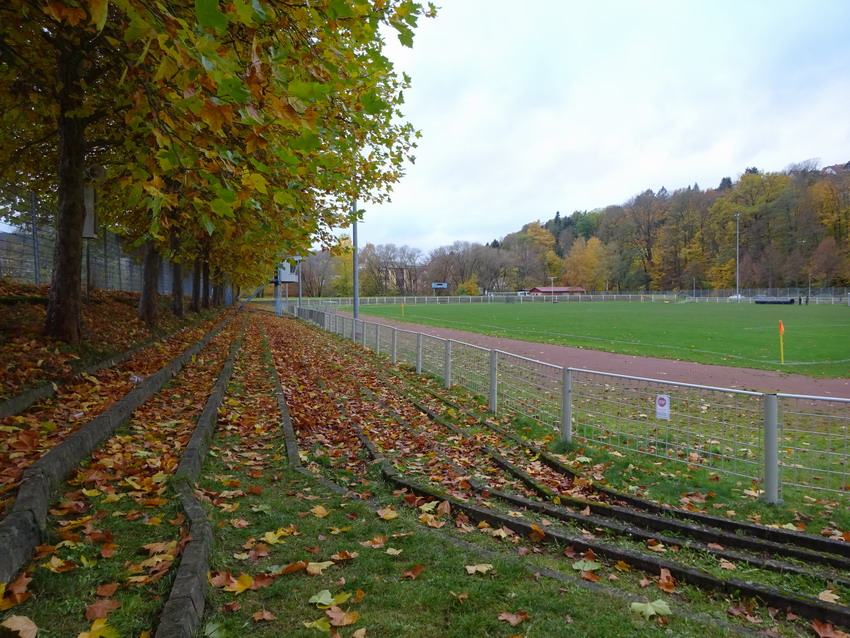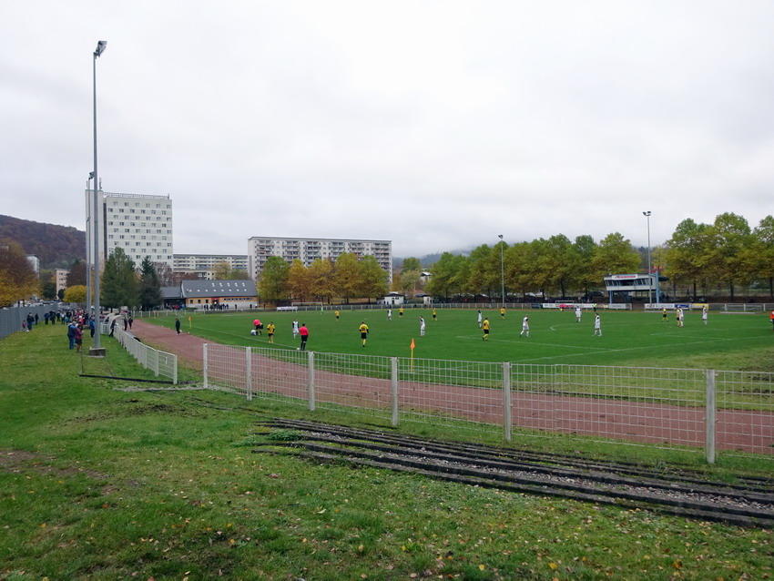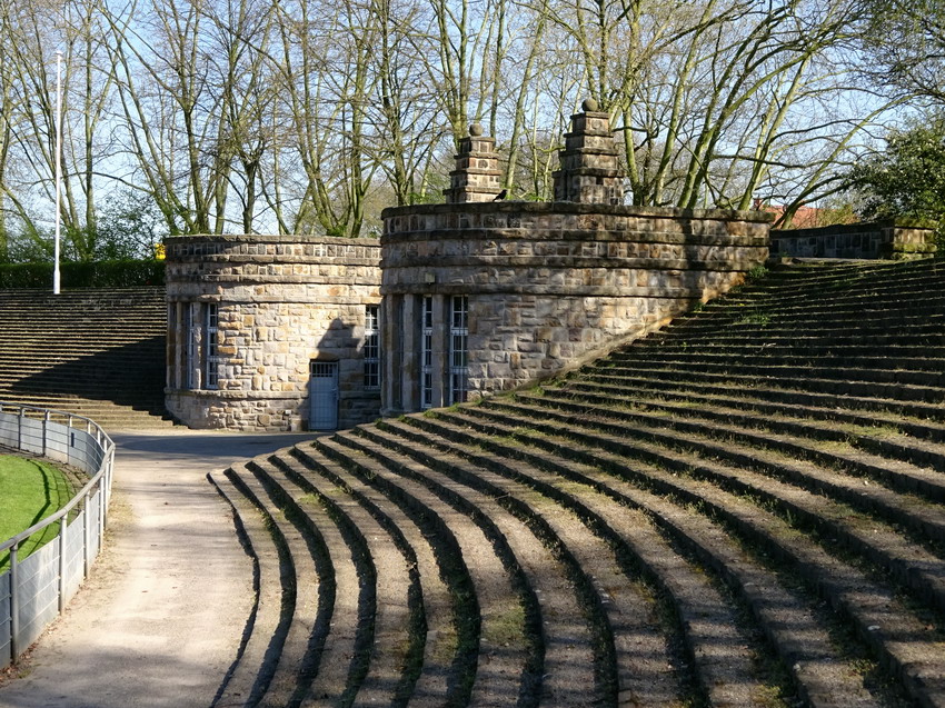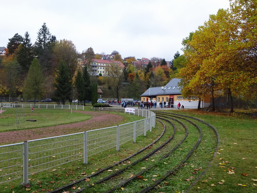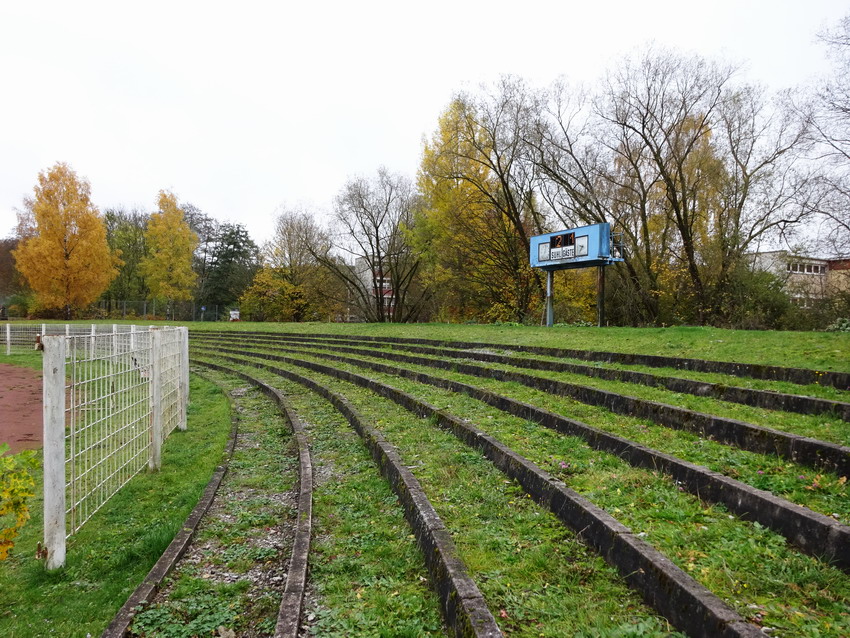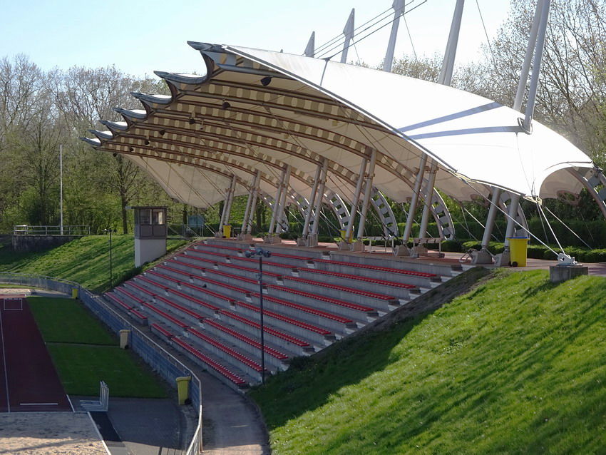 Als ich während der ersten Lockdown-Phase viel mit dem Rad unterwegs war, führte mich der Weg auch mal ins nahe Gladbeck. Ziel war dort die ‚Vestische Kampfbahn‘, welche heute nur noch den lieblosen und charakterfreien Namen ‚Stadion Gladbeck‘ trägt. Mein erster Besuch hier hat in den frühen 90er Jahren stattgefunden. Der glorreiche RWE trug ein Freundschaftsspiel aus, welches dick und fett zweistellig gewonnen wurde. Den Gegner kann ich allerdings nicht mehr sicher benennen. Blass kann ich den Nebelschwaden den Namen VfB Kirchhellen erkennen, aber wirklich sicher bin ich mir nicht. Ein weiteres Mal weilte ich vor einigen Jahren zum Pokalfinale des Kreises Gelsenkirchen in diesem wundervollen Rund. Fußballspiele finden eher selten in der Kampfbahn statt. Diese wird überwiegend für leichtathletische Disziplinen genutzt. Was schade ist. Denn das unter Denkmalschutz stehende Stadion ist genauso beeindruckend wie gepflegt. Mit seinem wuchtigen Hauptportal, den weiteren beiden Zugangstunneln und den weitläufigen, unbefestigten Rängen fühlt man sich in andere Zeit versetzt. Genau 37.612 Zuschauer finden Platz, 1.400 davon auf der Sitztribüne, die erst vor gut zehn Jahren mit einer zeltartigen Konstruktion überdacht wurde. Bis in die 80er Jahre waren Sitzplätze überhaupt nicht vorhanden und die weiten Ränge boten ausschließlich Stehplätze. Eröffnet wurde die Kampfbahn 1928. Einen dauerhaft nutzenden Verein gab es nie. In den Jahrzehnten vor und nach dem Krieg wurden einzelne Endrunden-Spiele um die westdeutsche Meisterschaft und die deutsche Meisterschaft ausgetragen. Die STV Horst-Emscher ging zu Zeiten der Oberliga West der Fußlümmelei in der Kampfbahn nach. Nach der Jahrtausendwende spielte Germania Gladbeck zu Oberliga-Zeiten im Stadion und auch der SV Zweckel war kurzzeitiger Nutzer. Wenn sich die Gelegenheit bietet, werde ich sicher mal wieder in diesem Stadion zu Gast sein.