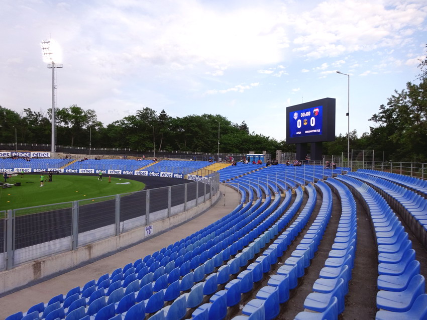 Nach anstrengenden Arbeitswochen kam es mir recht, dass mir die vom Arbeitgeber durch die Blume mitgeteilt wurde, dass der Resturlaub aus dem letzten Jahr langsam mal zu nehmen sei. Die Wahl fiel dann relativ schnell auf Bulgarien, da die Covid-Inzidenz dort beträchtlich gefallen und zudem für die Veranstaltung von Fußballspielen 30 % der Stadionkapazität für Zuschauer freigegeben war, was dort aufgrund des eher geringen Interesses bei annähernd allen Spielen ausreicht. Bulgarien hatte ich schon einige Male bereist, war aber nie an die Schwarzmeerküste vorgestoßen. Da die Herzdame mit am Start war und die ganze Nummer auch vorrangig Erholung und keine konkrete Fußball-Tour sein sollte, wurde der Osten des Landes also das Reiseziel. Nach morgendlicher Landung in Varna fuhren wir in aller Ruhe nach Burgas, der zweiten bulgarischen Metropole am Cherno More. Dort stieß am späten Nachmittag FK Chernomorets 1919 Burgas gegen Levski Karlovo in der Südost-Gruppe der viergeteilten Dritten Liga an. Diesen Verein gibt es erst seit 2015, allerdings schließt er an die Tradition des früheren PSFC Chernomorets an, der bereits der Nachfolger des ersten Clubs mit Namen Chernomorets war. Beide frühere Vereine wurden Opfer dubioser finanzieller Machenschaften ihrer Besitzer – ein Schicksal, dass einigen bulgarischen Vereinen nicht ganz unbekannt ist.