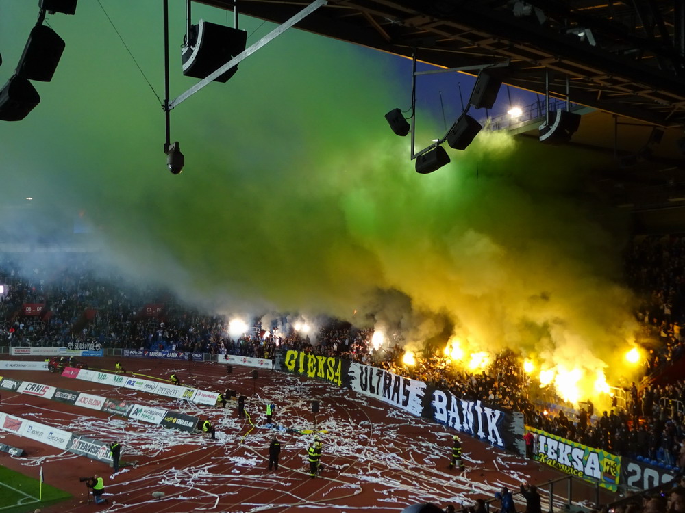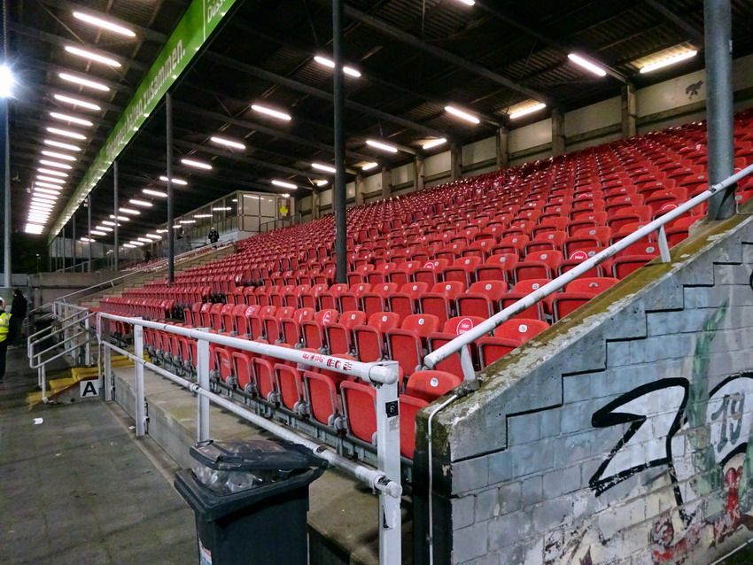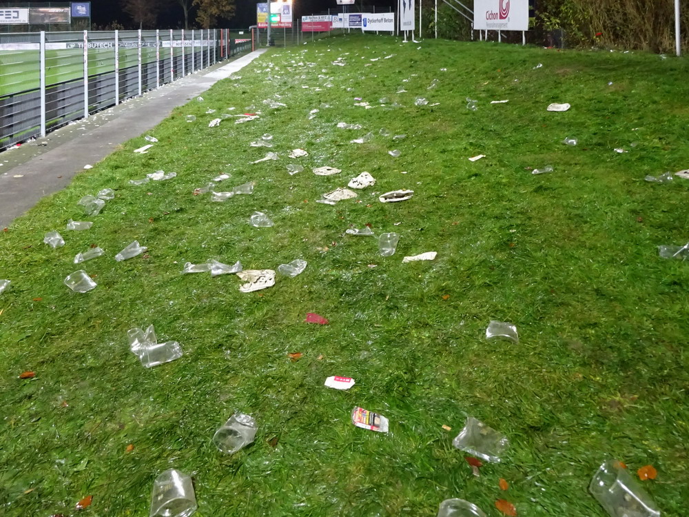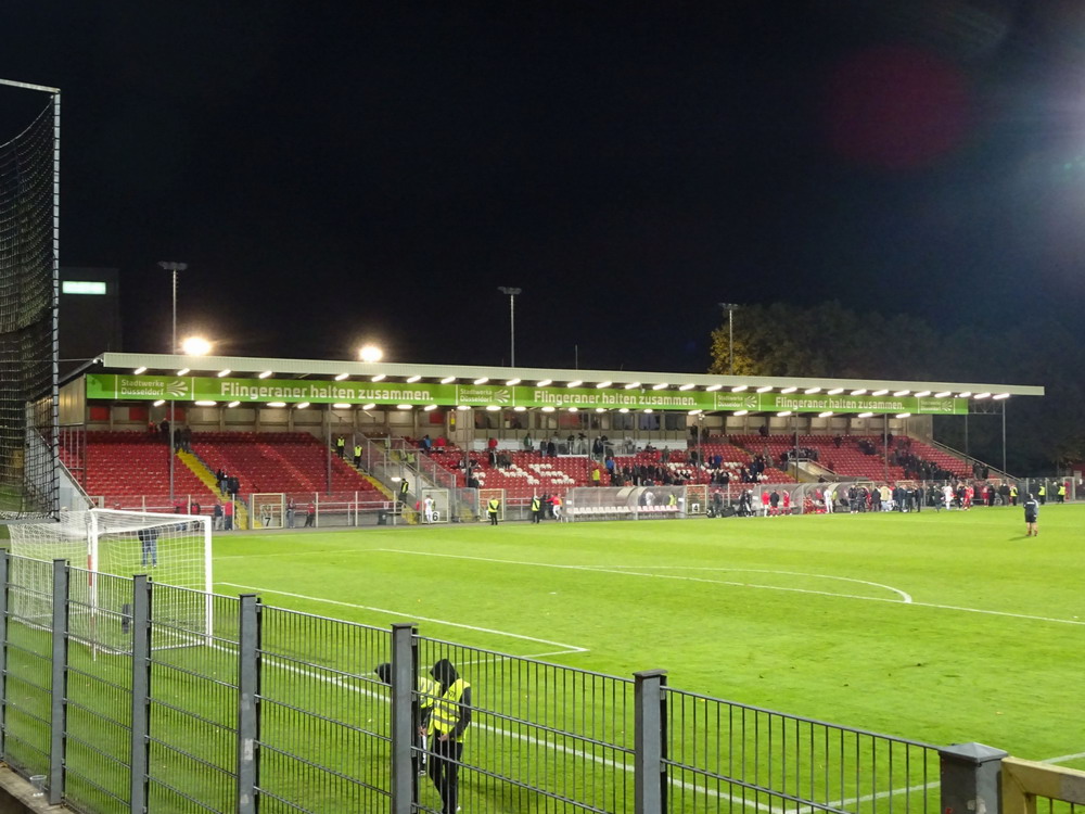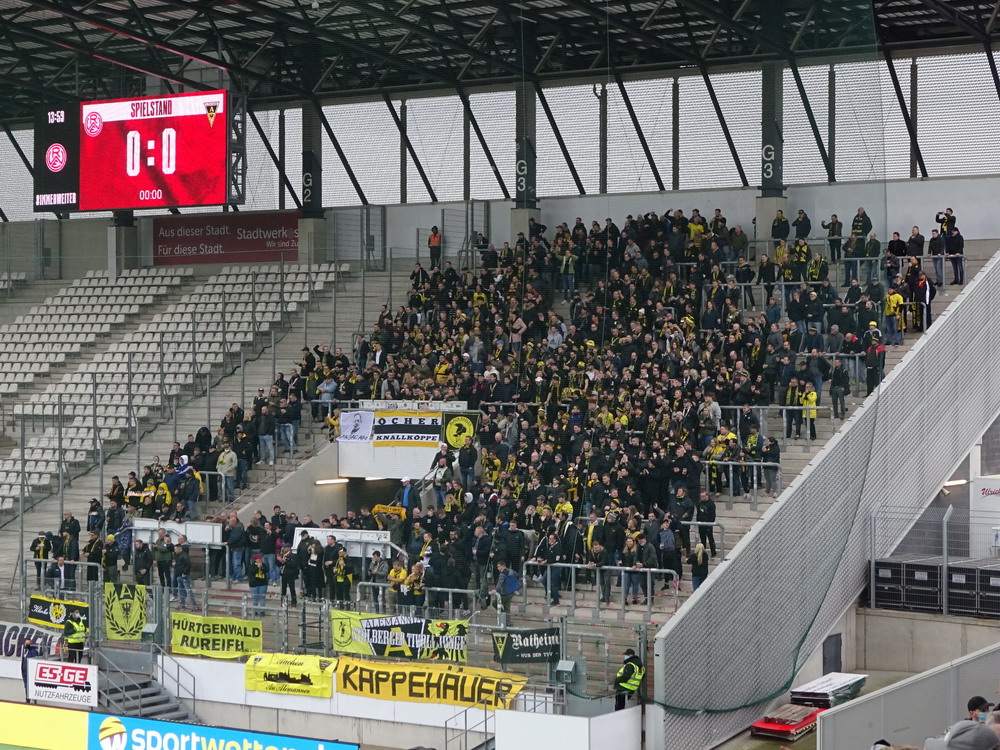 Der rot-weisse Tross begab sich in die Niederrheinische Grenzregion um einen Pflichtsieg einzufahren, aber mit diesen ist das ja so eine Sache. Knapp 800 Gäste wurden dann Zeuge von einer durchwachsenen Essener Vorstellung in Hälfte eins. Der RWE war zwar klar überlegen, aber zu einfallslos und mehr als ein Abseitstreffer von Engelmann sprang nicht heraus. In der Defensive reichte dann ein Ballverlust aus, um sich einen Gegentreffer zu fangen. Unhaltbar schlug ein 20-Meter-Strahl im Giebel ein. Nicht das erste Mal, dass der Versuch, sich spielerisch aus der Bedrängnis zu befreien, in einem Gegentor mündet. Nach dem Seitenwechsel zeigten sich die Roten zielstrebiger aber irgendwie trotzdem zu umständlich. Für den Ausgleich reichte es zwar, aber das ist im Titelkampf beim Siebzehnten der Tabelle zu wenig, zumal die Konkurrenten momentan stabil punkten. Engelmann ließ den Tausendprozenter zum Sieg kurz vor Ende liegen und dann war die Partie mit einem eher unerwarteten Remis zu Ende, was die etwa zwanzigköpfige Gruppe hinter dem Tor, die ich größtenteils dem Gladbach-Lager zuordnete, zu Hohn und Häme animierte. Dumm, wenn sich dann das Verbindungstor plötzlich öffnet und man sich von ein paar heranstürmenden Rot-Weissen ein paar ordentliche Backpfeifen fängt. Manchmal hält man einfach besser mal den Schnabel.
