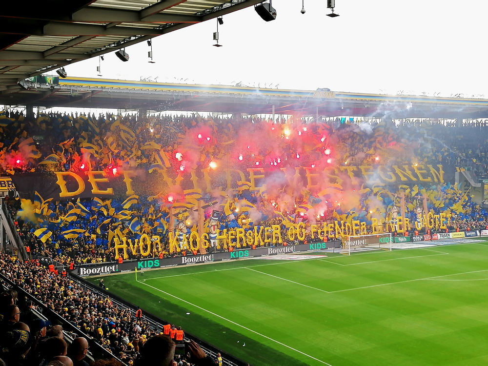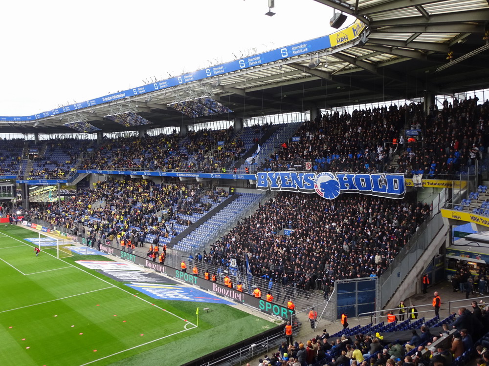 Da schrumpfte die Wochenend-Tour mit der Dame letztlich auf ein Spiel zusammen, aber natürlich nicht auf das schlechteste. Beginnen sollte die Tour mit dem Kick der Oberliga Niedersachsen in Heeslingen, aber Sturm und Regen begünstigten die Absage am Morgen des Spieltages. Das für Samstag auf Fehmarn anvisierte Spiel war mir bereits einen Tag früher genommen und in den November verlegt worden – den Grund wird man vermutlich nie erfahren. Zumindest das sogenannte Zielspiel der Reise blieb unangetastet. Dänemark ist nicht meine bevorzugte Zielrelation, wenn es um Fußball geht. Drei Spiele hatte ich in Dänemark bis dato gesehen. Zwei Male wurde das Derby besucht, jeweils beim FC København und bei Brøndby und der dritte Spielbesuch beim FC Nordsjaellan, ebenfalls oberste Spielklasse in Farum, wurde nach der ersten Halbzeit verlassen, da der Charakter einfach nicht über Schülerländerspiel hinausreichte. In Dänemark taugt halt auch nur das Derby und da ich das Stadion des FCK als unfassbar grausam empfinde, fiel die Wahl dieses Mal wieder auf die Vorstadt. Brøndby ist als amtierender Landesmeister äußerst mäßig in die Saison gestartet und brauchte dringend einen Derby-Sieg, um die Anhänger wohlgesonnen zu stimmen und die Hoffnung auf einen guten Saisonverlauf lebendig zu halten.