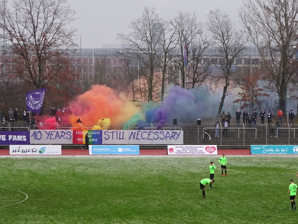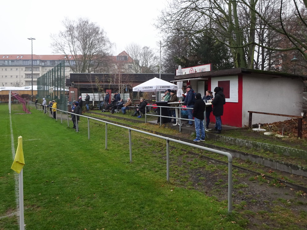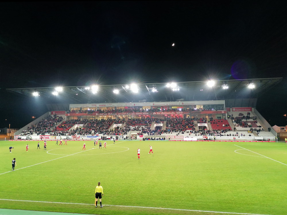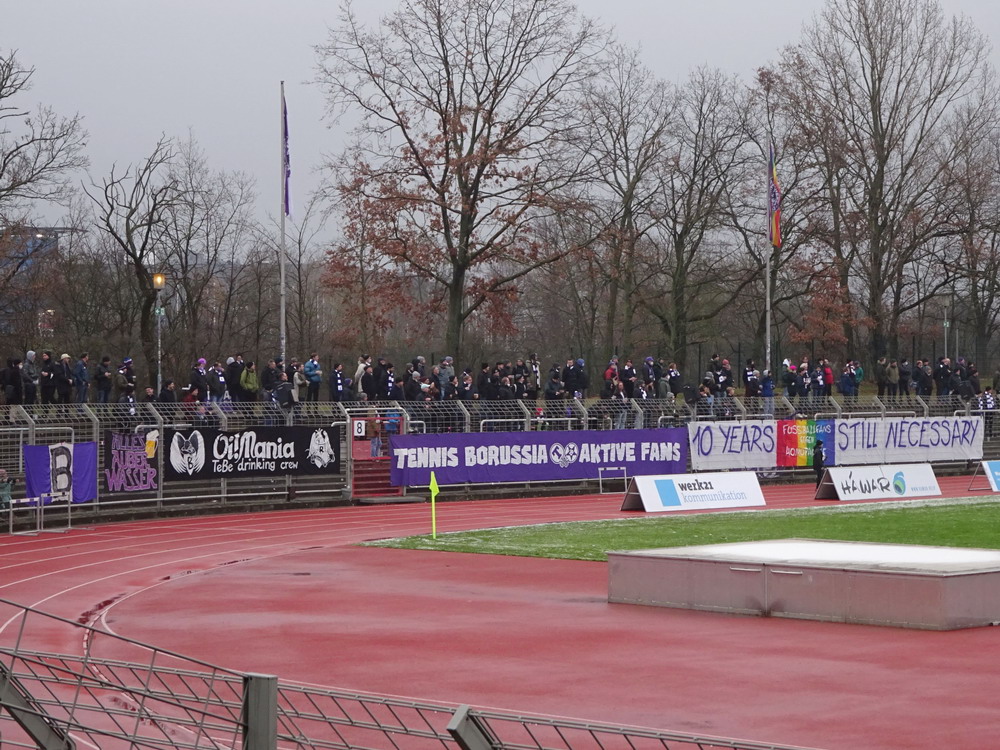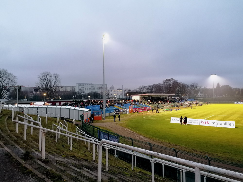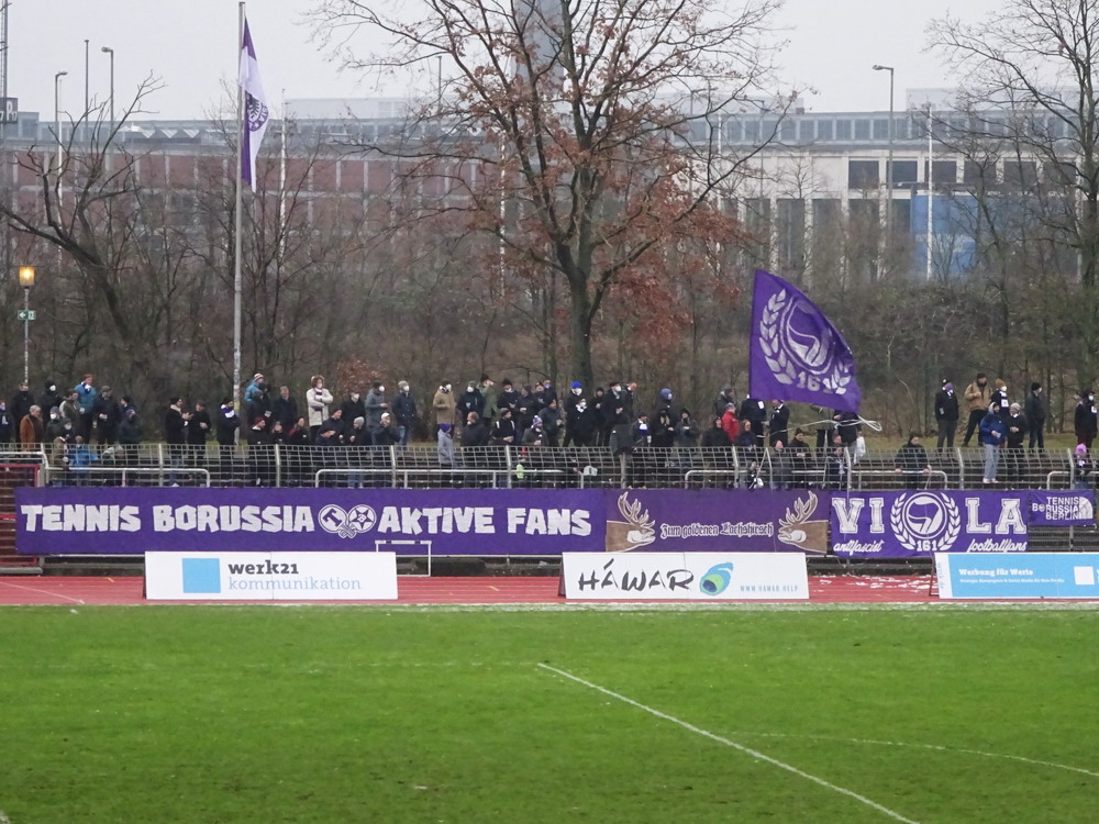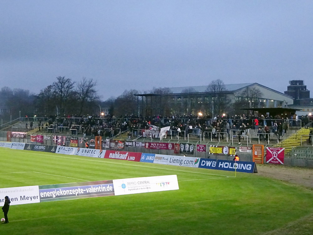 Mit der holden Gattin trat ich die Reise nach Ostwestfalen an. Frecherweise war die Dame nach dem Besuch des Clasico in Kopenhagen nicht mehr beim Fußball, da wurde es aber gehörig Zeit, sonst wird das nix mit der Groundhopping- Fußballtouristen-Karriere. Das Stadion Laumeskamp des Delbrücker SC ist für sechstklassige Verhältnisse wirklich nicht übel und besteht aus einer überdachten Sitztribüne und kleinen Stehtraversen hinter einem Tor und auf der Gegenseite. Vierter gegen Sechster hieß dieses Duell und vor allem die Gäste aus Erkenschwick benötigten dringend einen Sieg um die Aufstiegschance am Leben zu halten. Gut 30 Leute begleiteten die Gäste, von denen ein gutes Dutzend unter Trommelbegleitung Stimmung machte. Finde ich sehr positiv, dass die sportlich ja doch überschaubare Entwicklung die kleine Szene der Schwicker nicht komplett zermürbt hat und sich einige unermüdliche immer noch aufraffen. Die Mannschaft dankte es ihnen jedoch heute nicht. Mit einem indiskutablen ersten Durchgang, in dem alle drei Tore für die Gastgeber fielen, beraubte man sich den Möglichkeiten, hier etwas mitzunehmen. Die zweite Hälfte sah besser aus, aber der Treffer durch Routinier Stefan Oerterer eine Viertelstunde vor Schluss war zu wenig und kam vor allem zu spät. Der DSC igelte sich mit dem Sieg hingegen in der Spitzengruppe ein.