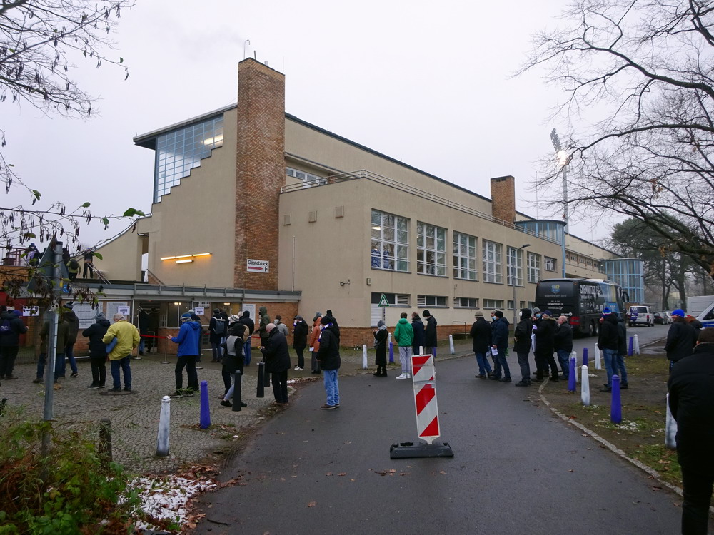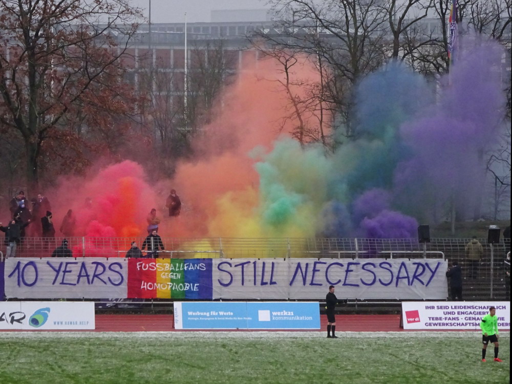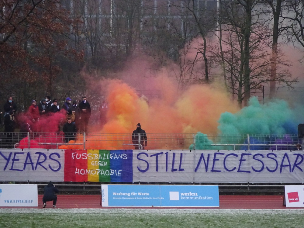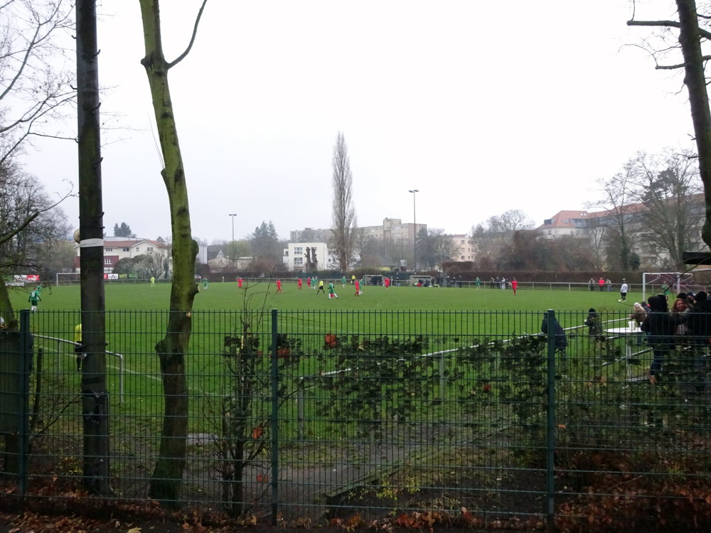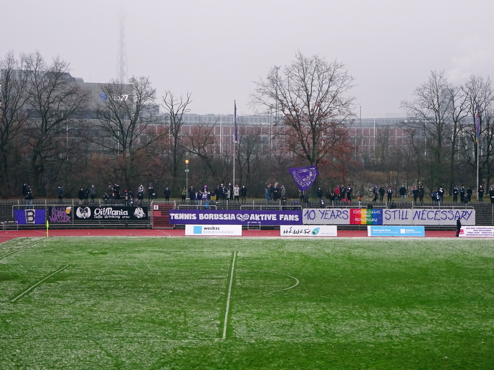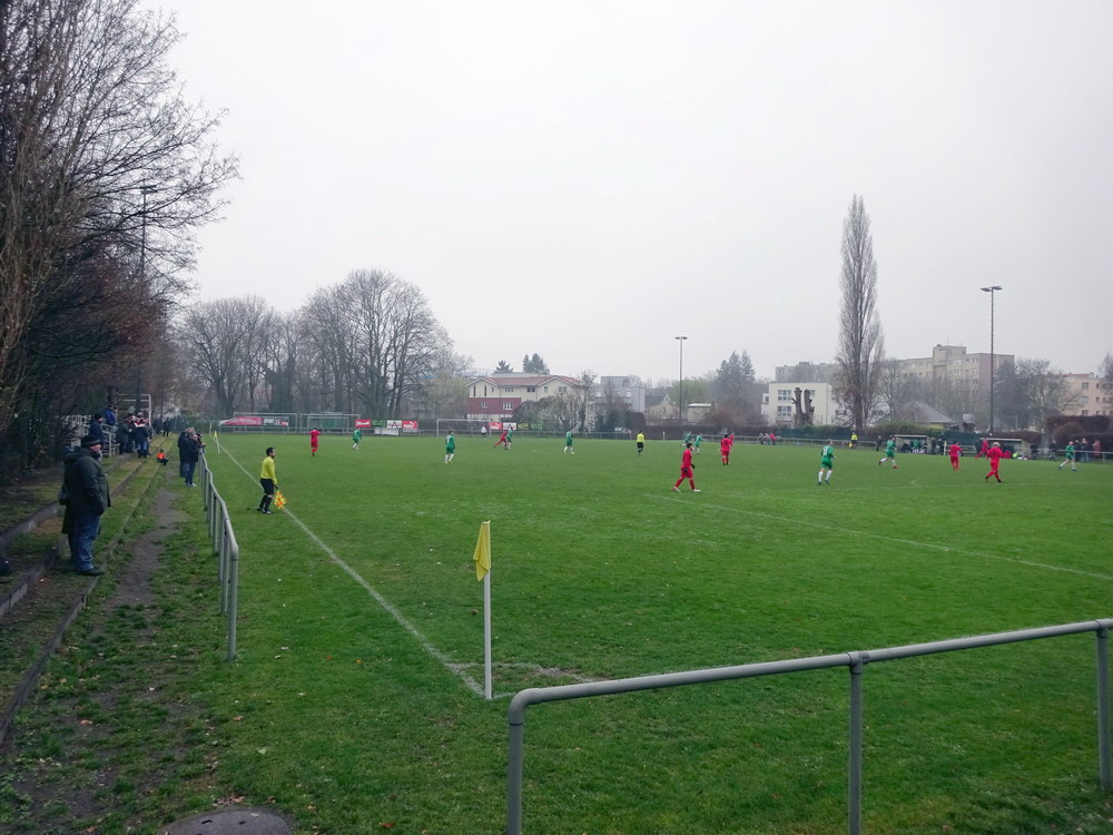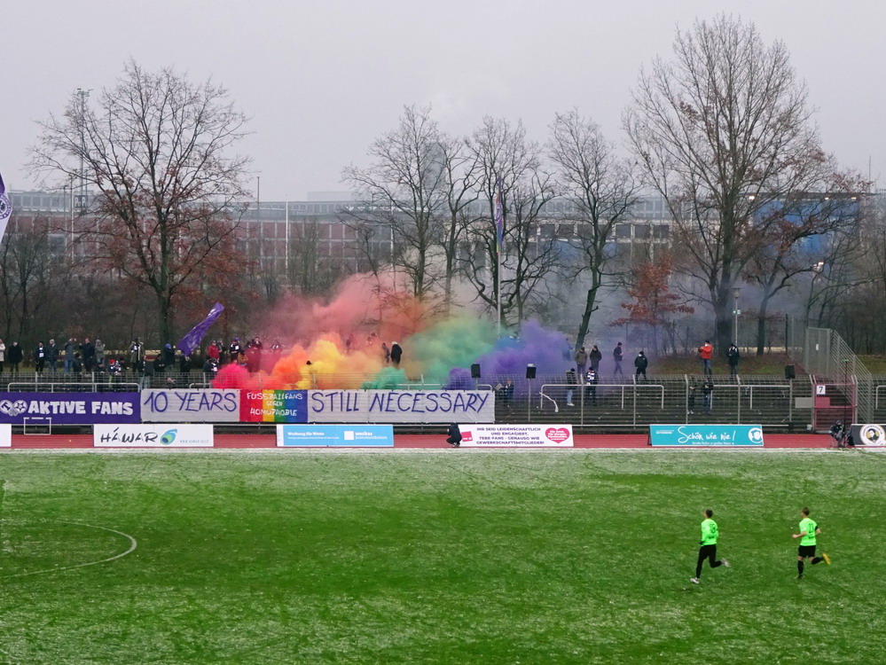 Mit der holden Gattin trat ich die Reise nach Ostwestfalen an. Frecherweise war die Dame nach dem Besuch des Clasico in Kopenhagen nicht mehr beim Fußball, da wurde es aber gehörig Zeit, sonst wird das nix mit der Groundhopping- Fußballtouristen-Karriere. Das Stadion Laumeskamp des Delbrücker SC ist für sechstklassige Verhältnisse wirklich nicht übel und besteht aus einer überdachten Sitztribüne und kleinen Stehtraversen hinter einem Tor und auf der Gegenseite. Vierter gegen Sechster hieß dieses Duell und vor allem die Gäste aus Erkenschwick benötigten dringend einen Sieg um die Aufstiegschance am Leben zu halten. Gut 30 Leute begleiteten die Gäste, von denen ein gutes Dutzend unter Trommelbegleitung Stimmung machte. Finde ich sehr positiv, dass die sportlich ja doch überschaubare Entwicklung die kleine Szene der Schwicker nicht komplett zermürbt hat und sich einige unermüdliche immer noch aufraffen. Die Mannschaft dankte es ihnen jedoch heute nicht. Mit einem indiskutablen ersten Durchgang, in dem alle drei Tore für die Gastgeber fielen, beraubte man sich den Möglichkeiten, hier etwas mitzunehmen. Die zweite Hälfte sah besser aus, aber der Treffer durch Routinier Stefan Oerterer eine Viertelstunde vor Schluss war zu wenig und kam vor allem zu spät. Der DSC igelte sich mit dem Sieg hingegen in der Spitzengruppe ein.