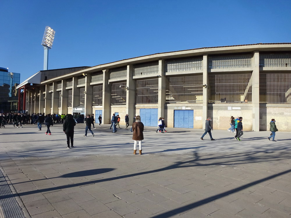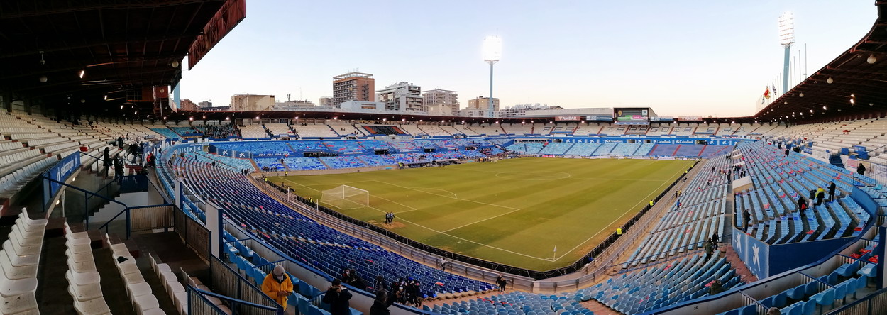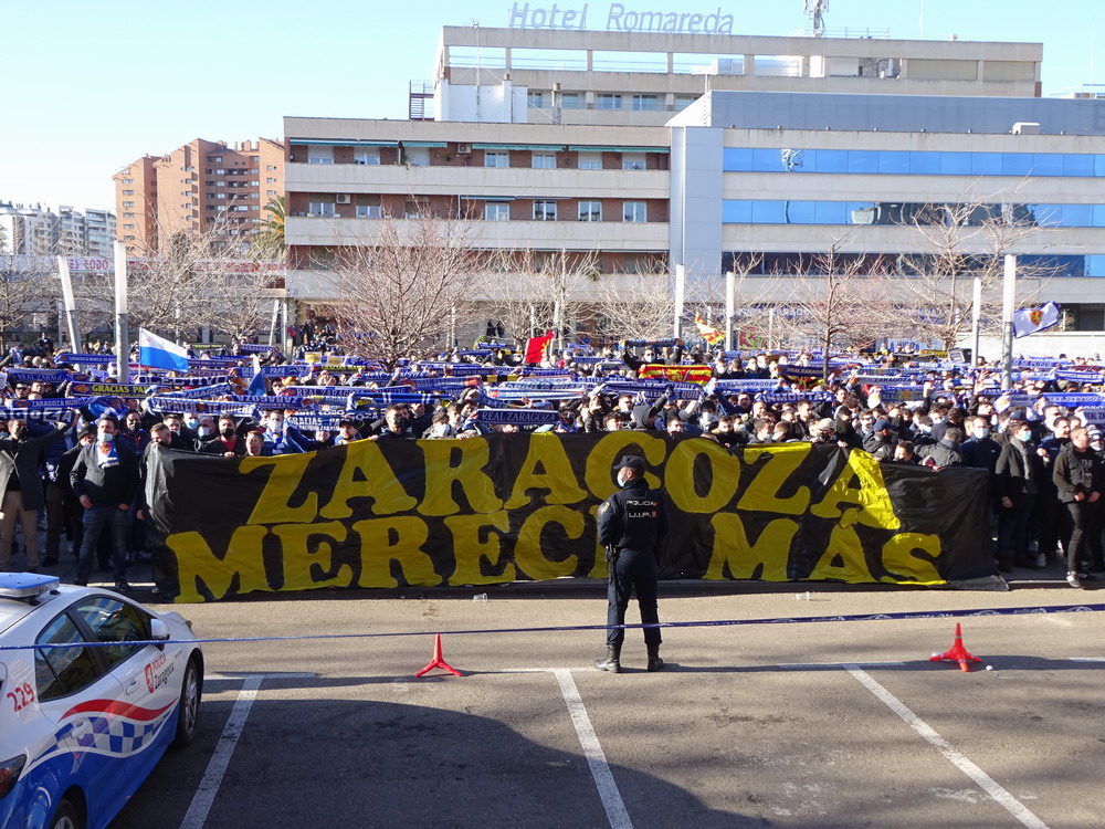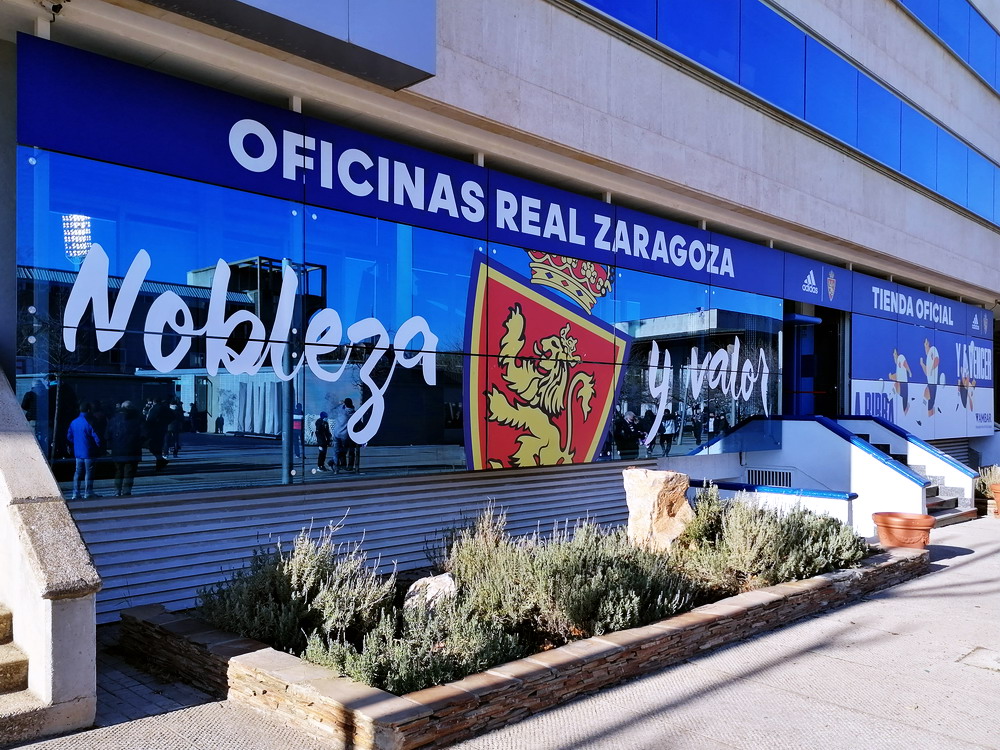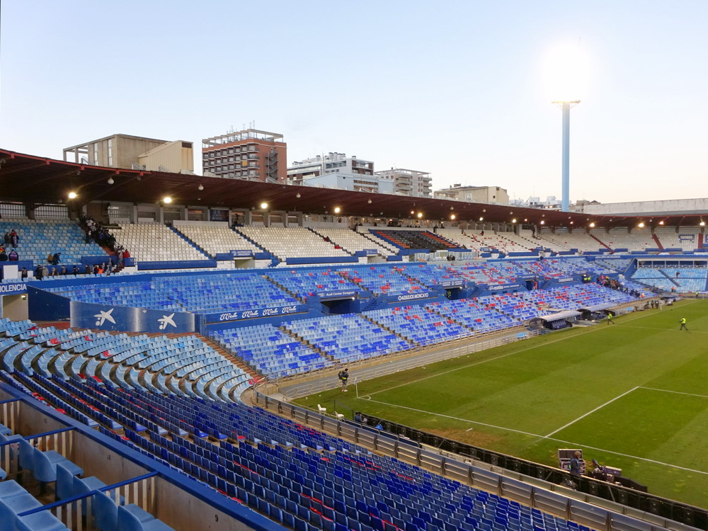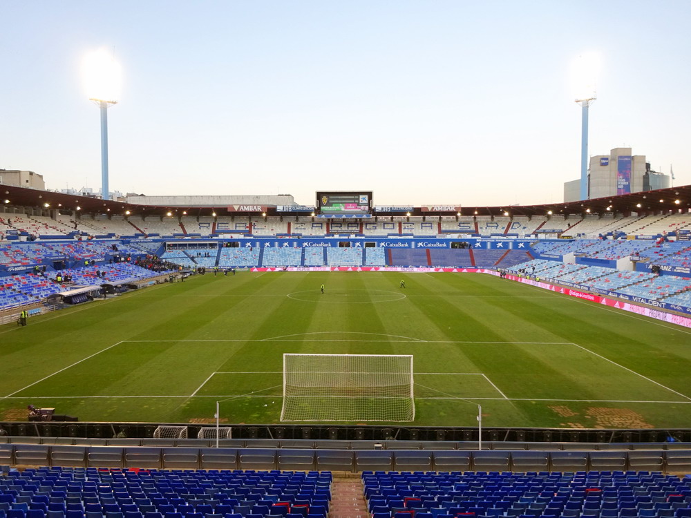 Es wäre heute auch der Doppler Levante und Atletico in Liga eins machbar gewesen, aber das hätte viel Aufwand und Zeitdruck bedeutet und aus dem Alter für viel Aufwand und Zeitdruck bin ich halt irgendwie raus und nur noch selten dazu bereit. Es hätte mich auch jeder Möglichkeit beraubt, abseits des Fußballs etwas aufzusaugen, wie zum Beispiel den Palacio de la Aljaferia oder die sehenswerte Basílica de Nuestra Senora del Pilar, die größte Barockkirche Spaniens. Daher vermied ich die blutige Hopping-Nummer und stieg am Vormittag in den Hochgeschwindigkeitszug AVE und kurz nach Mittag, nach nur etwas mehr als einer Stunde und zwanzig Minuten Fahrzeit 300 Kilometer weiter, wieder aus. Bei zwar kühlen Temperaturen aber sonnigem Wetter konnte ich mir die Stadt dann etwas ansehen bis der Grund der Anreise seine Aufmerksamkeit erforderte. Das La Romareda ist ein schöner betagter Brocken. Alles wirkt etwas angenagt und die Patina der vorherigen Fußball-Epoche liegt wie ein sanfter Schleier über diesem Stadion. Als ich vor dem Spiel eine Runde um das Stadion drehte, geriet ich in den Protest der Hinchada der Gastgeber, die sich hinter der Haupttribüne sammelte und ihren Unmut über den nun schon Jahre schwelenden sportlichen Stillstand des stolzen ehemaligen Europapokalsiegers und mehrfachen spanischen Pokalsiegers, der seit beinahe zehn Jahren in Liga Zwei rumdümpelt, äußerte. Das missfällt dem treuen Anhang, der Taten vom Präsidium fordert. So blieb der Block dann auch die ersten fünfzehn Minuten leer, ehe die Anhänger diesen stürmten und das Team unterstützten. Aus Valladolid warten etwa 140-150 Leute gekommen. Der Verein hat gute Chancen den Abstieg der vergangenen Saison zu korrigieren. Beide Teams neutralisierten sich ziemlich und das Spiel bekam sein gerechtes Ergebnis, denn gute Torchancen waren Mangelware. Der AVE brachte mich dann in Spaniens Hauptstadt, wo am nächsten Morgen der Rückflug anstand.