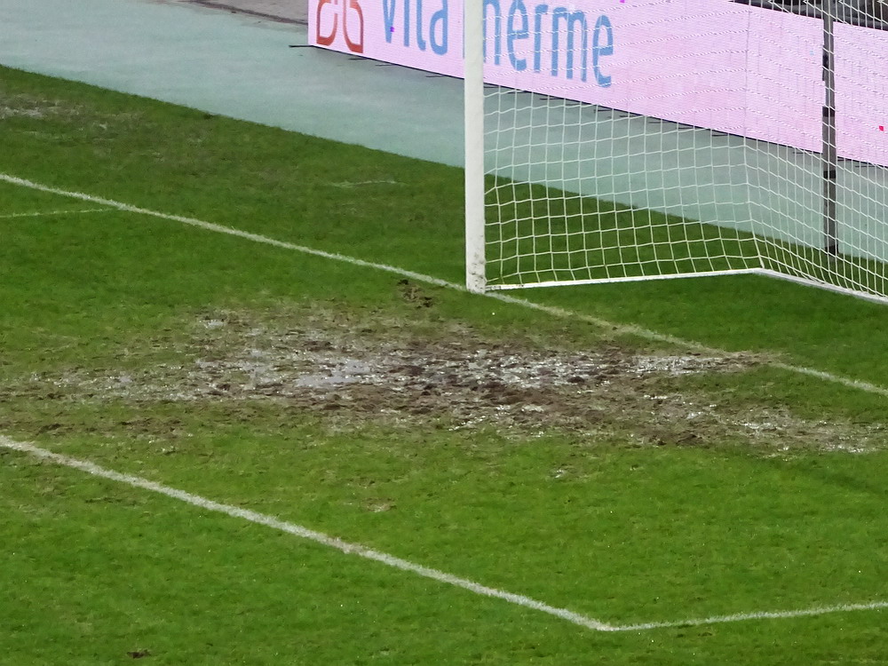 Nach dem überzeugenden Jahresauftakt gegen den WSV waren die Spiele in Köln und Ahlen ja der Pandemie und dem Wetter zum Opfer gefallen. Sehr ärgerlich, da die Roten nach dem Sieg gegen die Jungs aus dem Tal mit sicherlich ganz breiter Brust aufgetreten wären. Umso wichtiger war es nun, dass die Partie gegen den Fortuna-Nachwuchs über die Bühne ging, um den Schwung weiter mitzunehmen und zu nutzen. Absolut kein einfaches Spiel, denn die Fortuna war in den vergangenen Jahren stets ein unangenehmer Gegner. Je mehr es sich dann in den Tagen und Stunden vor dem Spiel einschiffte, desto mehr zweifelte ich, dass es eine gute Idee sei zu spielen. Denn der RWE kommt ja vorrangig über seine spielerischen Qualitäten und die technischen Finessen der einzelnen Akteure. Der Blick auf das Spielfeld ließ dann Schlimmes befürchten, denn teilweise hatte die Drainage die Segel gestrichen und vor den Wassermassen kapituliert. Damit war es nun eigentlich eine offene Partie, wenn nicht gar ein Vorteil für die Gäste. So gab es auch einige Kabinettstückchen und Glanzmomente zu beobachten, wenn die Spieler schneller waren als der Ball, die Kirsche nach dem Aufsetzen auf dem Rasen einfach liegen blieb oder Abschläge von Tormann Davari in die eigene Hälfte zurückgeweht wurden. Die Roten hatten leichtes Übergewicht, konnten nach einer guten halben Stunde in Führung gehen und hatten kurz darauf die Riesenchance auf den zweiten Treffer, aber Tormaschine Engelmann erschoss lediglich einen Verteidiger auf der Torlinie.