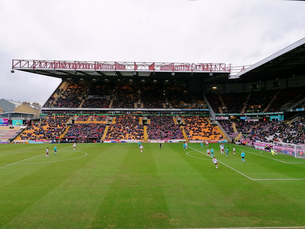 Gut drei Wochen vor diesem Wochenende bemerkte ich eine brauchbare Konstellation in South Yorkshire und erschwingliche passende Flüge ab Köln nach Manchester. Bei dem doch aktuell doch noch recht dünnen Flugplan gar nicht mehr so selbstverständlich. Der Barnsley FC, dessen Stadion auf meiner England betreffend recht überschaubaren To-do-list steht, sollte am Samstag-Abend antreten. Dazu passte das Mittagsspiel in Huddersfield und für den Nachmittag hatte ich einen regionalen Kick herausgesucht. Gegner von Huddersfield war Sheffield United, das einzige Team mit dem in England etwas anfangen kann. Vor über zehn Jahren weilte ich mit ein paar Getreuen beim Steel City Derby zwischen United und Wednesday. Beide waren sich länger nicht begegnet und entsprechend heiß waren beide Seiten auf die Partie. Ich hatte ein Ticket für die Heimtribüne, die proppevoll war. Niemand saß und da wir Pub-bedingt etwas getrödelt hatten standen wir nun im Aufgang zwischen den Stuhlreihen. Gesessen hat auf der Tribüne aber niemand und United ging schnell mit zwei Toren in Führung. Beim zweiten Treffer packte mich mein mir unbekannter Nebenmann unvermittelt exzessiv jubelnd und wir purzelten Arm in Arm – er hielt mich vor Freude fest und ich ihn in Todesangst – einige Stufen die Treppe runter. Nix ist dabei passiert und mein Jubelpartner half mir noch dabei, meine Brille wiederzufinden, die mir bei diesem Stunt von der Nase gefallen war. United spielte leidenschaftlich und obwohl der Kick letztlich noch mit einem Remis endete, blieben mir der Verein und sein Anhang positiv in Erinnerung.