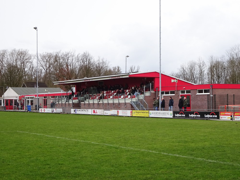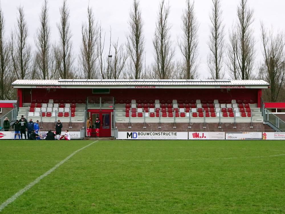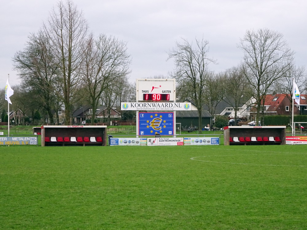 Mit der Dame des Herzens startete ich einen Tagesausflug in die westlichen Nachbarländer. Der Plan war zwar ursprünglich ein anderer, doch die stürmische Wetterlage machte eine Anpassung notwendig. Nach Besuch des Kasteel Doorwerth bei Arnheim hieß der kleine Ort Heukelum die nächste Destination. Drei mögliche Spiele für den Nachmittag hatte ich rausgesucht und die Wahl des Zieles in die Hände der Gattin gelegt. Das Losverfahren führte uns dann in den westlichen Zipfel des Gelderlandes. Lediglich siebtklassig wird dort Fußball gespielt, aber die nette, idyllisch am Ortsrand zwischen Schilf und Wasser liegende Anlage qualifizierte diese Partie des Vorletzten gegen den Tabellenführer. Gerade auf unterklassiger Ebene eine eindeutige Sache sollte man meinen, aber ein spielerischer Unterschied war dann nicht wirklich zu erkennen. Die Gastgeber gingen im ersten Durchgang in Führung und wenn sie sich danach nicht Mann um Mann geschwächt hätten, wäre es auch vielleicht ein Überraschungserfolg geworden. Einmal glatt Rot nach einer halben Stunde und zwei Mal Gelb-Rot in Durchgang zwei ließen nur noch acht Platzherren auf dem Feld stehen. Bis zur Schlussminute hielten sie mit den übrig gebliebenen Mannen und Mäusen dagegen, ehe die Murmel doch noch zum Ausgleich im Netz landete.