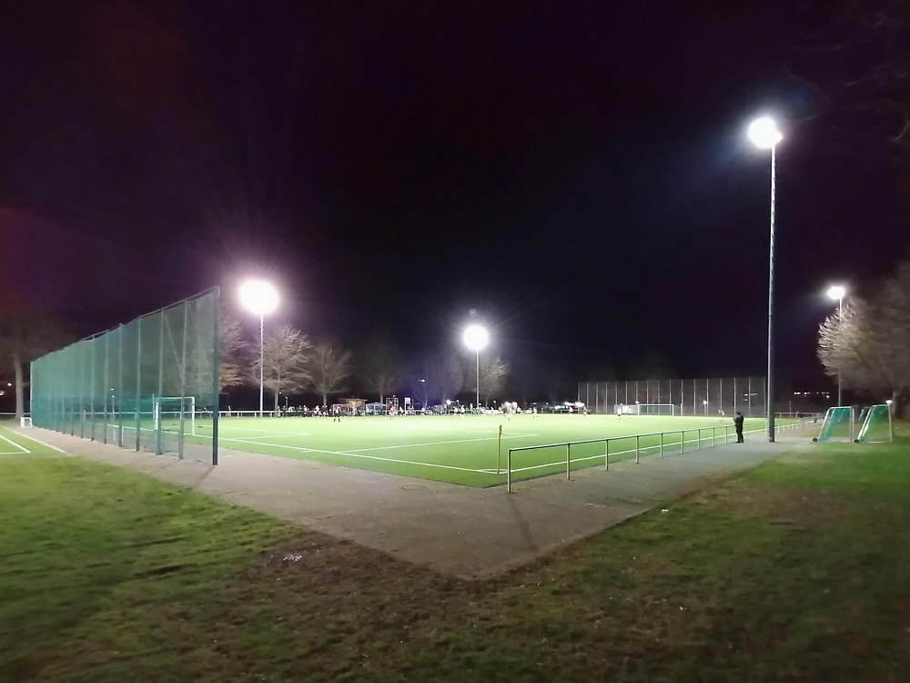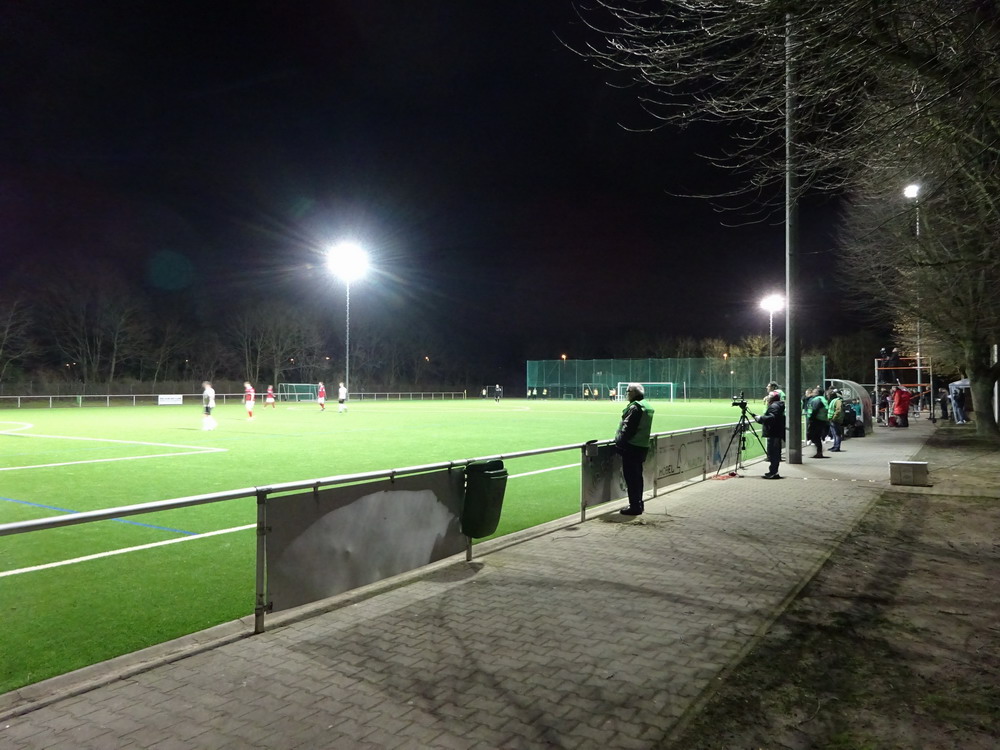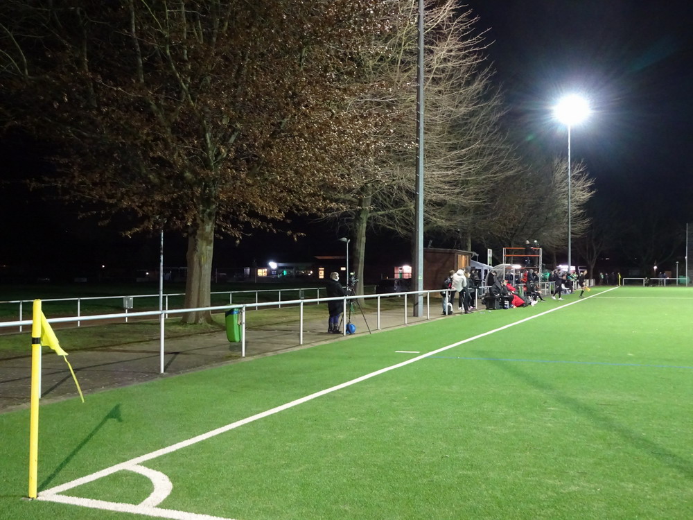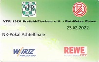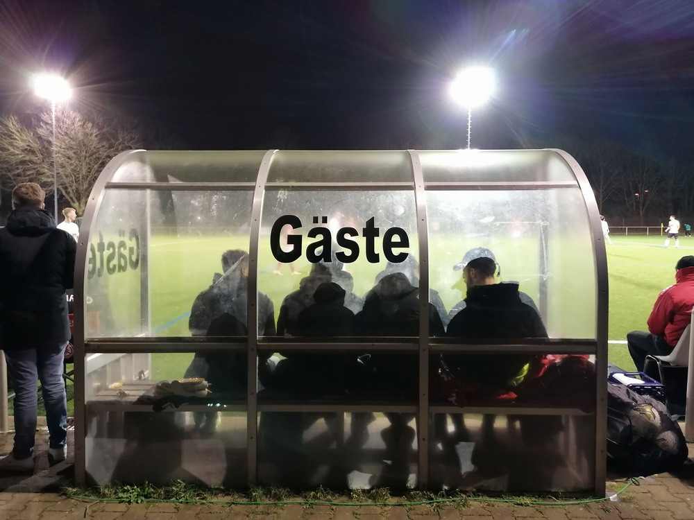Der Ärger, die Wut, die Ernüchterung über das am Sonntag erlebte ist noch nicht verraucht. Den Spielen des geliebten Vereins fernzubleiben kommt aber nicht in Frage. Der Verein ist größer als jeder Zuschauer und die Mannschaft trägt keinerlei Verantwortung für die Tat eines einzelnen Fehlgeleiteten. Und auch der Zuschauerausschluss durch den VfR Fischeln konnte mich nicht am Besuch dieses Achtelfinales im Verbandspokal hindern. Grund für den Geister-Kick war ausnahmsweise mal nicht die Pandemie. Da Krefeld schwieriges Gebiet für ein Gastspiel des RWE ist, wären für ein Spiel mit Zuschauern umfassende Sicherheitsvorkehrungen erforderlich gewesen. Diesen Aufwand scheute der VfR und auch ein Tausch des Heimrechtes war für den Club keine Option. Sinnlos alles, aber irgendwie kommt man ja immer rein. Marco natürlich auch und so schauten wir zu zweit auf das Spiel und eine schwach besuchte Anlage. Der lieblose Kunstrasen ohne jeglichen Ausbau hatte aber auch keine Zuschauer verdient. Bei einem deutlichen Spielstand von 6:0 war der Fisch in Fischeln zur Halbzeit schon gegessen, am Ende stand ein 9:1 zu Buche. Neun Treffer muss man gegen einen Landesligisten erst einmal erzielen, heute reichte dafür der mit einigen talentierten U19-Kräften verstärkte sogenannte zweite Anzug.