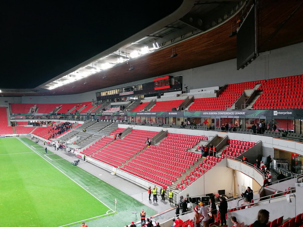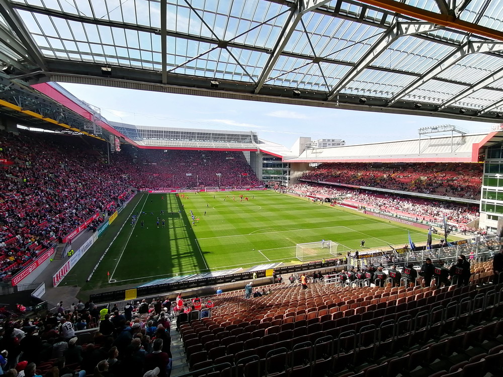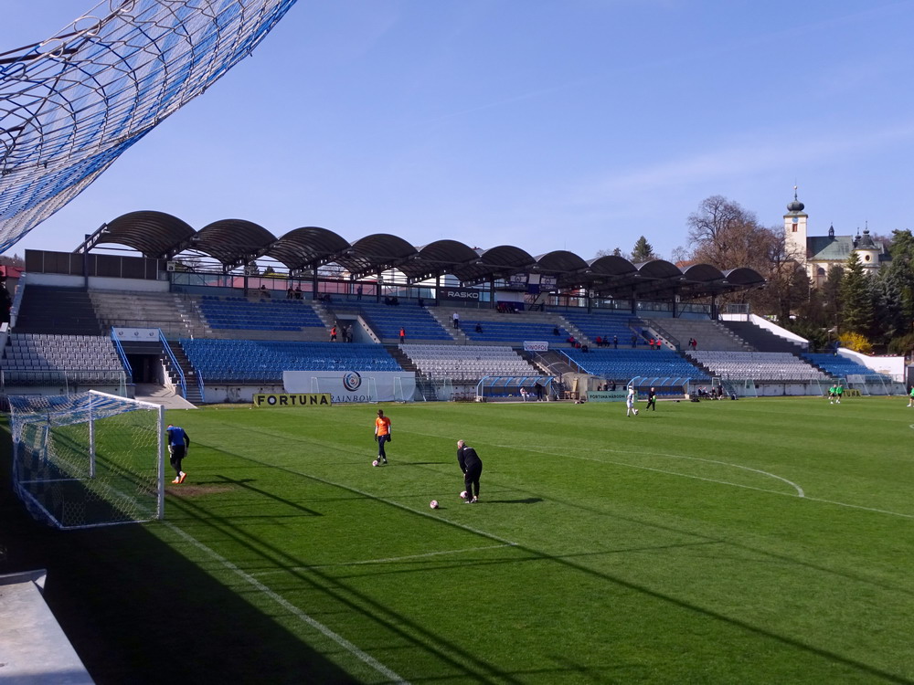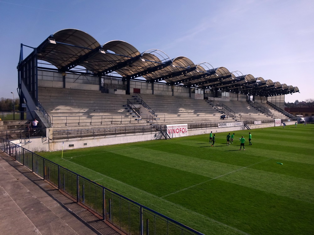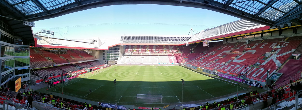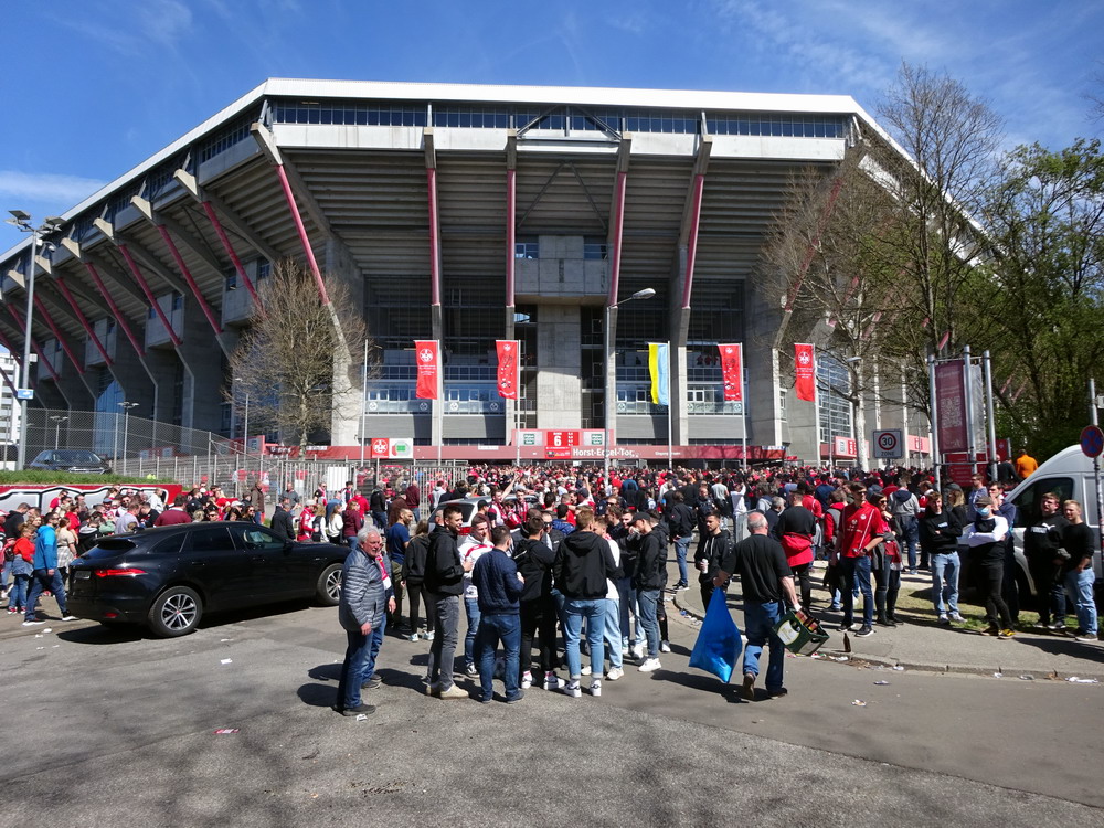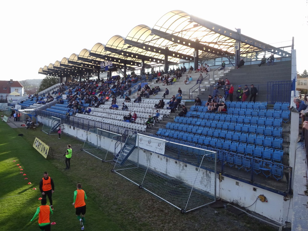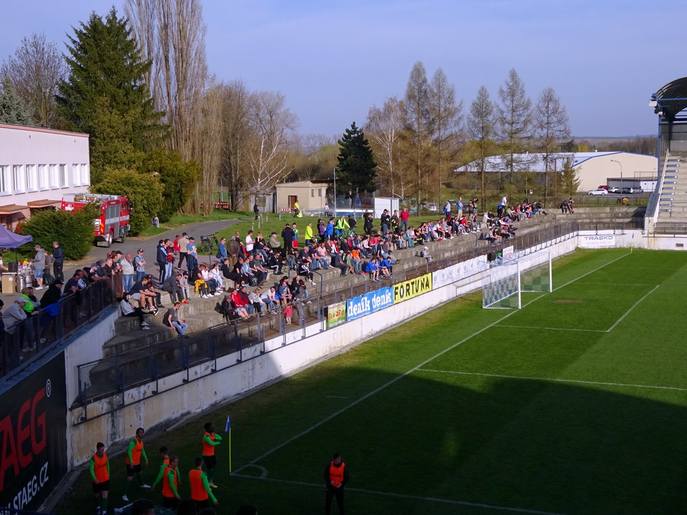 Nach 25 Jahren mal wieder zu Gast im Salmtal. Nicht weil ich es unbedingt wollte, aber so konnte ich Daniel ein Stück mitnehmen, der am Abend von Luxemburg gen Spanien flog und es passte zum Heimweg. Und schließlich ist es ja ein sehenswertes kleines Stadion auf dem Dorf. Fünfmal so viele Einwohner wie der kleine Ort hat, passen in das Rund hinein. Seine beste Phase hatte der Verein Mitte der 80er Jahre, als der Club es sogar für ein Jahr in die zweite Liga schaffte. Das war auch der Grund, warum die überdachte Haupttribüne errichtet wurde. Dumm nur, dass kurz nach Fertigstellung der direkte Wiederabstieg folgte und der FSV nie wieder so hochklassig spielen sollte. Bis zur Jahrtausendwende hielt sich der Verein auf drittklassigem Niveau, danach ging es weiter abwärts, heute wird immerhin noch in der fünftklassigen Oberliga gespielt. Dass es dazu kam, war auch der Vernunft geschuldet, denn in den 90ern setzte man sich mit der Trierer Eintracht zwecks Kooperation an einen Tisch, da diese strukturschwache Region nur einen höherklassigen Verein vertragen konnte und wohl auch heute noch kann. Natürlich konnte der Standort für gebündelte Kräfte nur Trier lauten und der FSV Salmrohr geriet ab da zur zweiten Kraft in der Moselregion. Das erkennt auch die ausgebaute der beiden Kurven neidlos an und gibt sich nach und nach wieder der Natur frei. In der Platzierungsrunde mussten dringend Punkte gegen den Abstieg gesammelt werden, was mit einem verdienten 2:0-Sieg gegen den FC Speyer auch gelang. Eine Handvoll biertrinkende Leute versammelte sich hinter einer großen Fahne mit einer Kuh und genoss den Erfolg schweigend. Ein besseres Symbolbild hätte hier auch nicht gewählt werden können.