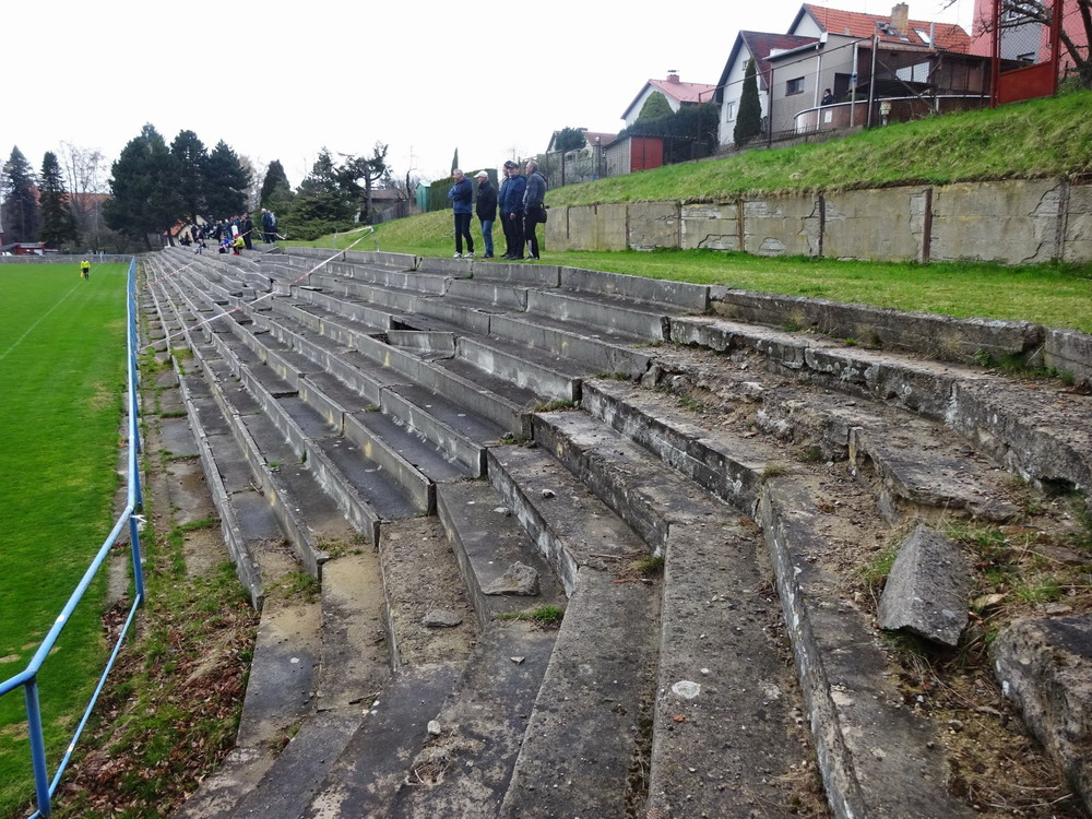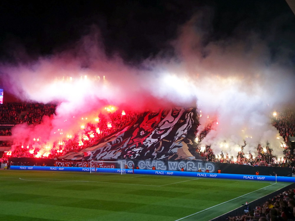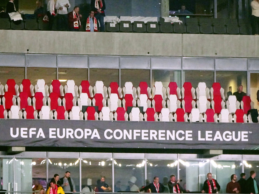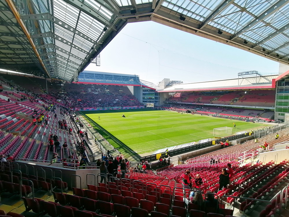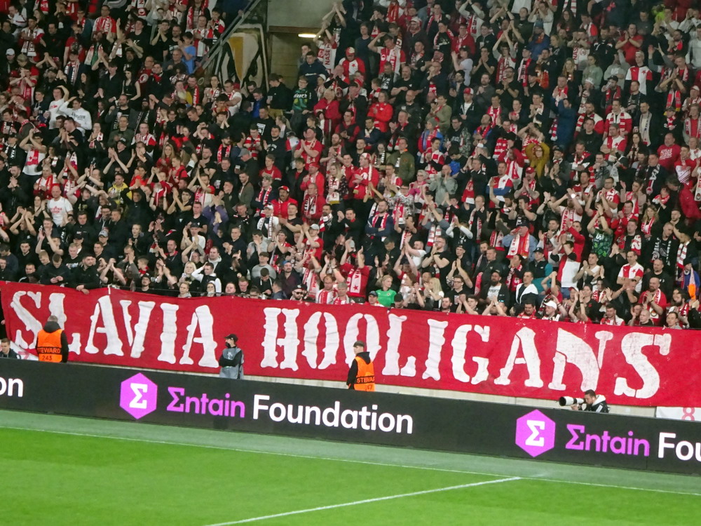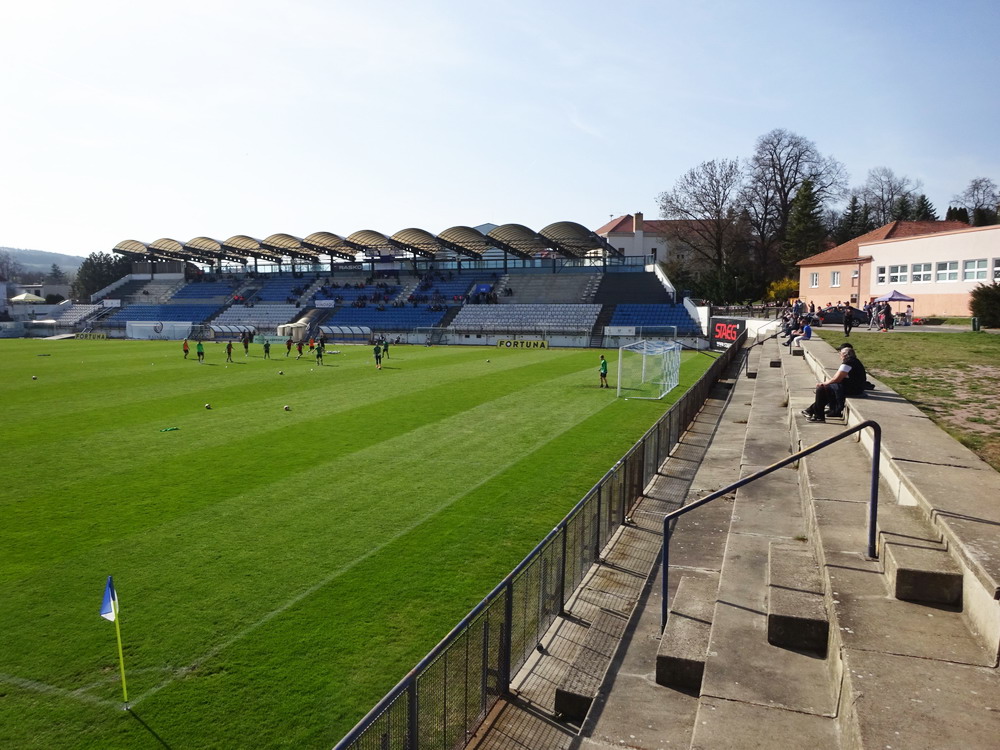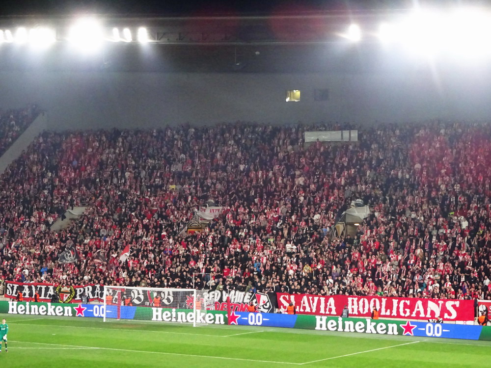 Nach 25 Jahren mal wieder zu Gast im Salmtal. Nicht weil ich es unbedingt wollte, aber so konnte ich Daniel ein Stück mitnehmen, der am Abend von Luxemburg gen Spanien flog und es passte zum Heimweg. Und schließlich ist es ja ein sehenswertes kleines Stadion auf dem Dorf. Fünfmal so viele Einwohner wie der kleine Ort hat, passen in das Rund hinein. Seine beste Phase hatte der Verein Mitte der 80er Jahre, als der Club es sogar für ein Jahr in die zweite Liga schaffte. Das war auch der Grund, warum die überdachte Haupttribüne errichtet wurde. Dumm nur, dass kurz nach Fertigstellung der direkte Wiederabstieg folgte und der FSV nie wieder so hochklassig spielen sollte. Bis zur Jahrtausendwende hielt sich der Verein auf drittklassigem Niveau, danach ging es weiter abwärts, heute wird immerhin noch in der fünftklassigen Oberliga gespielt. Dass es dazu kam, war auch der Vernunft geschuldet, denn in den 90ern setzte man sich mit der Trierer Eintracht zwecks Kooperation an einen Tisch, da diese strukturschwache Region nur einen höherklassigen Verein vertragen konnte und wohl auch heute noch kann. Natürlich konnte der Standort für gebündelte Kräfte nur Trier lauten und der FSV Salmrohr geriet ab da zur zweiten Kraft in der Moselregion. Das erkennt auch die ausgebaute der beiden Kurven neidlos an und gibt sich nach und nach wieder der Natur frei. In der Platzierungsrunde mussten dringend Punkte gegen den Abstieg gesammelt werden, was mit einem verdienten 2:0-Sieg gegen den FC Speyer auch gelang. Eine Handvoll biertrinkende Leute versammelte sich hinter einer großen Fahne mit einer Kuh und genoss den Erfolg schweigend. Ein besseres Symbolbild hätte hier auch nicht gewählt werden können.