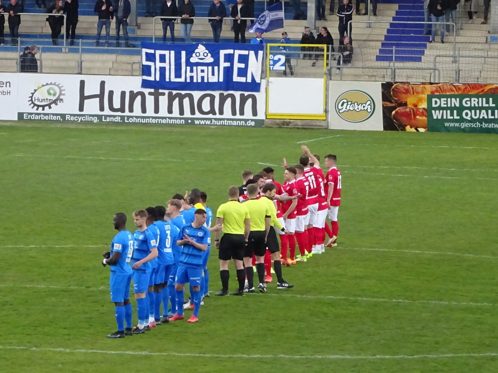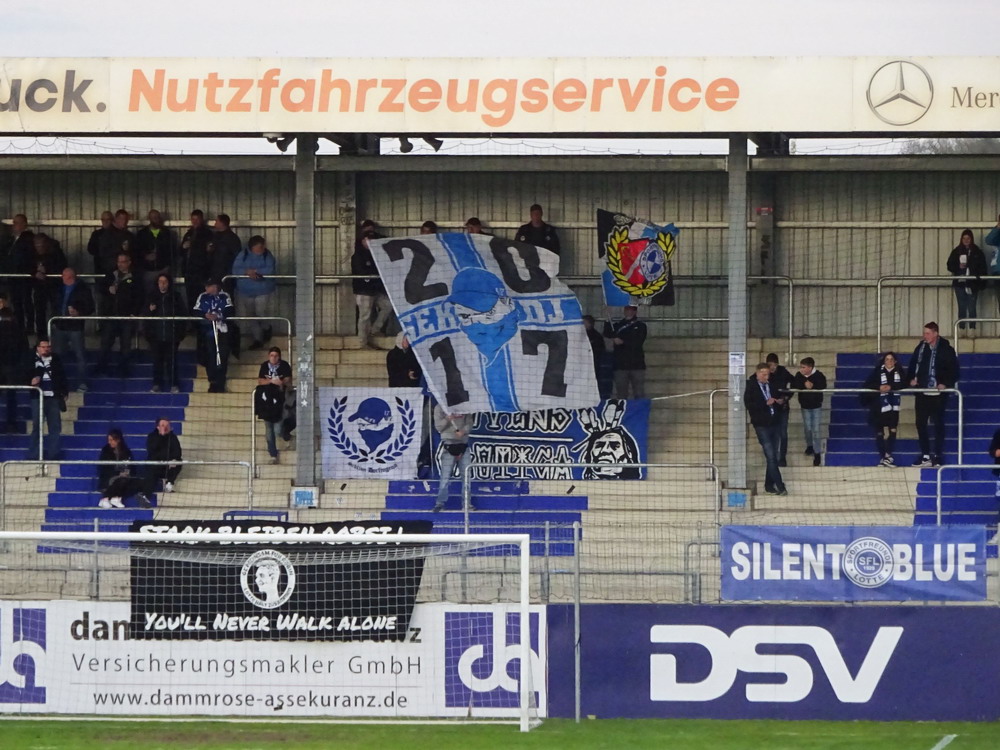 Das Auswärtsspiel am Autobahnkreuz stand an und die Vorgabe war eindeutig. Nichts anderes als ein Sieg zählte und dieser sollte auch möglichst deutlich ausfallen, wer weiß ob nicht am Ende doch das Torverhältnis den Ausschlag gibt. Gut 2.000 Mann und Frau waren aus dem Ruhrgebiet angereist und die Mannschaft ließ von Beginn an keinen Zweifel aufkommen, wer hier als Sieger vom Platz gehen wird. Nur etwas mehr als eine Minute dauerte es, bis der Ball zur Führung im Netz von Tante Lotte lag und auch danach ging es weiter nur in eine Richtung. Schon zur Pause stand das Endergebnis fest und das ist der einzige Kritikpunkt. Hätten die Roten so weitergemacht wie in Durchgang Eins, wären sicher noch ein paar Einschläge im Netz der Gastgeber zu zählen gewesen, aber wie so oft zuletzt fehlte nach der Pause für Konsequenz. Die Sportfreunde stiegen durch die Niederlage in der Oberliga ab und sind damit wieder dort angelangt, wo sie vor 13 Jahren herkamen. Größenwahnsinnige Projekte auf dem Dorf sind eben selten nachhaltig.