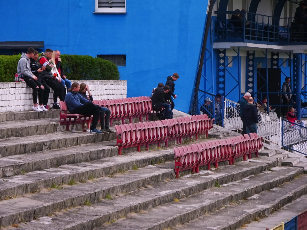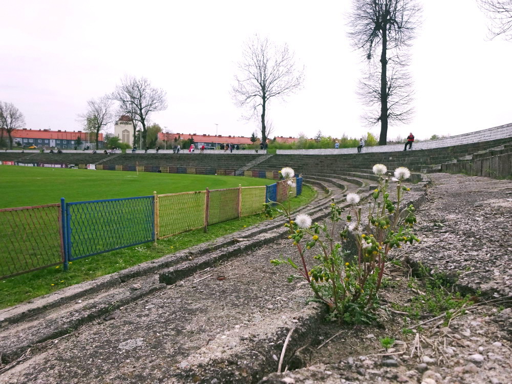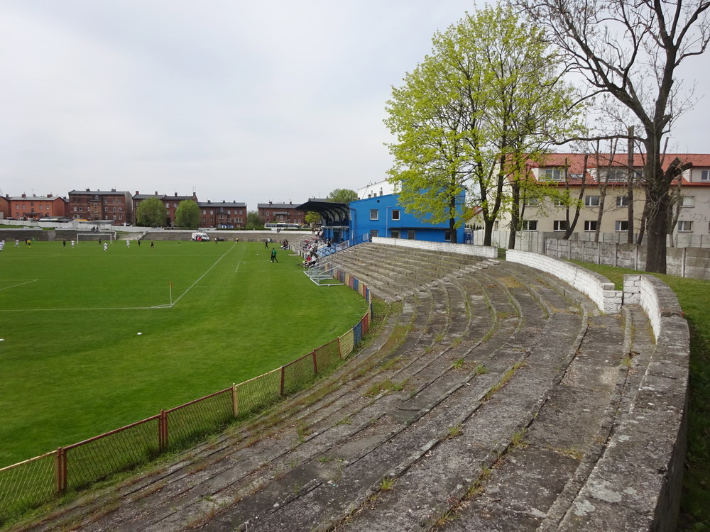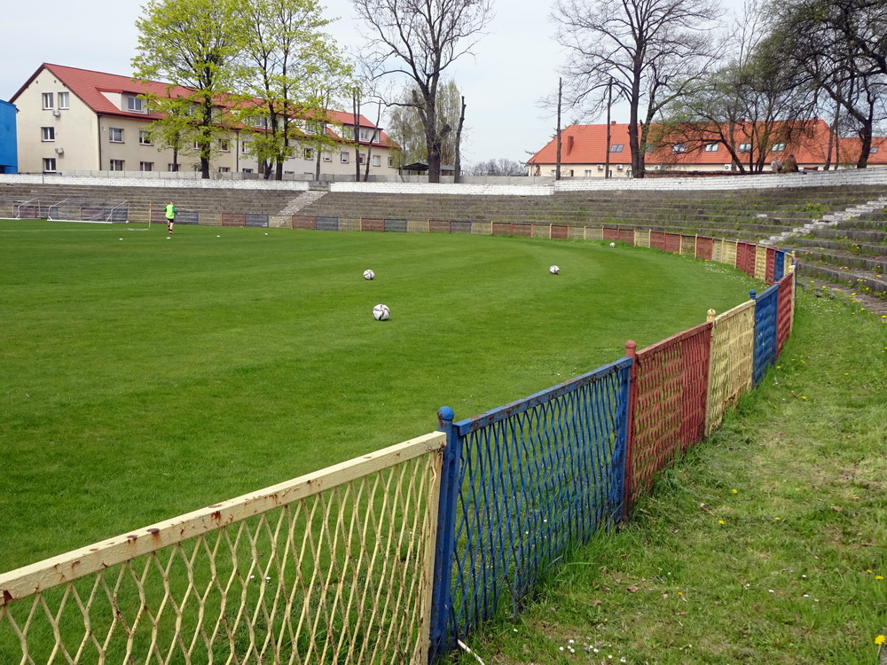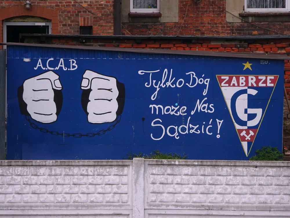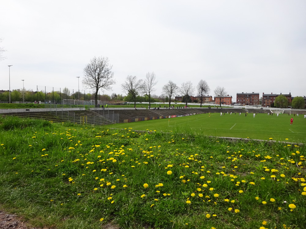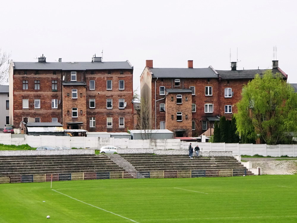 Kleiner Polen-Trip mit drei weiteren Süchtigen. Direkt nach Ankunft am Flughafen Katowice brachte uns ein Uber-Fahrer nach Swietochlowice, wo eine dieser wundervollen, alten, schlesischen Stadion-Schüsseln steht. Der dortige Verein spielt oft samstags um 11:00 Uhr, was wunderbar hinter die frühe Flug-Ankunft aus Dortmund passt. Hatte mir das schon einige Male vorgenommen, heute sollte es soweit sein. Aber obwohl man schon ewig für den Fußball durch die Gegend eibelt, lernt man nicht aus. Dass die alten Stehränge mittlerweile renaturiert wurden, war bekannt. Nicht aber, dass die Haupttribüne saniert und umgebaut wird. Daher fanden wir auf dem Grün nur U14-Mädels vor – nicht meine Sportart. Also brachten war die Klamotten ins Hotel in Katowice und fuhren von dort in den Norden Zabrzes, um die Reserve von Gornik im Stadion von Sparta Zabrze zu sehen. Die Gäste aus Gubin, an der Grenze zu Deutschland, nahmen die lange Anreise auf sich, um dann relativ chancenlos zu verlieren. Harter polnischer Viertliga-Alltag. Das betagte Stadion ist ein schönes altes Rund, die Rasenfläche ist von den Rängen durch einen dreifarbigen, alten Metallzaun getrennt, die Stufen sind teilweise etwas unfreiwillig begrünt.