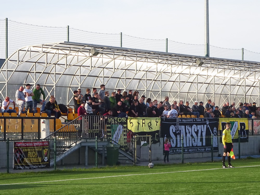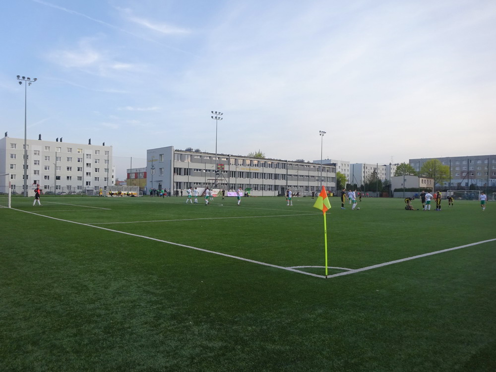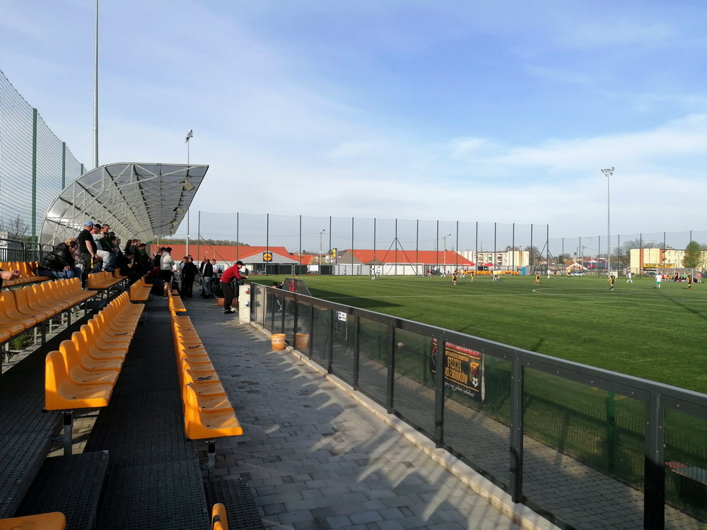 Weiter ging es nach Radzionkow, einer kleinen Industriestadt nördlich von Bytom. Um die Jahrtausendwende erlebte Ruch seine erfolgreichste Zeit, spielte einige Jahre in der höchsten polnischen Spielklasse. Das ganze damals noch im alten Stadion am Rande der Stadt. Leider wurde diese alte Kampfbahn vor zwei oder drei Jahren geschlossen und Ruch bolzt seitdem auf einer flatschneuen Plastikwiese mit ein paar teilweise überdachten Sitzschalen auf einer der Längsseiten. Also prinzipiell nichts, was den Besuch rechtfertigen würde, aber es gibt zumindest eine kleine Szene, die für ein wenig Stimmung sorgt. Fünfte Liga war angesagt, die höchste regionale Spielklasse, und die Gastgeber haben noch eine reelle Chance auf den Aufstieg. Gegen den Sechsten der Tabelle war es dann aber mühsam und es müsste einiges investiert werden, um die drei Punkte zu erreichen.