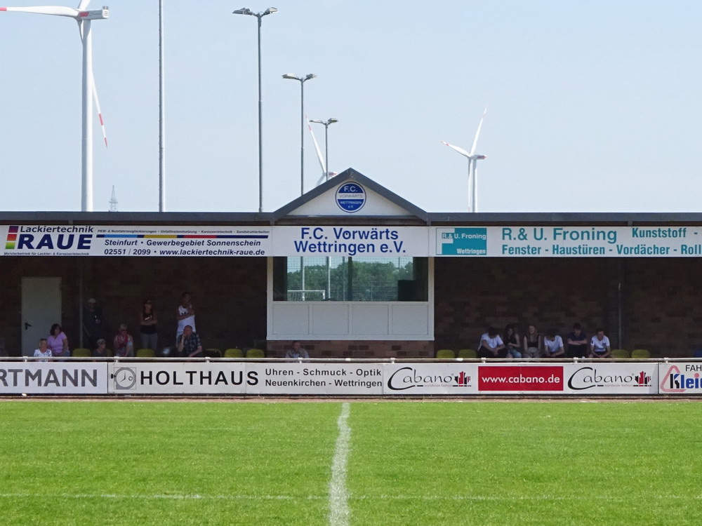 Der Tag danach. Der Wunsch war, einfach irgendwo einen belanglosen Kick zu schauen und sich von den emotionalen Strapazen des Vortages zu erholen. Das gelang leidlich, denn die Eindrücke des Aufstiegstages befanden sich noch mitten im Verarbeitungsprozess. Mit RWE-Kumpel Marcel wurde Wettringen im Münsterland angesteuert, wo der gastgebende FC Vorwärts die SG Bockum-Hövel aus Hamm empfing. Die Gäste haben als Tabellenzweiter gute Chancen eine mögliche Relegation zu erreichen und wurden von einer Gruppe Rentner-Lads unterstützt. Den deutlichen Auswärtssieg verfolgten wir eher mit einem Auge, denn es gab natürlich nur ein Thema.