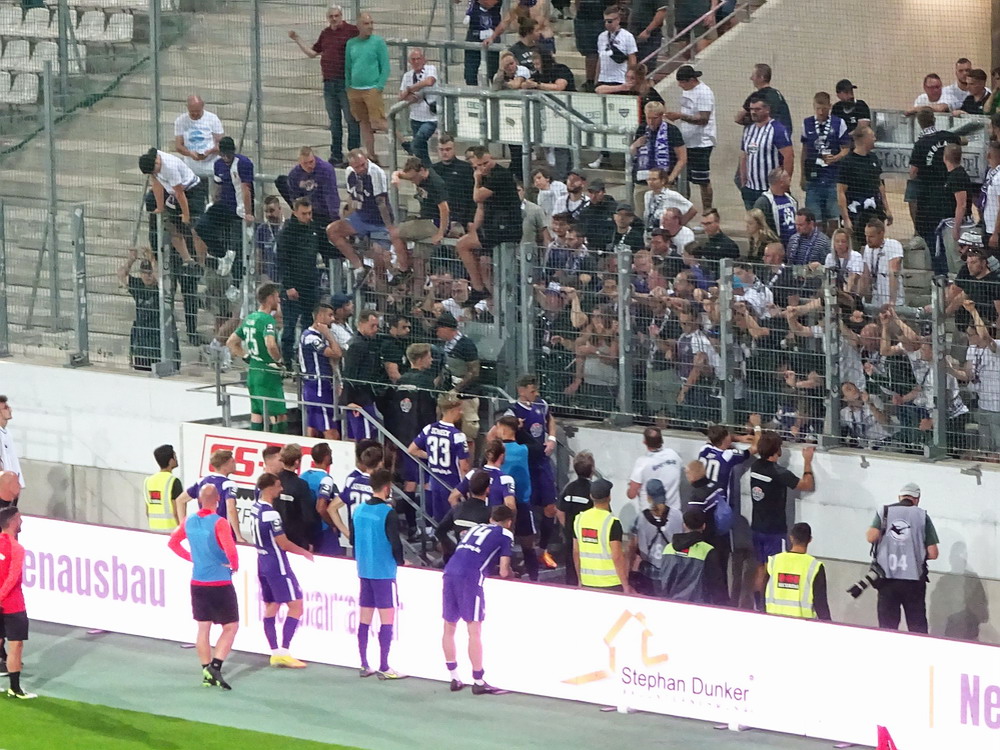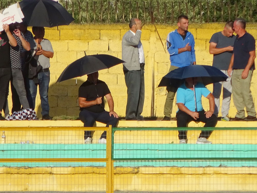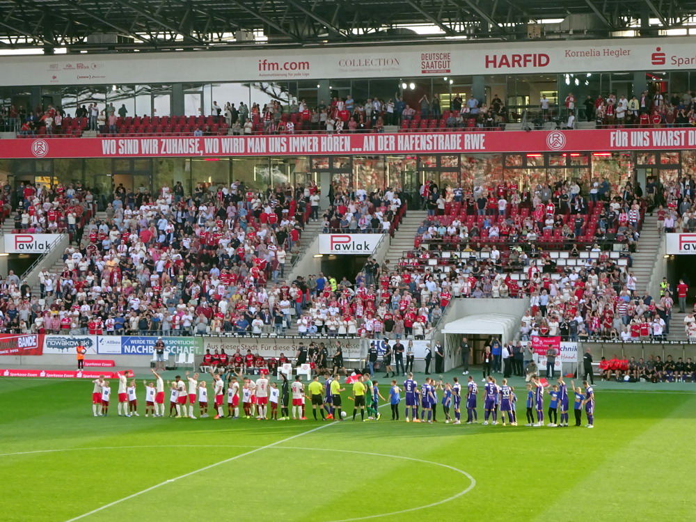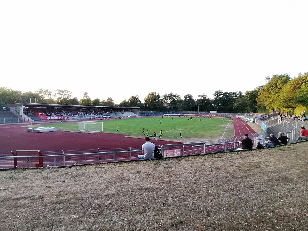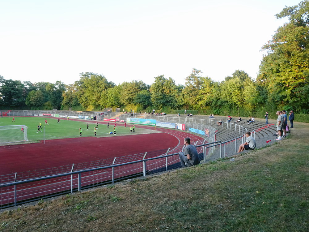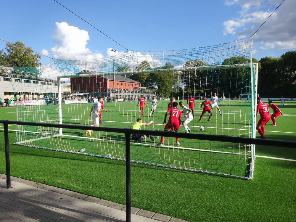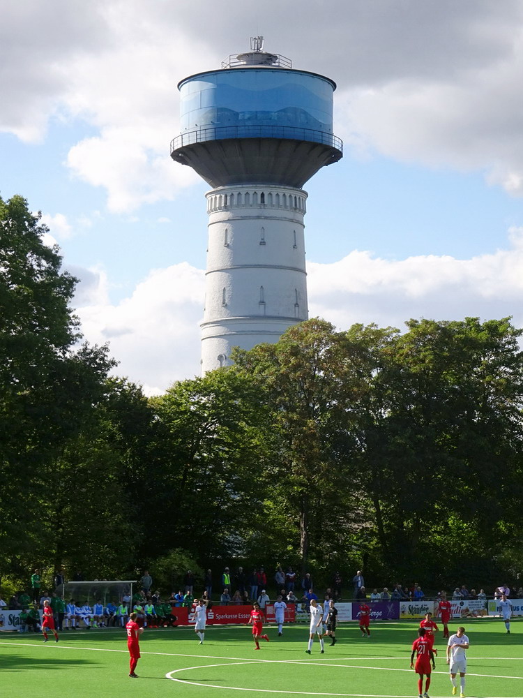 Da die Rückreise aus Albanien aufgrund eines durch die Airline annullierten Fluges kurzfristig umgestrickt werden musste, war das eigentlich geplante Spiel nicht mehr machbar. Das eröffnete die Möglichkeit, den Frintroper Adlern mal wieder einen Besuch abzustatten, dem Verein, bei dem ich selber länger als eine Dekade aktiv war und den gegnerischen Torhütern das Fürchten gelehrt habe… MUAHAHAHA! Die Zeit nach der Rückkehr reichte soeben, um den Koffer in die Ecke zu schmeißen, die Klamotten zu wechseln und direkt loszueibeln, um dann doch eine Minute zu spät am legendären Wasserturm anzutischen. Blieb folgenlos, da sich der Anstoß um satte zwanzig Minuten verzögerte. Die Adler waren nach einer atemberaubenden Saison, in welcher 26 Siege und 2 Remis in 28 Spielen bei einem Torverhältnis von plus 93 und pro Spiel mehr als vier erzielten Tore im Schnitt erreicht wurden, in die Landesliga aufgestiegen. Dass diese Mannschaft auch für die höhere Liga eine gute Qualität haben würde, war klar. Dass aber nach vier Spieltagen einer natürlich noch jungen Spielzeit der Tore-Schnitt erneut über vier liegt und die Mannschaft mit drei Siegen wiederum oben dabei ist, war kaum abzusehen.