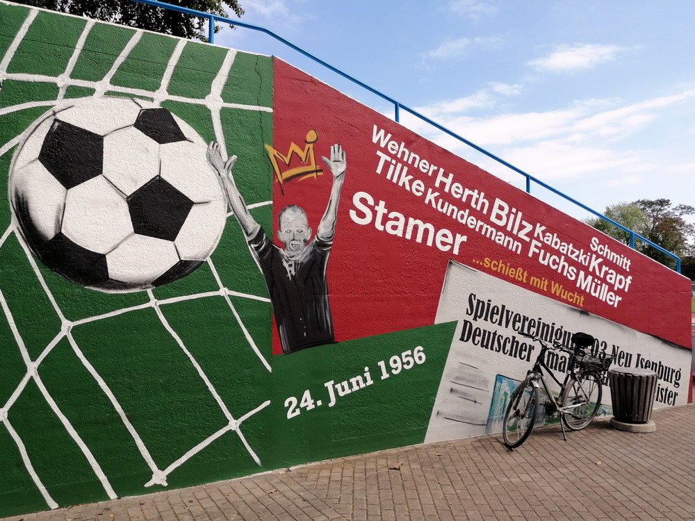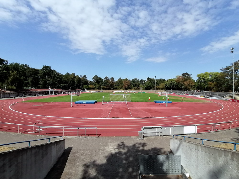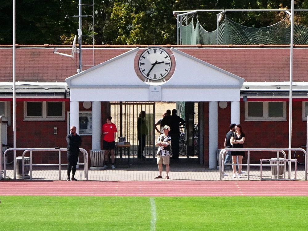 Am Vorabend wurde länger und tiefer ins Glas geblickt, als es der Körper an diesem Morgen gut fand. Marco machte sich seine Funktion als Beifahrer zu Nutze und brachte vor Rührung bis zum ersten Ziel des Tages kaum ein Wort heraus. Vielleicht hat er aber auch einfach nur beinahe die gesamte Fahrzeit gepennt. Das Sportparkstadion zu Neu-Isenburg war also das Ziel, das wir aufgrund eines Staus und gefühlten 100 Kilometer Baustelle zwischen Nürnberg und Würzburg so gerade eben noch ‚just in time‘ erreichten. Aber noch pünktlich genug, um die Kabinenansprache des Trainers der Gastgeber mitzubekommen, der sein Team mal so richtig heiß machte. Letztlich schien er aber der einzige zu sein, der heiß war, denn die Messe war schon beim 0:3 zur Halbzeit gelesen. Das weitläufige Mehrzweckstadion ist Herzstück des Sportparks und verfügt über Ränge auf der Gegenseite und in den Kurven. Über die gesamte Länge der Hauptseite zieht sich das Sozialgebäude mit einem markanten Eingangsbereich als Herzstück. Da der Kick einige Minuten später angepfiffen wurde und durch Trinkpausen und Behandlungs-Unterbrechungen beinahe so viel Verspätung aufbaute, wie die Züge der Deutschen Bahn, war das pünktliche Erreichen von Spiel Nummer zwei akut gefährdet. Daher entschieden wir uns schon einige Minuten vor dem Abpfiff aufzubrechen, da die Partie hier eh schon klar entschieden war.