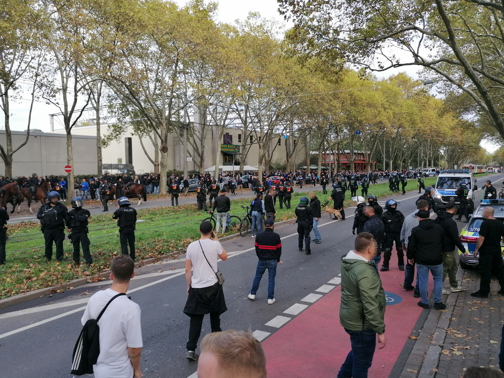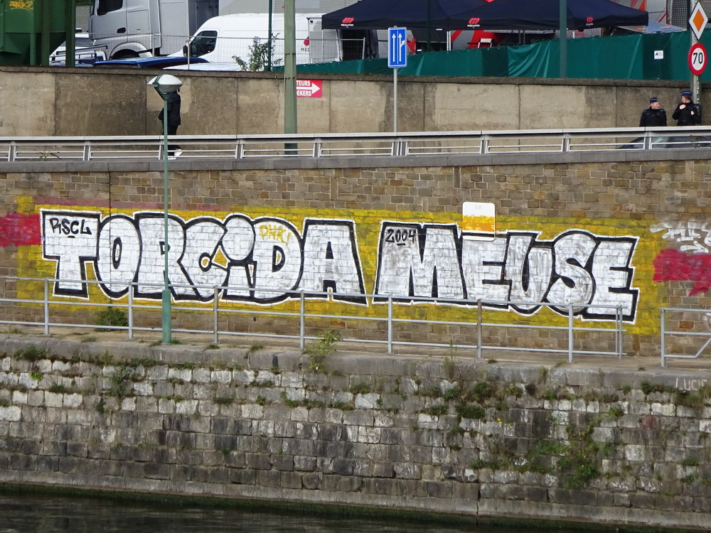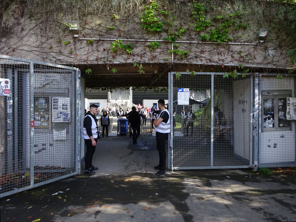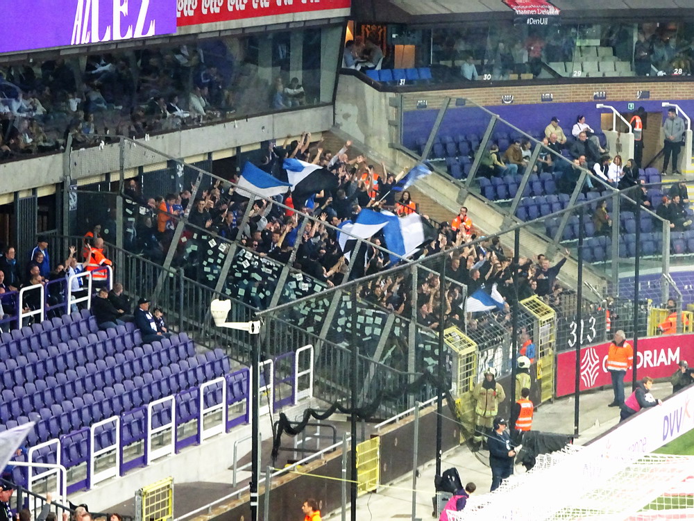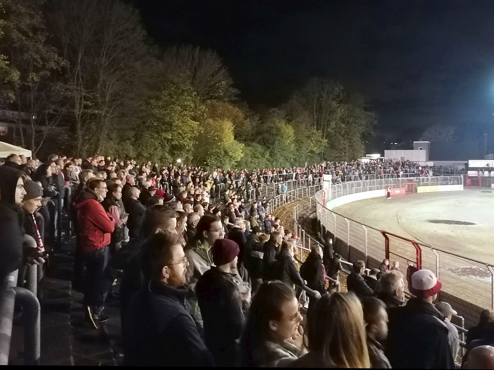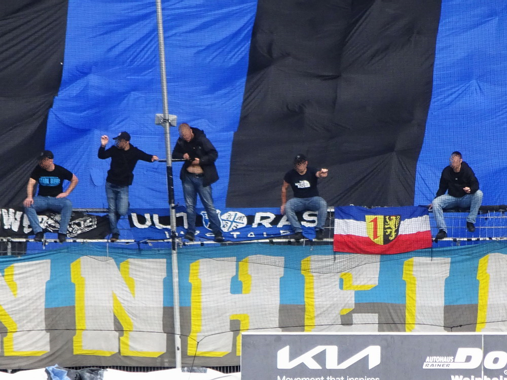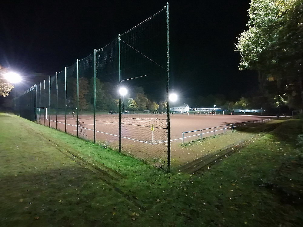 Der zweite Treffer für die Gastgeber ließ mich schon mal die Augenbrauen heben und die Turner blieben weiter am Drücker. Belohnt wurde der engagierte Auftritt des Underdogs mit dem Ausgleich in der Schlussminute. Bei dieser Kopfball-Bogenlampe sah Ersatzschnapper Wienand auch nicht gerade gut aus und der gesamte Kader des ETB begrub den Torschützen unter sich. Im guten Glauben hatte ich mich sogar schon Richtung Ausgang begeben, um schnell nach Hause zu kommen, stattdessen konnte nun zu meinen Leuten zurückkehren. Auch in der Verlängerung waren die Gastgeber das agilere Team, auch wenn es nun wieder ausgeglichener aussah. Allerdings fielen die Schwarz-Weißen auch durch erstaunlich viele Krämpfe und sich ewig ziehende Auswechslungen auf, das verwässerte den guten Eindruck etwas. Keine Treffer fielen mehr in der Extra-Time, es ging ins Penalty-Schießen, womit sich mein individuelles Gefühl von ‚sicher weiter‘ vor der Halbzeit zu ‚ausgeschieden‘ vor dem Elfer-Kicken wandelte, denn zuletzt konnte kein Rot-Weisser großartig glänzen, wenn vom Punkt geschossen wurde. Aber jede Serie reißt irgendwann und während ein ETB-Recke den Ball Uli Hoeneß-like in den Nachthimmel jagte und ein anderer am RWE-Keeper scheiterte, verwandelten alle Roten vom Punkt und der RWE kam mit einem ganz dicken blauen Auge davon und sprang der Blamage noch soeben von der Schippe.
