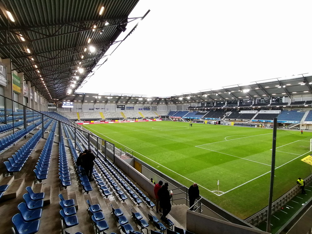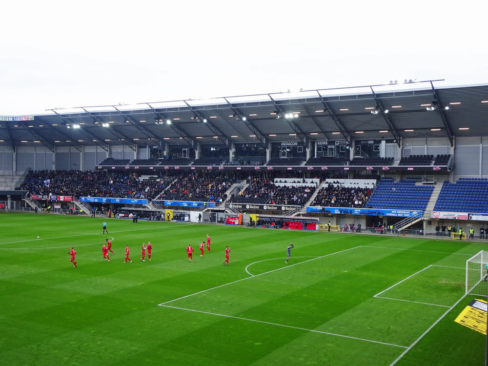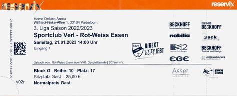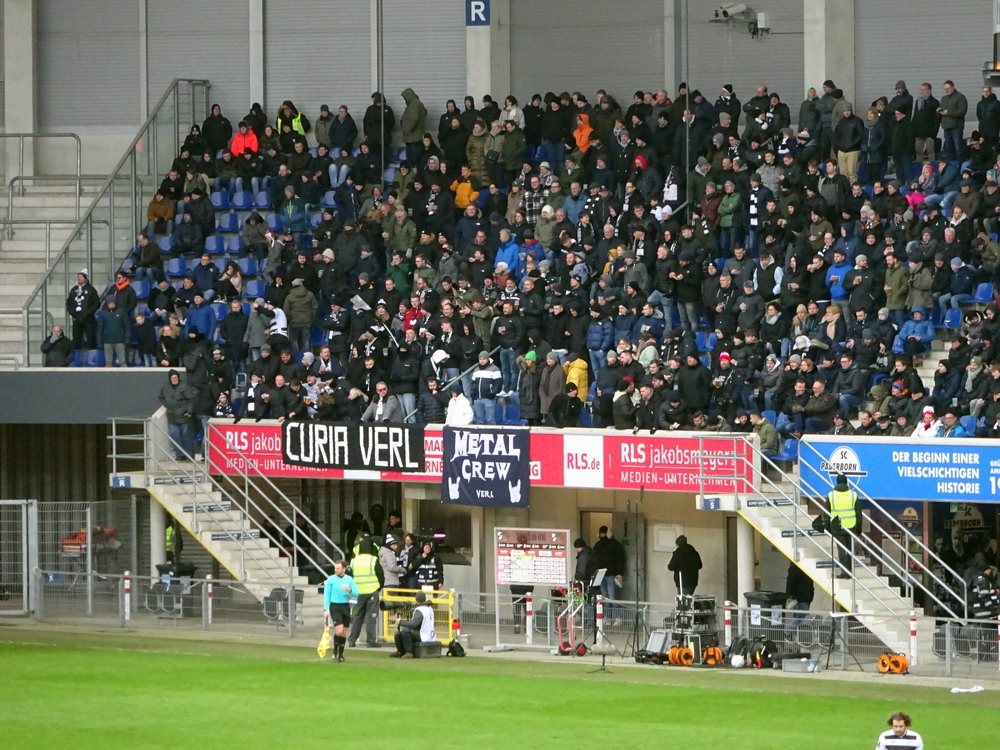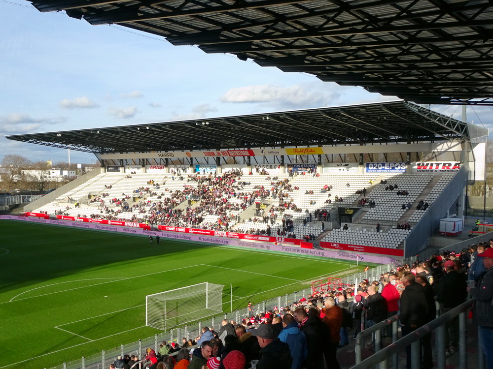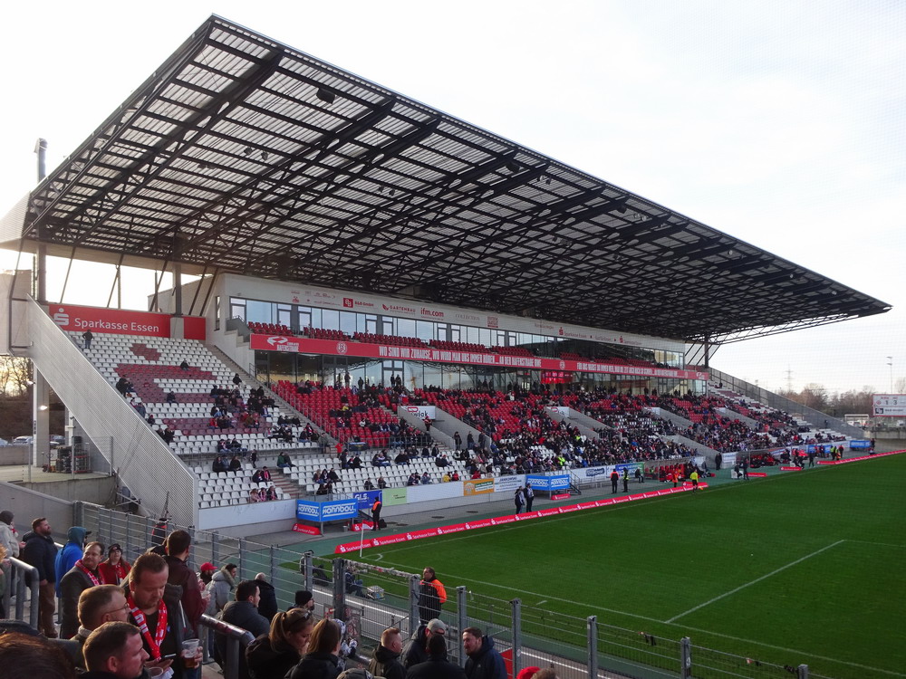 Auswärts in Verl war nicht auswärts in Verl, da der Sportclub seine Heimspiele ja (noch) in Paderborn austragen muss, denn die heimische kleine Arena erfüllt nicht die Bedingungen für die Dritte Liga. Ende März soll der Verein endlich in sein eigenes Stadion zurückkehren können. Die Wellblechbude an der Pader trifft absolut nicht meinen Geschmack, denn das Teil sieht irgendwie aus, wie mal eben dahingezimmert. Kann sein, dass da auch der unsympathische eigentliche Heimverein etwas beeinflusst, aber das einzige, was ich an dem Teil begrüße, sind die geschlossenen Ecken. Optisch gefallen mir zwar Stadien mit vier einzelnen Tribünen viel besser, aber für den Stimmungsfaktor ist ein rundherum geschlossenes Stadion natürlich besser. Ein Umstand, warum in Essen nicht die maximal mögliche Lautstärke erreicht wird. Mehr als zwei Drittel der Zuschauer reisten aus der schönsten Stadt der Welt an. Auch wenn die Entfernung vergleichsweise gering ist, ziehe ich erneut den Hut vor uns selbst – starker Auswärts-Mob wieder und auch die Stimmung war ordentlich. Im Gegensatz zum Spiel. So richtig bekommen die Roten die Pferdestärken im Moment nicht auf den Rasen. Vor allem im zweiten Durchgang machten die Gastgeber das klar bessere Spiel. Die besseren Einschussmöglichkeiten hatte aber der glorreiche RWE. Ennali und Young bewiesen jedoch einmal mehr, dass sie nicht mit einem Torriecher geboren wurden. Da hätte ich mir gewünscht, dass Tormaschine ‚Engel‘, mit dessen etwas später Einwechselung deutlich frischer Wind in die Offensive kam, die beiden dicksten Chancen gehabt hätte. Ich bin sicher mindestens eine davon hätte er genutzt, auch wenn er in der 3.Liga einen deutlich schwereren Stand hat, als in den Jahren zuvor. Trainierer Dabrowski machte mich mit seiner Wechselstrategie mal wieder wahnsinnig. Es gab nämlich offensichtlich keine. Viel zu spät wurde getauscht und das hätte durchaus schiefgehen können, denn im zweiten Durchgang geriet der RWE mehr und mehr unter Druck. Man darf die Truppe zwar in dieser Saison nicht aufgeben, aber ob diese heute nach einem Rückstand noch einmal zurückgekommen wäre, zweifle ich an.