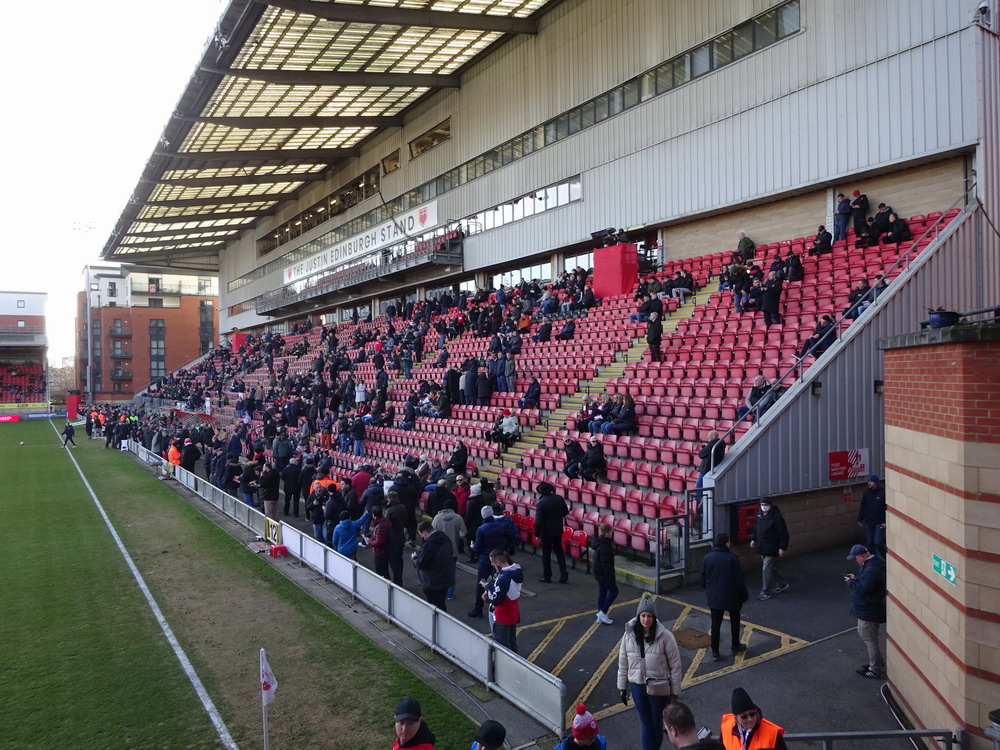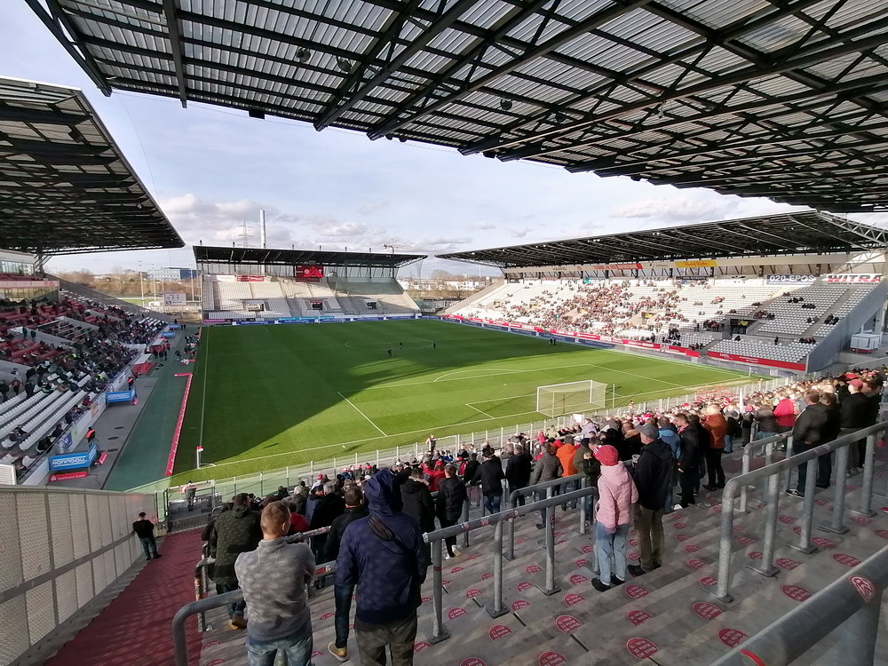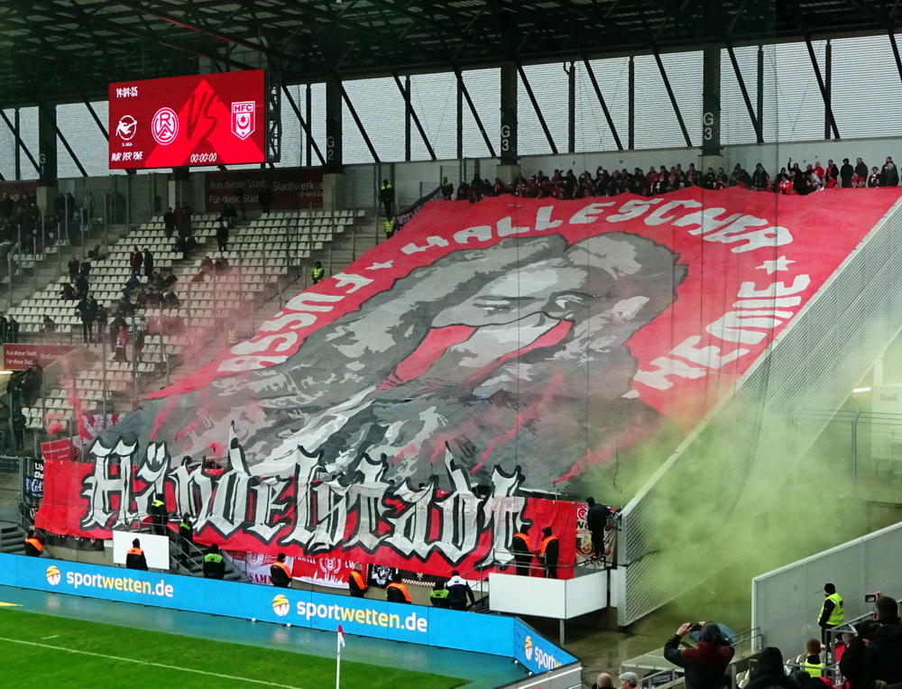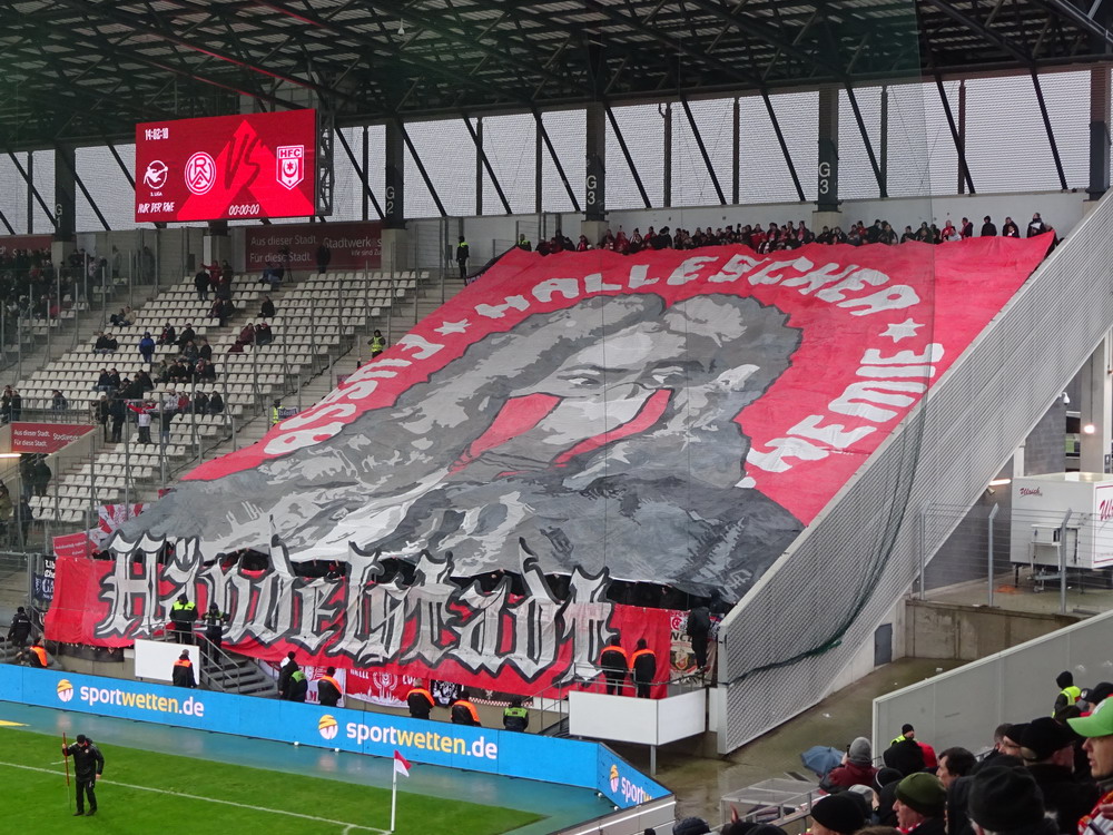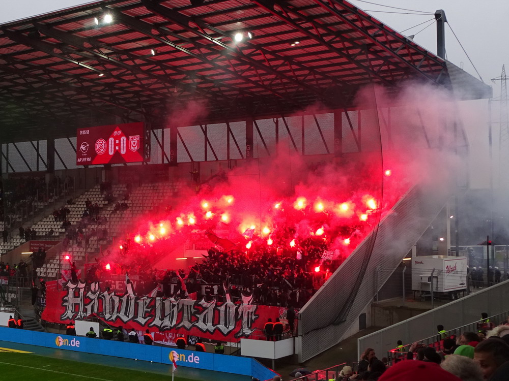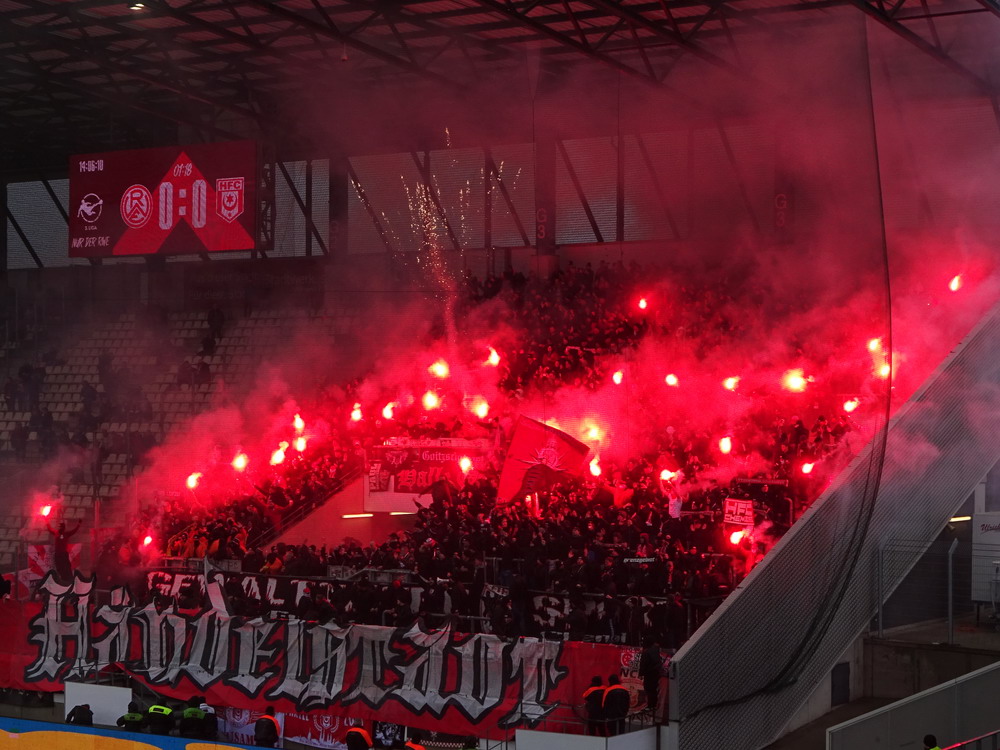 Auswärts in Verl war nicht auswärts in Verl, da der Sportclub seine Heimspiele ja (noch) in Paderborn austragen muss, denn die heimische kleine Arena erfüllt nicht die Bedingungen für die Dritte Liga. Ende März soll der Verein endlich in sein eigenes Stadion zurückkehren können. Die Wellblechbude an der Pader trifft absolut nicht meinen Geschmack, denn das Teil sieht irgendwie aus, wie mal eben dahingezimmert. Kann sein, dass da auch der unsympathische eigentliche Heimverein etwas beeinflusst, aber das einzige, was ich an dem Teil begrüße, sind die geschlossenen Ecken. Optisch gefallen mir zwar Stadien mit vier einzelnen Tribünen viel besser, aber für den Stimmungsfaktor ist ein rundherum geschlossenes Stadion natürlich besser. Ein Umstand, warum in Essen nicht die maximal mögliche Lautstärke erreicht wird. Mehr als zwei Drittel der Zuschauer reisten aus der schönsten Stadt der Welt an. Auch wenn die Entfernung vergleichsweise gering ist, ziehe ich erneut den Hut vor uns selbst – starker Auswärts-Mob wieder und auch die Stimmung war ordentlich. Im Gegensatz zum Spiel. So richtig bekommen die Roten die Pferdestärken im Moment nicht auf den Rasen. Vor allem im zweiten Durchgang machten die Gastgeber das klar bessere Spiel. Die besseren Einschussmöglichkeiten hatte aber der glorreiche RWE. Ennali und Young bewiesen jedoch einmal mehr, dass sie nicht mit einem Torriecher geboren wurden. Da hätte ich mir gewünscht, dass Tormaschine ‚Engel‘, mit dessen etwas später Einwechselung deutlich frischer Wind in die Offensive kam, die beiden dicksten Chancen gehabt hätte. Ich bin sicher mindestens eine davon hätte er genutzt, auch wenn er in der 3.Liga einen deutlich schwereren Stand hat, als in den Jahren zuvor. Trainierer Dabrowski machte mich mit seiner Wechselstrategie mal wieder wahnsinnig. Es gab nämlich offensichtlich keine. Viel zu spät wurde getauscht und das hätte durchaus schiefgehen können, denn im zweiten Durchgang geriet der RWE mehr und mehr unter Druck. Man darf die Truppe zwar in dieser Saison nicht aufgeben, aber ob diese heute nach einem Rückstand noch einmal zurückgekommen wäre, zweifle ich an.