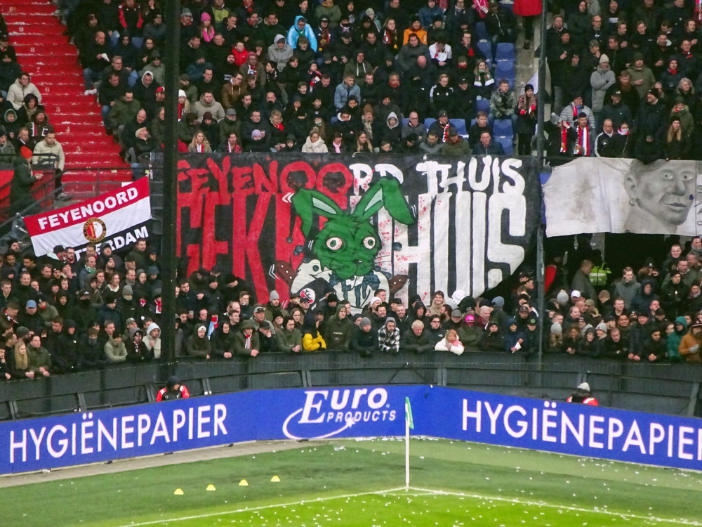 ‚De Klassieker‘ wird diese Partie bei unseren Frikandelverzehrenden Nachbarn genannt. Zum exakt 200. Male standen sich die beiden Clubs gegenüber. Es ist sicherlich das bedeutendste Spiel in den Niederlanden, trägt aber seit mehr als 25 Jahren leider einen Makel mit sich rum. Denn auch unsere Nachbarn erlebten in den 90ern den Höhepunkt des Hooliganismus und im Jahre 1997 kam es in irgendeinem Kaff zu einem abgesprochenen Ding, bei dem es zum Einsatz diverser Handwaffen kam. Als ‚Slag bij Beverwijk‘, die ‚Schlacht bei Beverwijk‘, ging der Kampf in die Geschichte ein. Die Nummer lief offensichtlich völlig aus dem Ruder, brennende Autos und viele Verletzte inklusive. Dass ein Ajax-Fan sein Leben ließ war der traurige Höhepunkt und beide Clubs zogen daraus die Konsequenz, dass die Spiele gegeneinander fortan ohne Gäste-Fans stattfinden sollten, auch wenn diese Auseinandersetzung gar nicht in direktem Zusammenhang mit einem Spiel beider Teams gegeneinander stand. Das Gästeverbot wurde irgendwann wieder aufgehoben, nach neuerlichen Zusammenstößen 2009 wieder erneuert und hat seitdem dauerhaft Bestand. Das Fehlen des Away-Supports schmälert den Reiz dieser Partie natürlich gewaltig, dennoch kann man die Nummer durchaus mal gesehen haben. Auch der ‚Kuip‘, die Wanne, wie das ‚Stadion Feyenoord‘ im Volksmund genannt wird, ist immer mal wieder einen Besuch wert.
