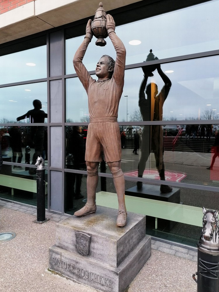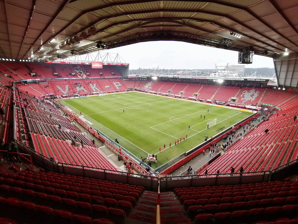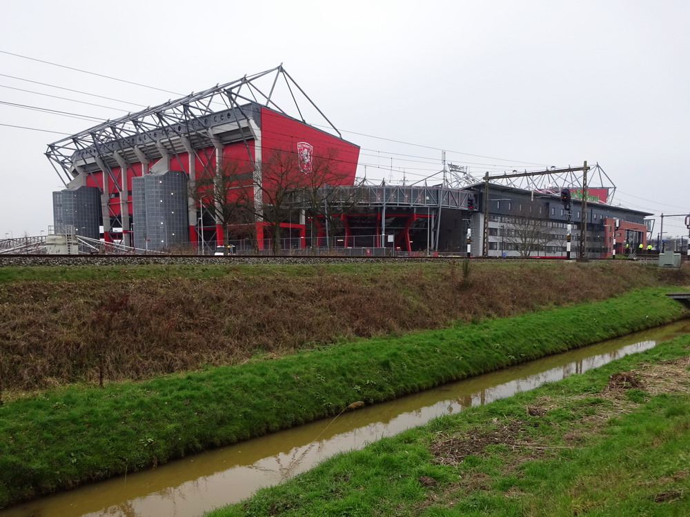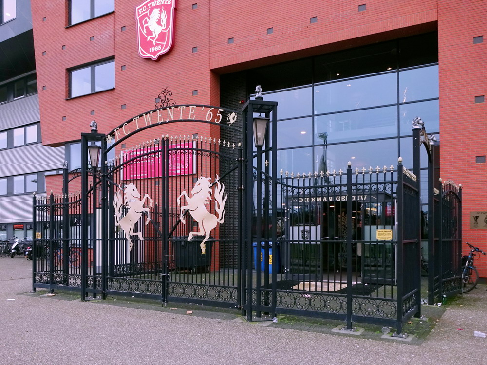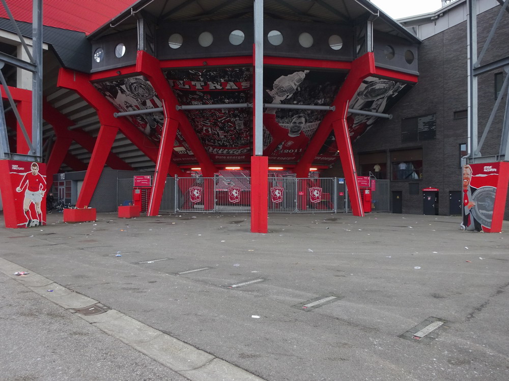 Bevor der globale Virus zuschlug, hatte ich damit begonnen, den etwas interessanteren holländischen Stadien und Szenen nach und nach mal wieder einen Besuch abzustatten. Als die Pest dann um sich griff, wurde dieser Lauf dann natürlich jäh unterbrochen. Ohne wirklich Zeitplan nehme ich dieses Vorhaben nun wieder auf und nachdem ich vergangenen Wochenende im ‚Kuip‘ dem ‚Klassieker‘ beiwohnte, ging es heute in die größte Stadt der Provinz Overijssel. ‚De Grolsch Veste‘ heißt das schmucke, für holländische Verhältnisse schon sehr beachtliche Stadion und die Namensrechte liegen damit natürlich beim lokalen Bier-Brauer. Auf drei Seiten ist das Stadion doppelstöckig gebaut, lediglich die Haupttribüne muss mit einem Rang auskommen. Die farbliche Gestaltung rund um das Stadion gefällt mir gut. Viele Malereien sind zu sehen und identitätsgebende Banner unter den Decken der Zugänge sind zu finden. Das hat was und damit wird auch deutlich gemacht, wer dort zu Hause ist. Die Vereinsfarben passen ja auch, prinzipiell könnte man den Verein echt sympathisch finden, wenn da nicht die Fanfreundschaft zu den fehlgeleiteten Anhängern vom FC Meineid aus der verbotenen Stadt bestehen würde. Der FC Twente ist übrigens einer der wenigen Clubs, welche die Phalanx der drei großen Vereine durchbrechen und einen Meistertitel in der Eredivisie feiern durfte.