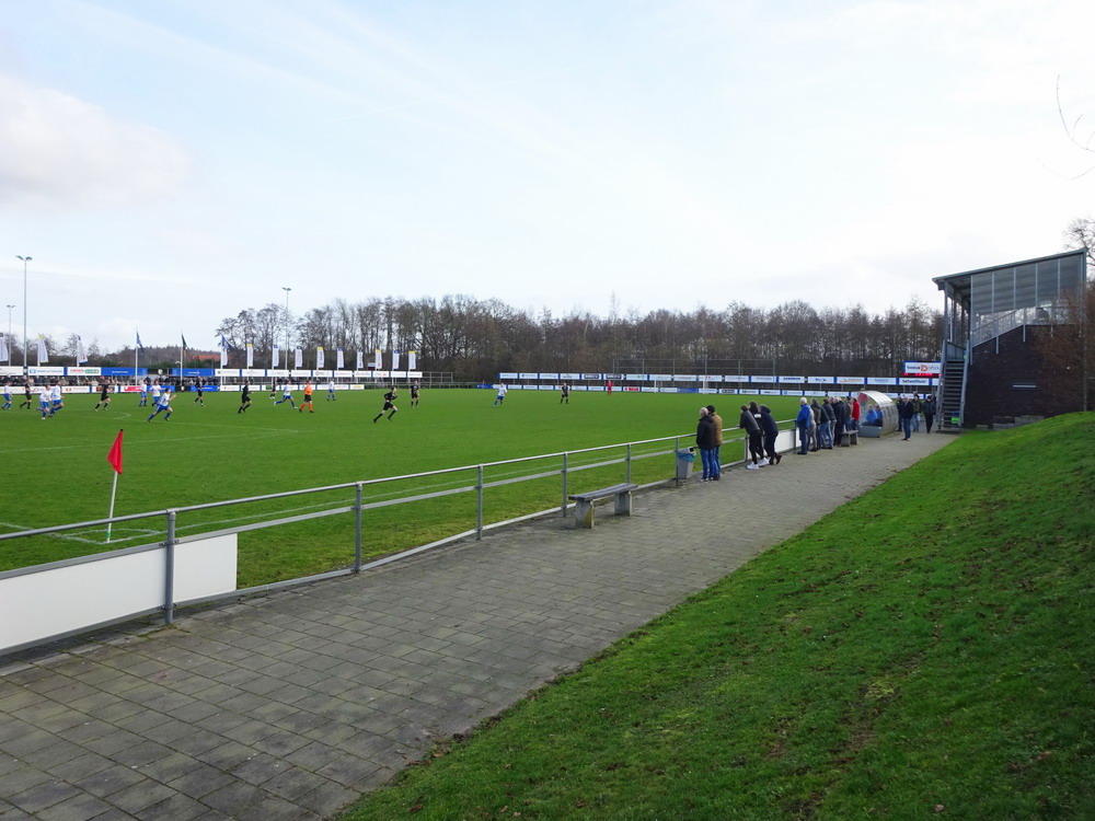 Da musste es erst Februar werden, bis es das erste Mal in diesem Jahr zum Rumpelfussball ging. Irgendwie hat es mir Holland in den letzten Wochen angetan und da RWE-Genosse Marcel dieses Ziel auch im Auge hatte, einigte man sich schnell auf die Route und ab ging es wie exakt eine Woche zuvor in die Provinz Overijssel. Ommen hieß das erste Ziel. Auf Fotos hatte ich mal eine brauchbare Tribüne entdeckt, die sich aber dann irgendwie doch nicht als Oberkracher zeigte. Zwar weicht das Gerät durchaus von der Standard-Bauweise ab, aber die Bilder hatten mir offenbar ein romantischeres Bild vor die geistige Pupille gezaubert, als es die Realität hergibt. Ansonsten die Anlage, die acht weitere Plätze bietet, auch keinen Ausbau her. Diesen fehlenden Charme bezeichne ich ja gern als steril. Für ein Spiel auf achtklassigem Niveau war dieses gar nicht so übel besucht und auch ganz gut anzusehen. Für ‚Vlugheid en Kracht‘, Schnellheit und Kraft, steht das Kürzel im Namen des Gastvereins, aber davon war nicht allzu viel zu sehen. Zudem schwächten sie sich kurz vor dem Pausenpfiff durch einen Platzverweis selbst und gerieten keine zwei Zeigerumdrehungen auch in Rückstand. Im zweiten Durchgang konnte sie auch nichts hinzusetzen und mit dem zweiten Tor für die Gastgeber war der Kick dann auch entschieden.