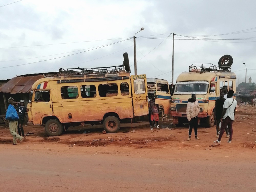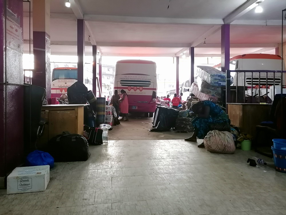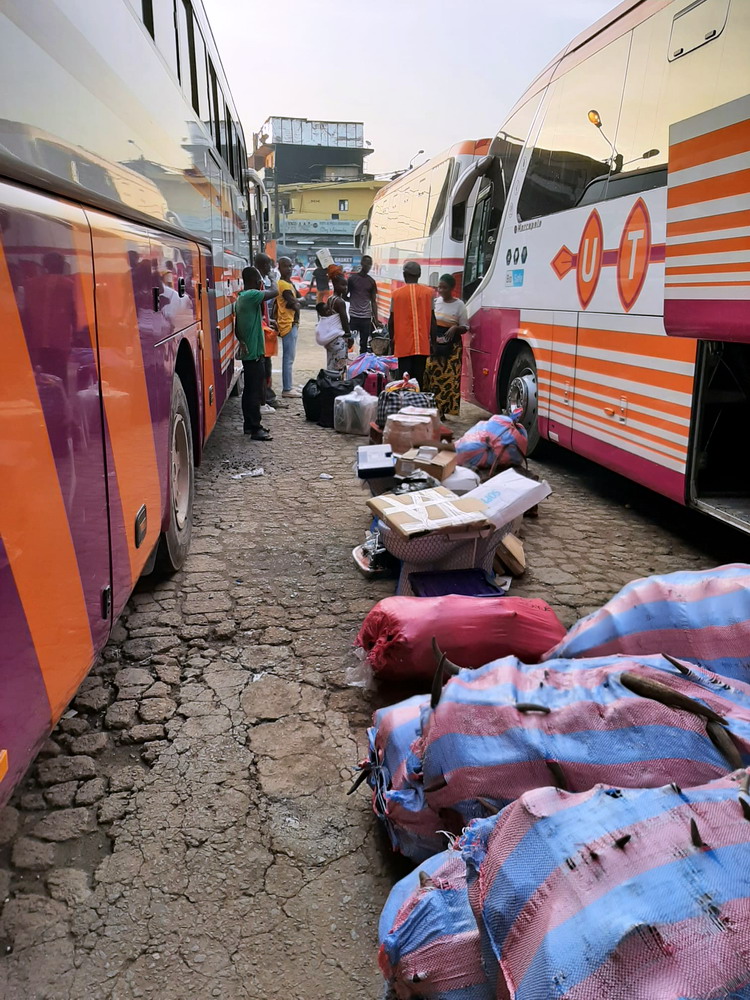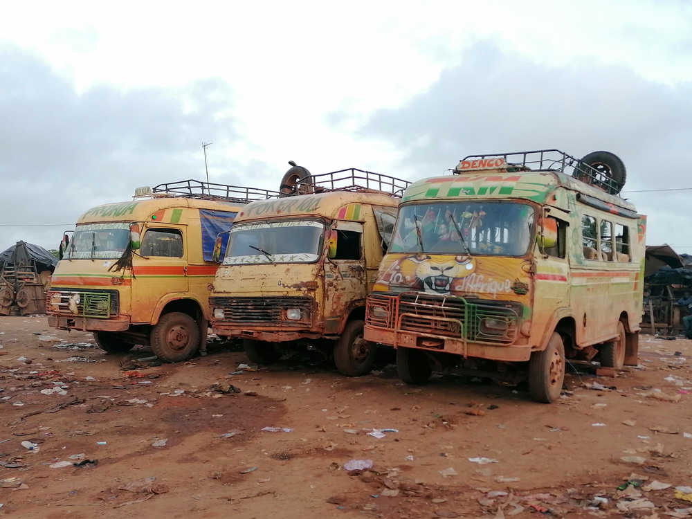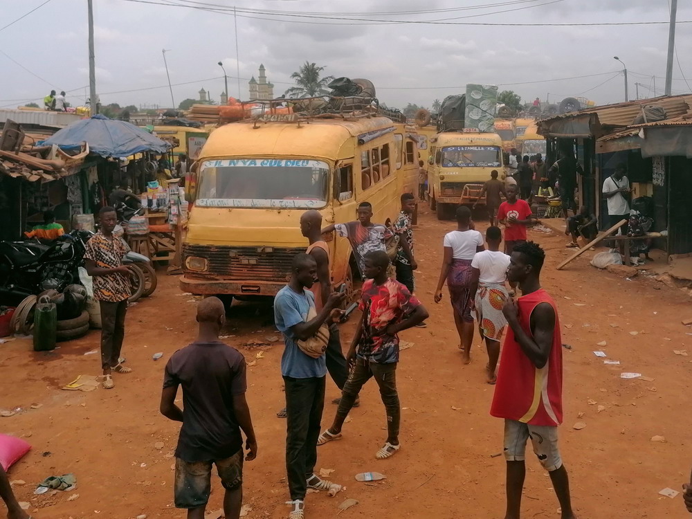 Trotz der frühen Uhrzeit sah es in Adjamé am heutigen Morgen nicht besser aus als am Vortag. Unser Yango-Fahrer brachte uns direkt vor den Hof, so konnten wir uns jedem Gemokel entziehen. Ein gescheites Mädel von UTB adoptierte uns ahnungslose Bleichgesichter bis zur Abfahrt, begleitete und bis in den Bus und verschaffte uns dort gute Plätze in der ersten Reihe. Nicht ganz unwichtig, da man in den engen Gefährten mit fünf Sitzen je Reihe nur dort etwas Beinfreiheit genießt. Gagnoa war das Ziel und aus angekündigten „minimum drei bis vier Stunden“ Fahrzeit für 270 Kilometer wurden deren sechs. Nun ja, gelogen war es ja nicht. Der Blick aus dem Busfenster gab einen guten Einblick in die Landschaft und wie die Menschen in den weniger dicht besiedelten Gegenden leben. Die Hotel-Frage war noch ungeklärt, lediglich eine kleine Vorab-Recherche war betrieben worden. Wir versuchten es erfolgreich mit dem Aho-Hotel und buchten zwei Einzelzimmer. Die preiswerten Räume waren besetzt, dennoch schlugen wir beim teuren Kurs von je 25.000 CFA zu, denn wenn man in Afrika halbwegs vernünftig wohnen will, wird es selten günstig. Gagnoa ist eine Stadt von circa 180.000 Einwohnern und hat offensichtlich außer schrottreifen Minibussen nicht allzu viel zu bieten.