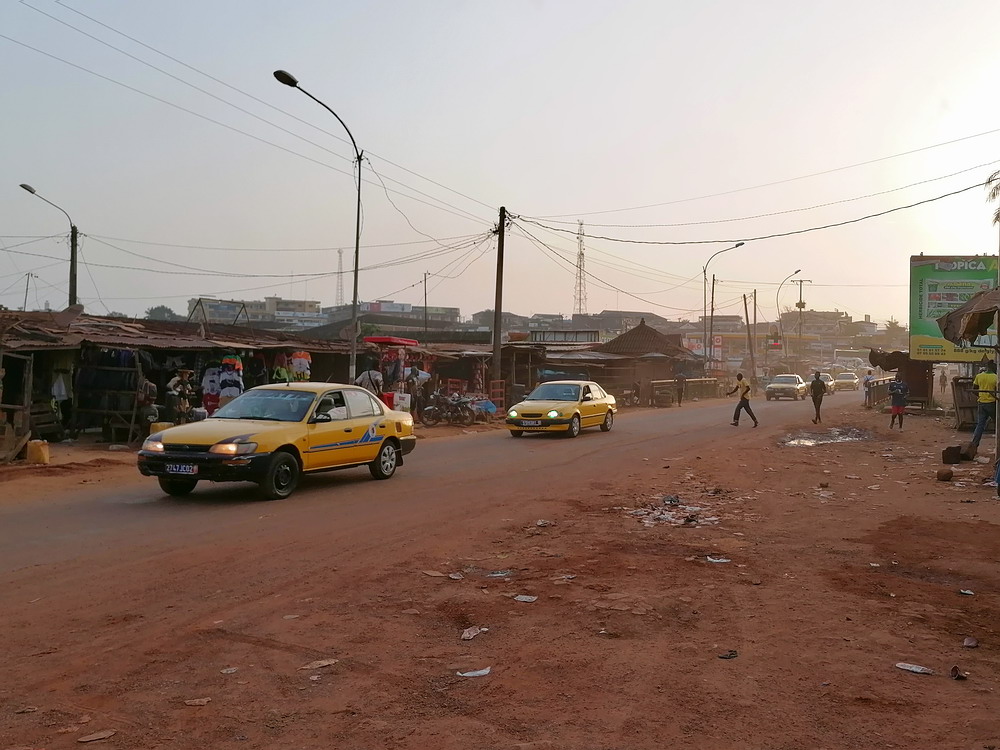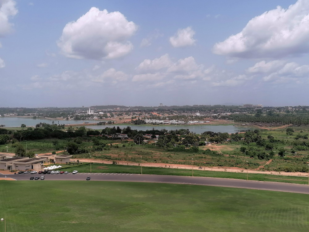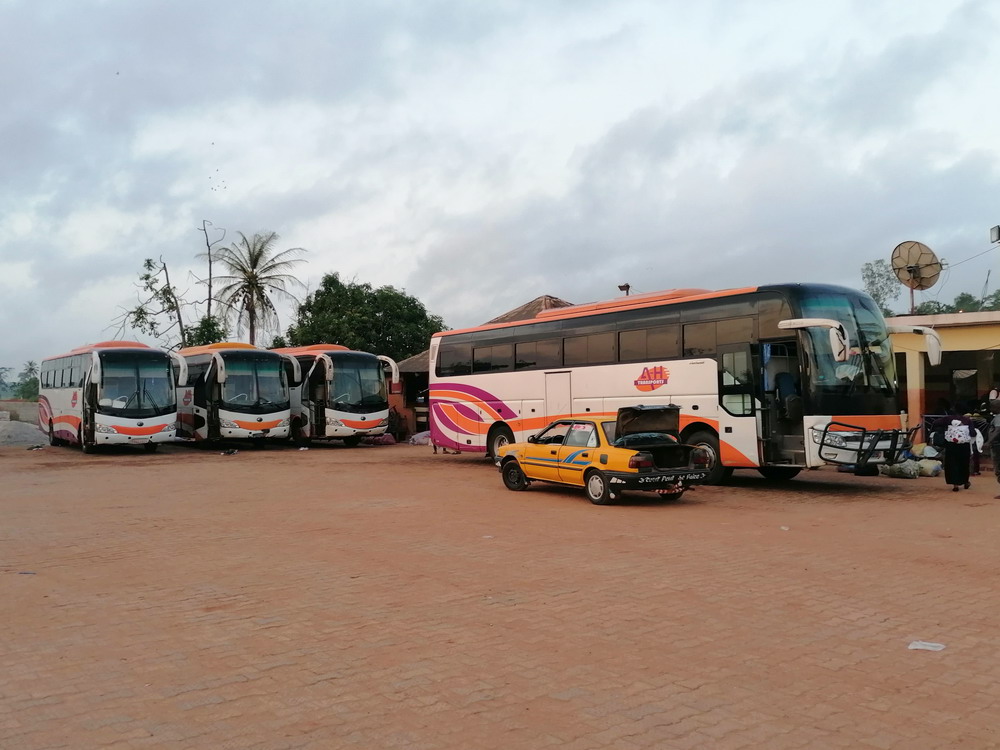„Seid morgen früh um 7:00 Uhr hier, dann könnt ihr Tickets kaufen“ war am Vortag die Info, als ich nach Ankunft am Vortag schon mal Plätze für den Bus nach Yamoussoukro kaufen wollte. Liest sich einfach, war für uns mit nur zehn Worten Französisch-Wissen aber natürlich ein Akt der Geduld die Info zu verstehen. Ungeklärt blieb ob der Bus nun um 7:00 Uhr fährt, was ich aufgrund benannter Information vermutete, oder um 8:00 Uhr, gemäß Aussage des UTB-Facebook-Menschen – der Facebook-Support funktionierte tatsächlich gut – den ich vorab mit Fragen gequält hatte. Wir waren vorsichtshalber in der Morgendämmerung um halb sieben da, die Lösung lautete dann Abfahrt um 7:30 Uhr. Ich hatte befürchtet, dass für die 140 Kilometer locker vier bis fünf Stunden fällig seien, aber obwohl die Strecke über Nebenstraßen teils abenteuerliche Schlaglöcher im Angebot hatte, in die beinahe der ganze Bus reinpasste, machte der Fahrer, der einen Anzug trug und damit bestgekleidete Person im vollbesetzten Fahrzeug war, einen exzellenten Job und lieferte uns nach weniger als drei Stunden am Ziel ab. Erneut stellte sich die Übernachtungs-Frage und da uns in Gagnoa ein Flyer darauf hingewiesen hatte, dass es auch in Yakro, wie die Stadt hier kurz genannt wird, ein Aho-Hotel gibt, steuerten wir dieses an. Dort war auch die günstigste Zimmerkategorie zu haben und so buchten wir zwei Räume für je 15.000 Einheiten des Westafrika-Gerümpel.