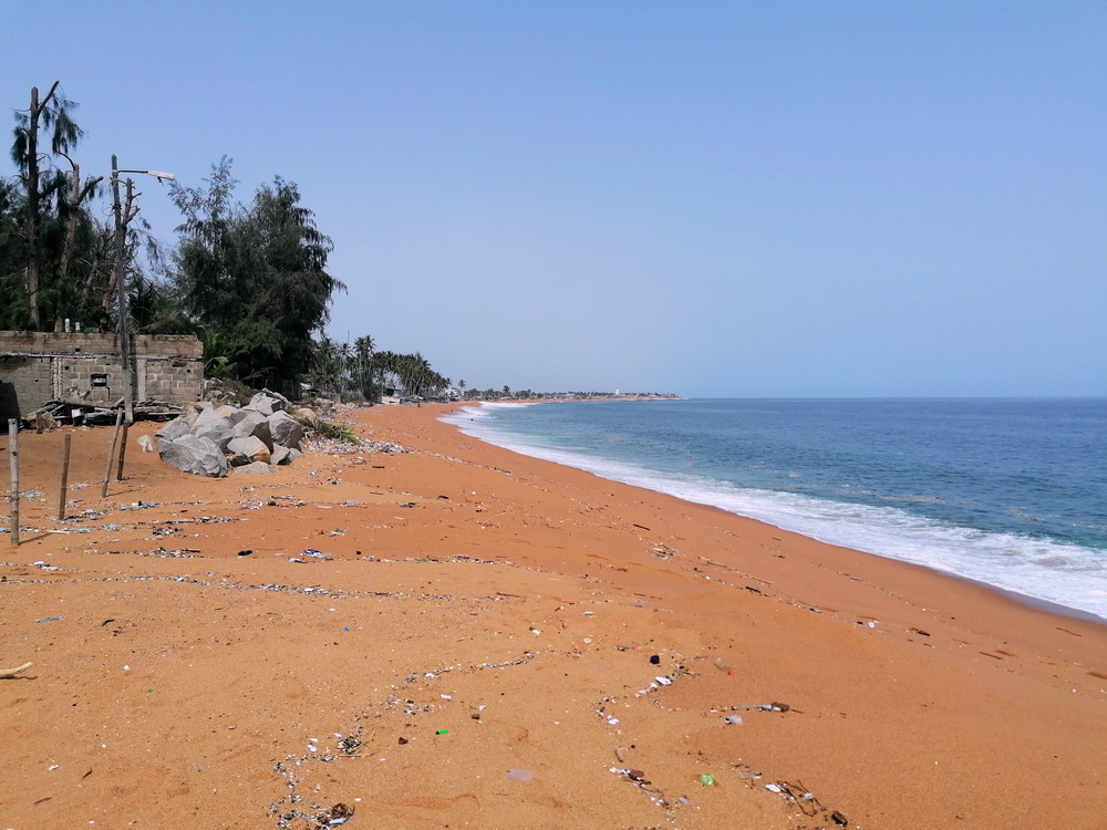 Die Wartezeit vom Vorabend schlug sich natürlich im Bierkonsum nieder, da war es praktisch, dass der Donnerstag keine Aufgaben mit sich brachte. Dauerte dann auch etwas, bis wir uns mal aus dem Zimmer lösten. Zunächst klapperten wir zwei nahe kleine Stadien in der Hoffnung auf unterklassigen Fußball ab. Der eine Ground, ein Sandplatz mit Tribüne wurde aber offensichtlich für regulären Spielbetrieb hat nicht mehr genutzt, dafür hätten auch erstmal die alten Autoreifen und dicken Steine vom Feld geräumt werden müssen. Und beim anderen Stadion fehlte das Spielfeld, dort wurde gerade saniert. Großartige Pläne für die Gestaltung des Tages hatten wir nicht geschmiedet, daher entschieden wir spontan mal nach Petit Bassam an die Küste zu fahren. Yango regelte den Transport. Die Gegend, in der wir ausstiegen sah wenig vertrauenerweckend aus, aber wir stellten uns mal der Herausforderung und fanden tatsächlich eine einfache Bar am Strand. Der Service war gut, an den durstigen Weißbroten konnte man ja auch ordentlich verdienen. Der Strand war allerdings völlig vermüllt, so krass hatte ich das noch nie gesehen, ziemlich ernüchternd. Es war offensichtlich, dass der ganze Plastikscheiß nicht achtlos dorthin geworfen, sondern angespült worden war, da kann einem wirklich Angst und Bange um unsere Meere werden. In Afrika wird aber auch einfach zu wenig Aufklärung betrieben, wie Entsorgung und Recycling zu funktionieren haben, man sieht und merkt, dass die meisten Einwohner eine zu sorglose Einstellung pflegen. Mit Einbruch der Dunkelheit fuhren wir zurück in unsere Hood, verköstigen uns mit Shawarma und Fleischspießen, bevor wir in der Bar vom Vorabend einkehrten.