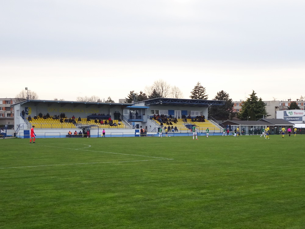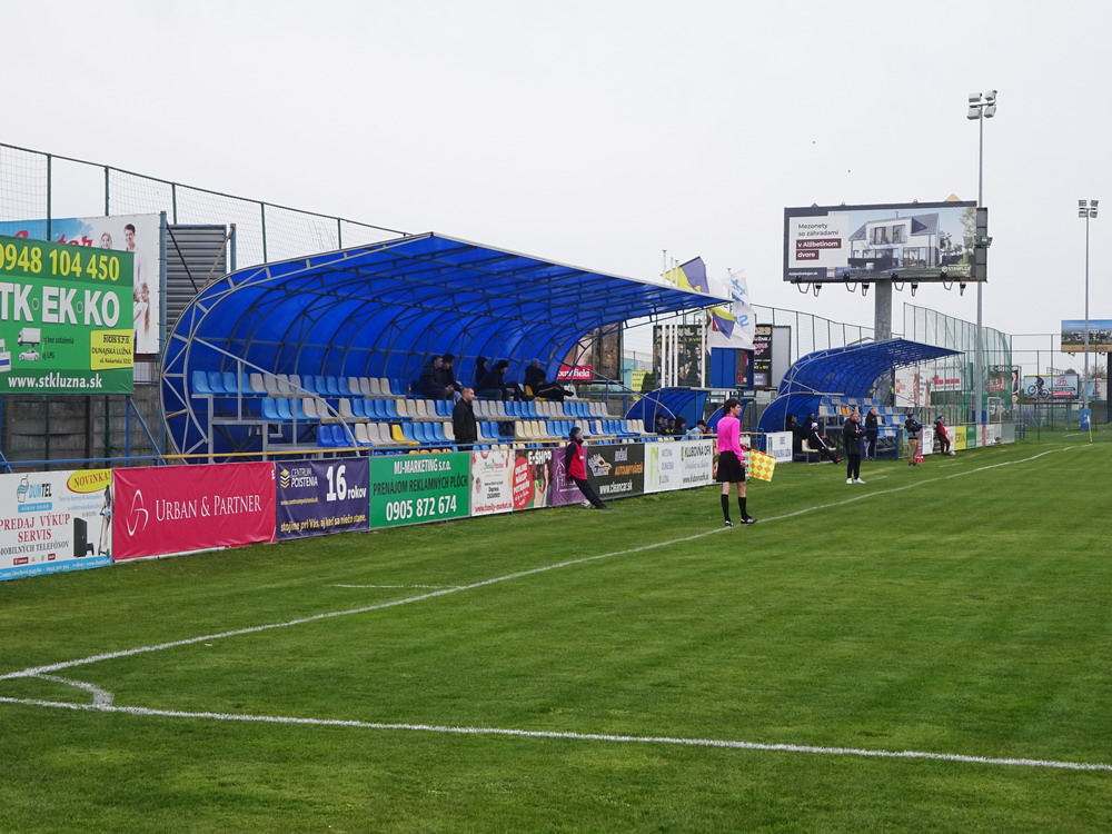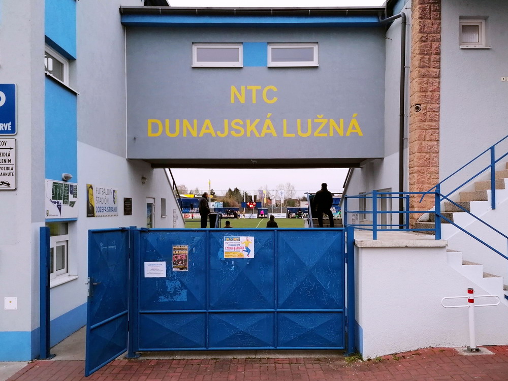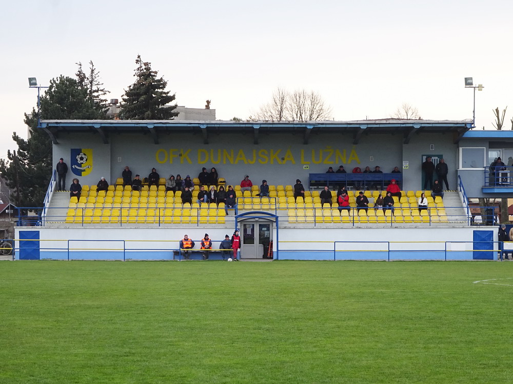 Nach Rückgabe des Mietwagens am Budapester Flughafen, brachte mich der Flixer nach Bratislava und die Regionalbahn von dort noch fünf Stationen raus nach Dunajska Luzna. Vom kleinen Bahnhof aus war es noch ein gutes Stück Fußweg, aber auf die Sekunde war ich zum Anstoß im kleinen Stadion. Der Aufwand war für ein Spiel der vierten slowakischen Liga insgesamt natürlich hoch, aber um am heutigen Tage ein Spiel sehen zu können, war es auf dem Weg nach Norden die einzig sinnvolle Option – soweit man hier diesen Begriff hier noch nutzen darf. Das Stadion zeigte sich mit zwei gemauerten Tribünen auf der einen und zwei Stahlrohr-Kunststoff-Modulen auf der anderen Seite ganz brauchbar. Auch das Spiel war erstaunlich gut anzuschauen. Fehlende Tore und der kalte Wind machten das ganze dennoch zu einer zähen Angelegenheit und ich war dankbar als endlich der Schlusspfiff ertönte. Nach dem Spiel nahm ich denselben Weg zurück nach Bratislava und von dort den Eurocity Budapest-Praha bis zum Nachtlager im tschechischen Breclav.