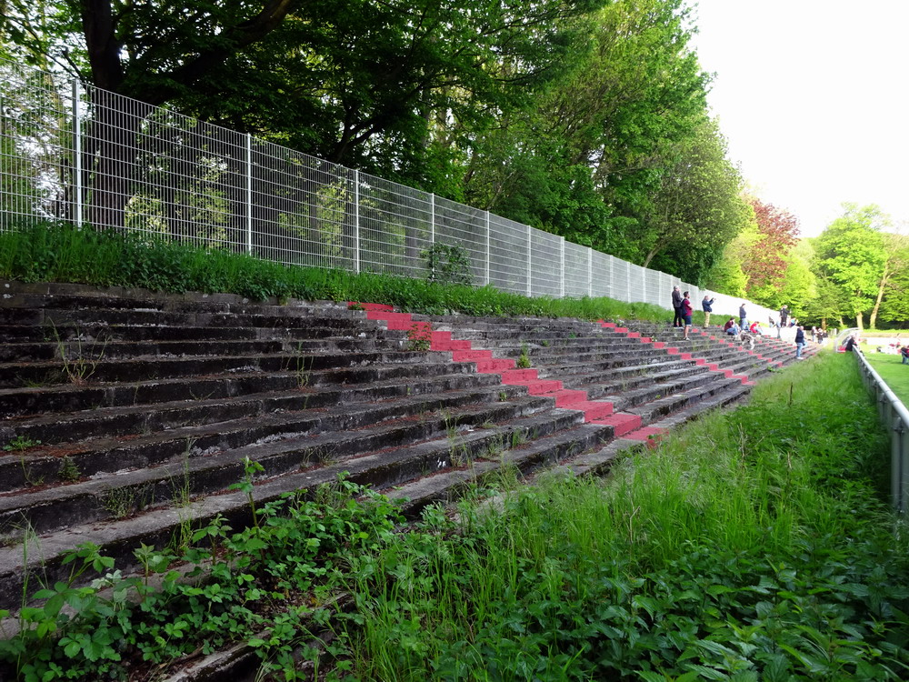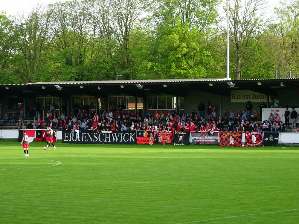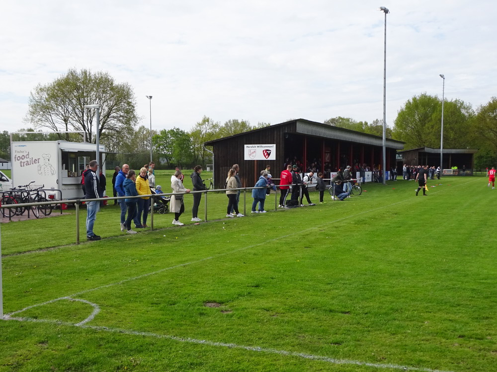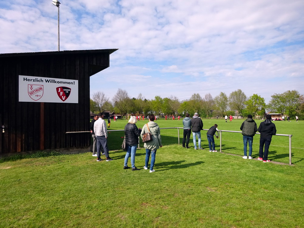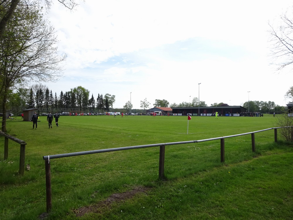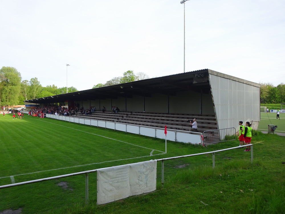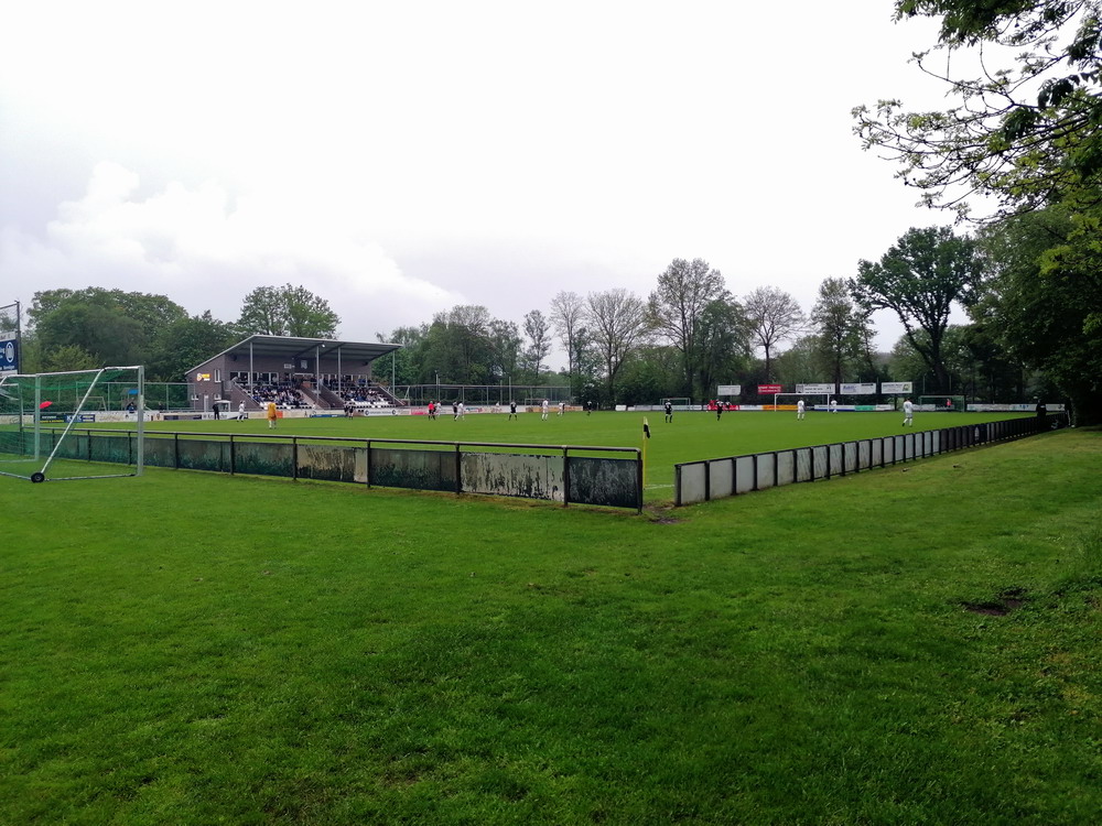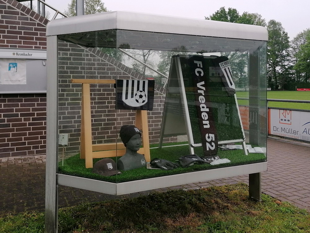 Der im Schatten des Oberligisten und unmittelbaren Platznachbarn Spvgg Vreden stehende FC 52 empfing den TuS Wüllen aus dem Kreis Ahaus. Die Gäste, erst im vergangenen Jahr aus der Bezirksliga abgestiegen, standen kurz vor dem freien Fall in die Kreisliga B. Um nach dem eh schon dünnen Strohhalm zu greifen, mussten sie drei Spieltage vor Saisonende zwingend etwas Zählbares mitnehmen. Und sie spielten auch gar nicht schlecht mit und kamen im grenzländischen Nieselregen zu einigen Chancen, die jedoch ungenutzt blieben. Die Gastgeber hatten dagegen zwar mehr Spielanteile, konnten aber keine zwingenden Szenen kreieren, so dass es torlos in die Pause ging. Unmittelbar nach dem Wechsel war es dann aber soweit und die Hausherren gingen nach einer Ecke in Führung. Der TuS kam nun auch nicht mehr zu Chancen, so dass sich die Niederlage abzeichnete und spätestens mit dem zweiten Treffer eine Viertelstunde vor Schluss besiegelt war, ebenso wie der daraus resultierende Abstieg. Der Hauptplatz des FC 52 verfügt über eine recht neue und große Tribüne mit integriertem Kabinen- und Sozialtrakt.