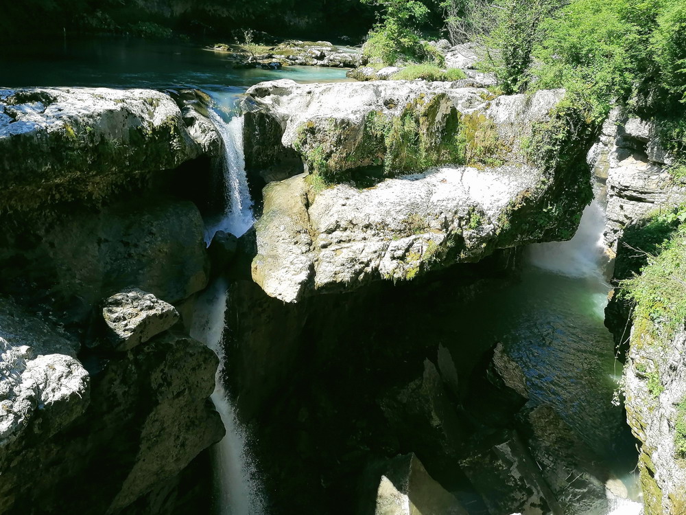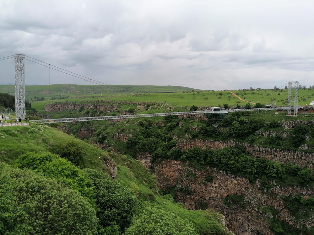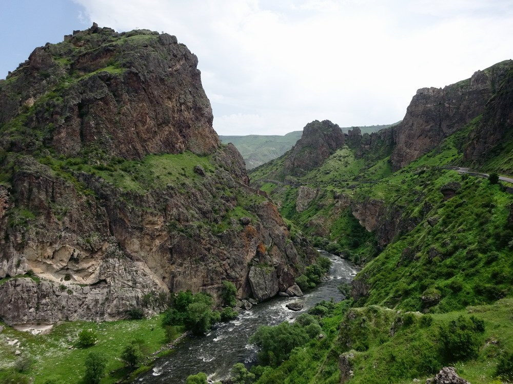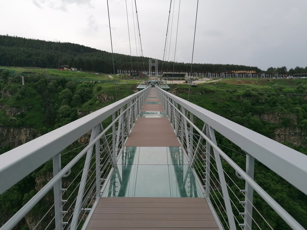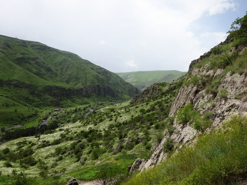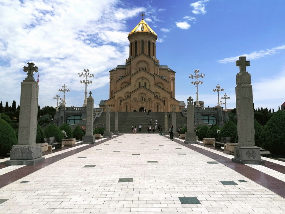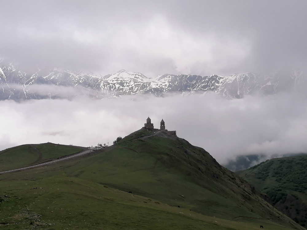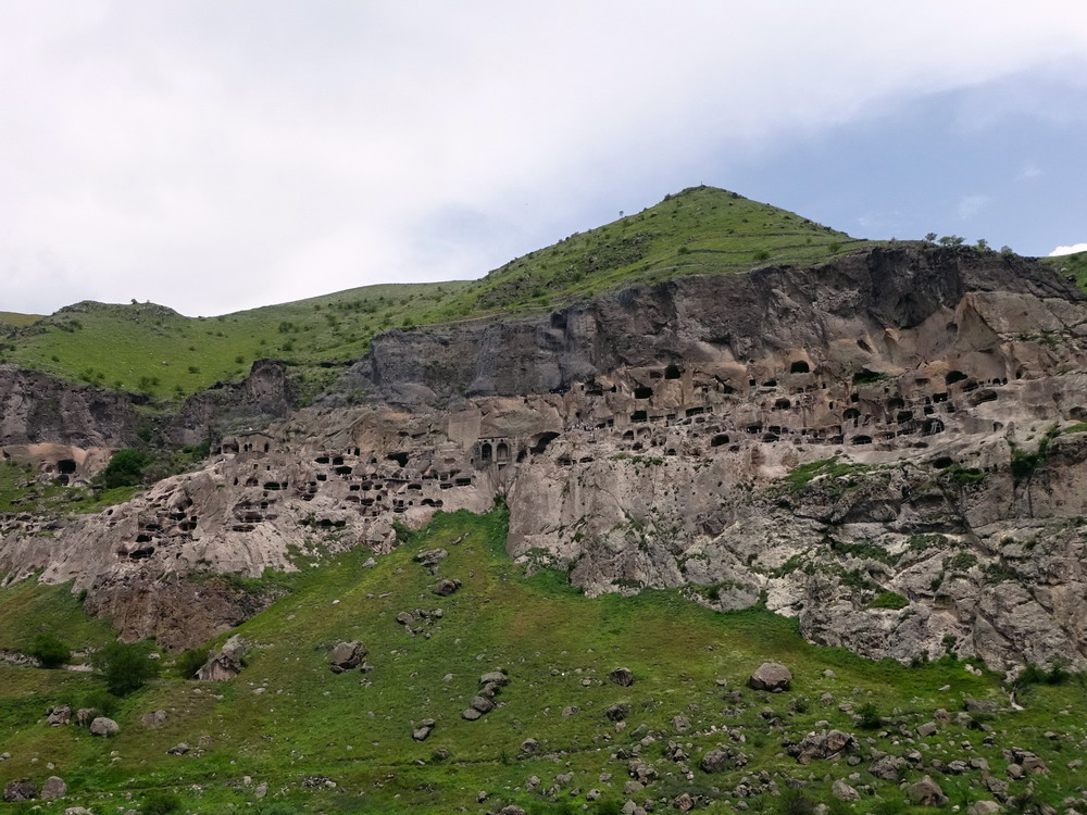 Weiter ging die Reise zunächst über die Georgische Heerstraße in den Norden des Landes ins nur noch 20 Kilometer von der russischen Grenze entfernte, auf 1700 Metern Höhe gelegene Stepantsminda. Um diesen Ort zu erreichen muss man den Dschwari-Pass auf fast 2400 Metern überwinden. Lange wird das nicht mehr notwendig sein, denn aktuell wird an einer Umgehung mit mehreren Tunneln und Brücken gearbeitet. Auf dem Weg machten wir Halt am Denkmal der russisch-georgischen Freundschaft, mit der es nicht mehr weit her sein dürfte, wenn ich die Meinungen des überwiegenden Teils der Georgier richtig deute. Stepantsminda war damals das einzige Ziel außerhalb der Hauptstadt, welches ich besuchte, und ich hatte es gut in Erinnerung. Anziehungspunkt dieser Region ist die Kirche ‚Gergetis Sameba‘, die auf einem Bergvorsprung noch einmal knapp 500 Meter höher liegt. Hier zeigte sich schon die Entwicklung, die Georgien erlebt. Vor zehn Jahren musste man sich unten im Ort noch in einen Jeep einmieten, um die Kirche über holprige Schotterwege zu erreichen, oder diese erwandern. Heute führt eine geteerte Straße auf den Berg hinauf. Während sich mir damals hinter der Kirche das wunderbare Bergpanorama bot, war jenes dieses Mal durch tiefhängende Wolken versperrt. Aber auch dieser Anblick hatte seinen Reiz. Nach Übernachtung in Stepantsminda schraubten wir uns über die Serpentinen zurück nach unten in Richtung Gori. Gori – da war doch was… es ist der Geburtsort von Iosseb Bessarionis dse Dshughashvili. Besser bekannt ist der Mann als Josef Stalin und unmittelbar neben seinem unscheinbaren Geburtshaus, das zum Schutz überdacht wurde, steht ein pompöses Museum, welches sein Leben und Wirken erklärt. Der persönliche Eisenbahnwagen des Stählernen hat auch Platz auf dem Gelände gefunden. Weiter ging es ins Nachtquartier nach Martvili, wo wir am nächsten Morgen zunächst den kleinen aber sehenswerten Canyon besuchten, in den sich das Flüsschen Abasha eingegraben hat, bevor wir wieder ins Gebirge hinauffuhren.