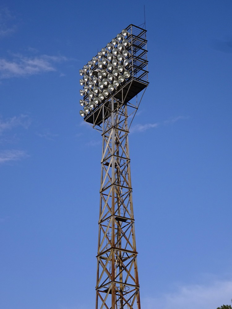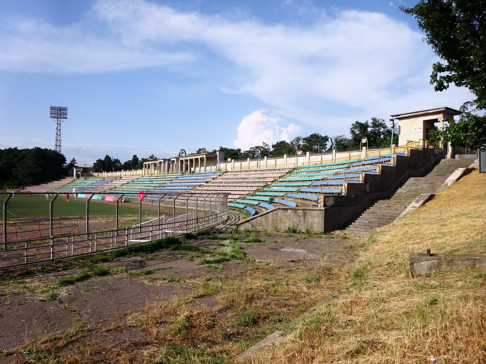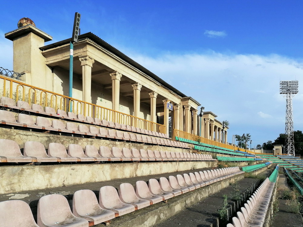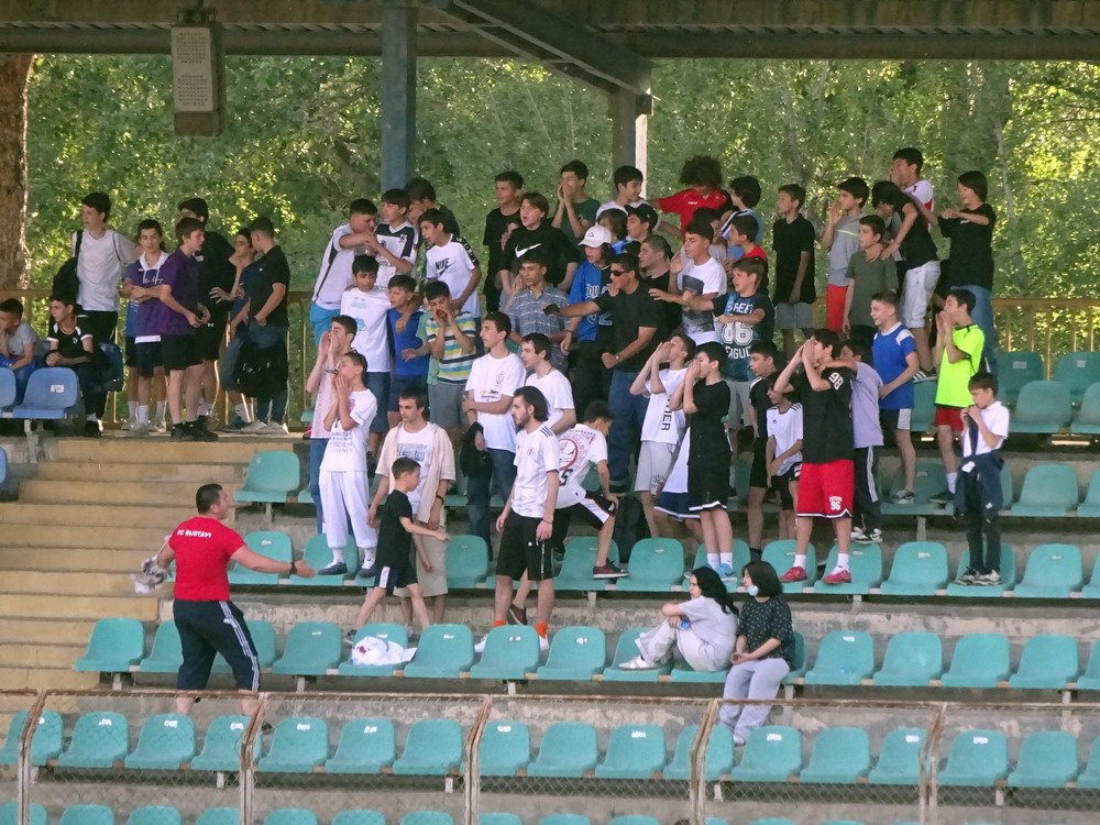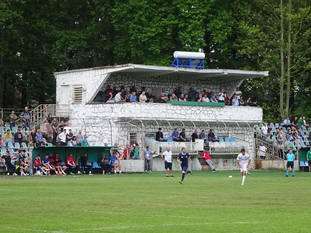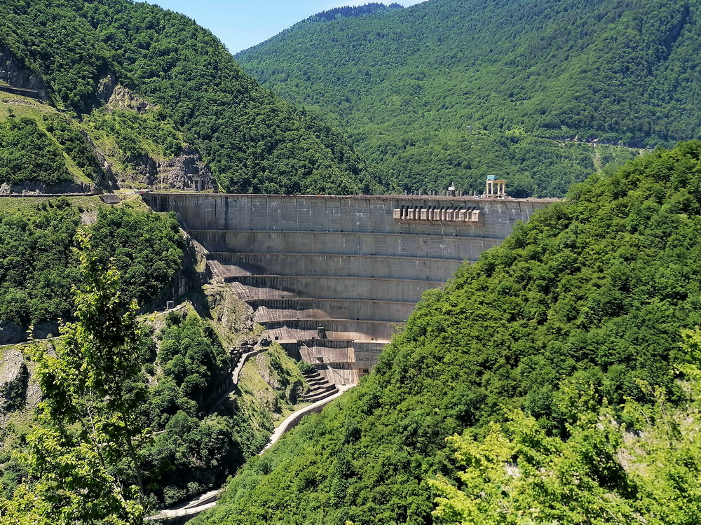 Eigentlich hätte es von Ushguli über den 2.600 Meter hohen Zagari-Pass auf anderem Wege zurück in Richtung Kutaisi gehen sollen, aber die Sache war nicht zu Ende gedacht. Die Passstraße ist natürlich unbefestigt und vorausschauend hatten wir einen Subaru-Crossover-SUV mit guter Bodenfreiheit gebucht, aber der Juni ist für solche Abenteuer einfach noch zu früh und das hätte mir auch klar sein müssen. Schmelzwasser und Regenfälle machen den Pass ohne gute Offroadbereifung unbefahrbar. Unser allradbetriebener Japaner kletterte zwar tapfer nach Ushguli hinauf, aber wir folgten dann dem Rat der Einheimischen, die uns mit Blick auf die Bereifung vom geplanten Abenteuer abrieten. Also nahmen wir nach der zweiten Nacht in Mestia denselben Weg zurück, der ja auch sehenswert genug ist, um erneut befahren zu werden. Man passiert auch den Enguri-Staudamm, die mit 271 Metern Höhe aktuell siebtgrößten Talsperre weltweit. Ziel war Khobi, wo am heutigen Samstag um Zweitliga-Punkte gekickt wurde. Das Stadion ist Traum in verrostetem Stahl, leider wurde aber vor einigen Jahren die klapprige Tribüne in einer der Kurven abgerissen, die andere verfügte seit jeher nicht über Ausbau. Dennoch bleibt das Rund besonders. Es regnete bei Spielbeginn, daher suchten wir in diesem abgeranzten, bis auf einige Ehrenplätze unüberdachten Stadion nach einem Wetterschutz und fanden diesen neben ein paar Einheimischen auf einem Stahlbetongestell, das früher einmal die Anzeigetafel war. Ein paar hundert Leute waren am Spielgeschehen interessiert, vielleicht zwei Dutzend unterstützten das Team auch akustisch mit einer Trommel und einigen Vuvuzelas. Spielerisch war es ganz okay und die Gastgeber schafften es, den Gegner aus Tbilisi beinahe 90 Minuten in die Defensive zu drängen und reichlich Chancen herauszuspielen, um dann am Ende doch zu unterliegen, da das Gäste-Team seine einzige Chance zu nutzen wusste. Dabei war diese nicht einmal selbst herausgespielt. Ein zu kurz geratener Befreiungsschlag des Torwarts wurde etwa 35 bis 40 Mieter vor dem Tor gestoppt und mit einem langen Hub über den unglücklichen Schnappnix in die Maschen gehieft. So kann’s gehen.