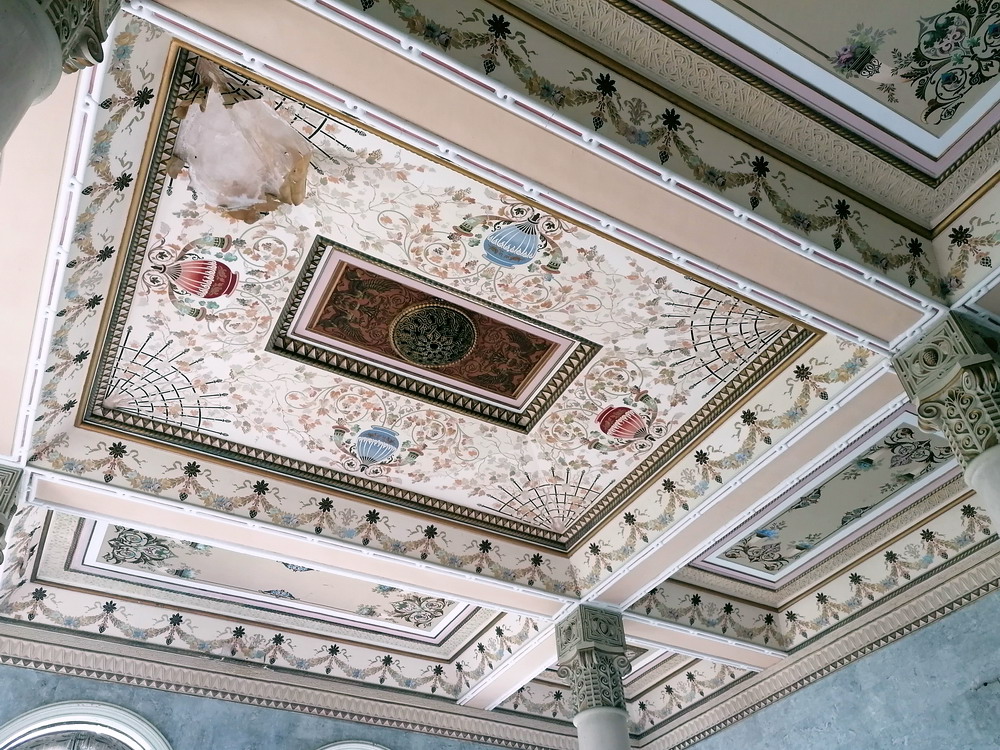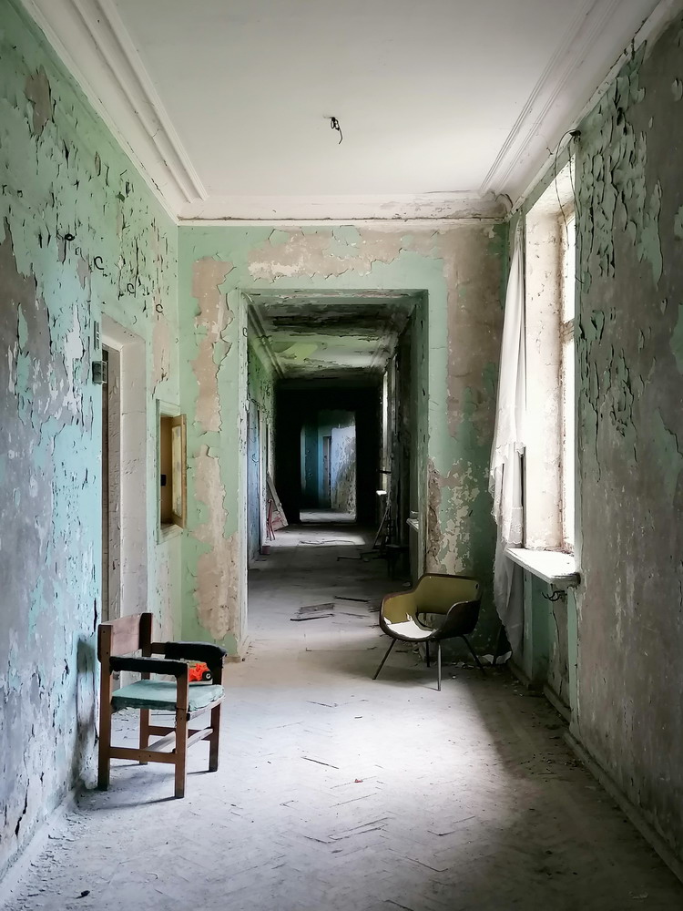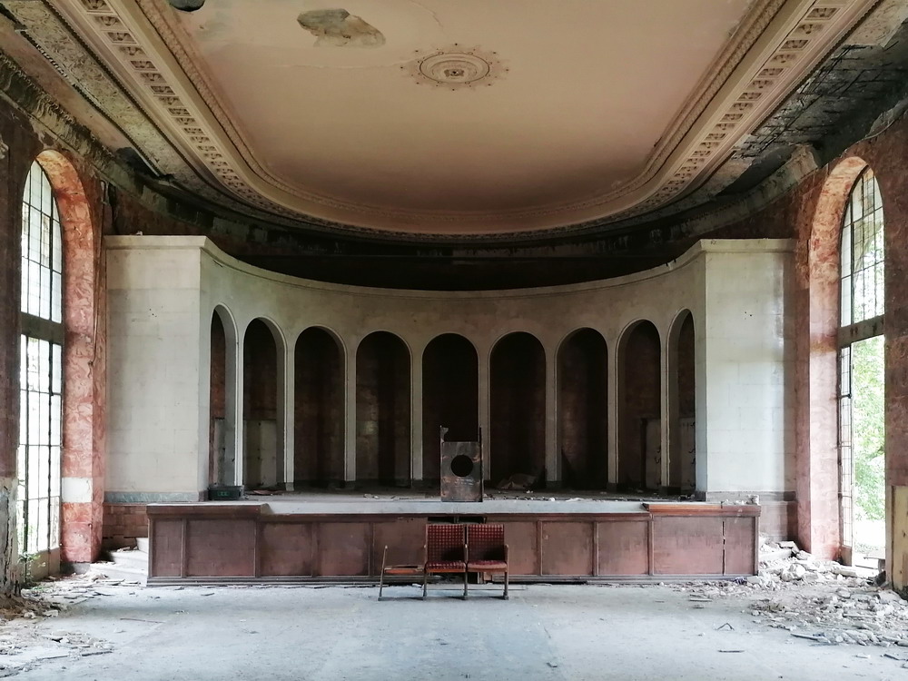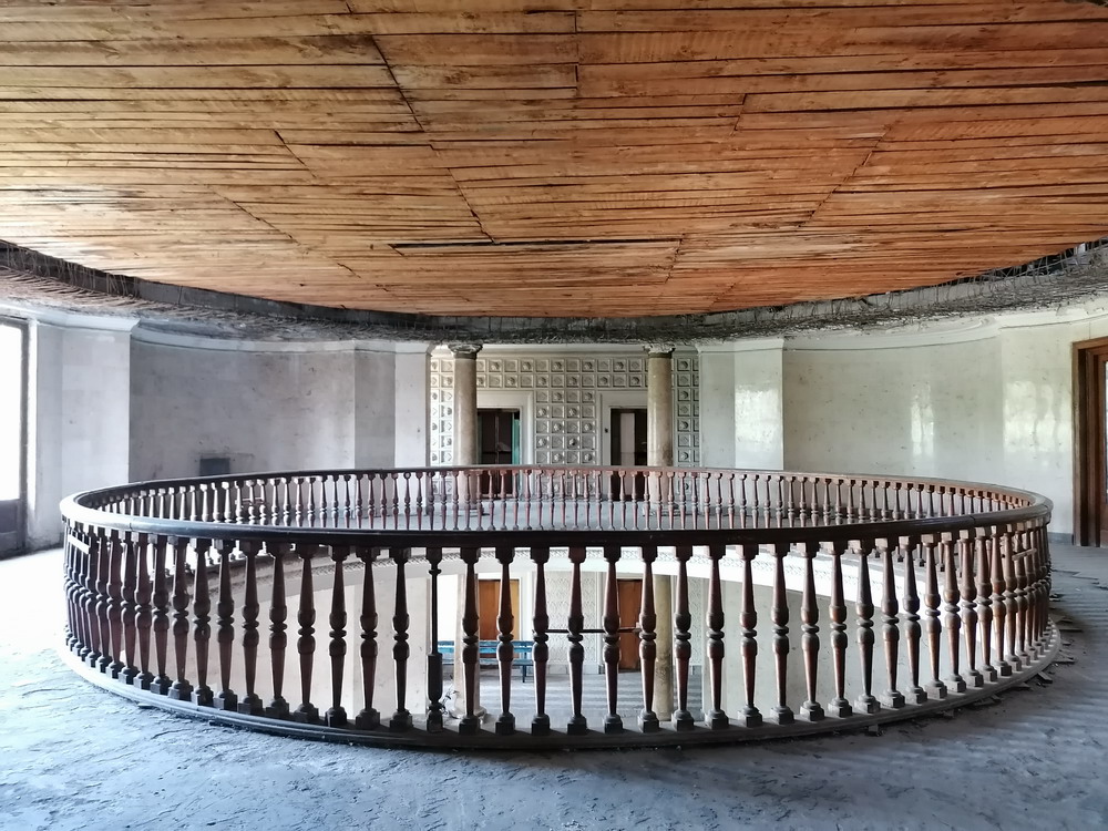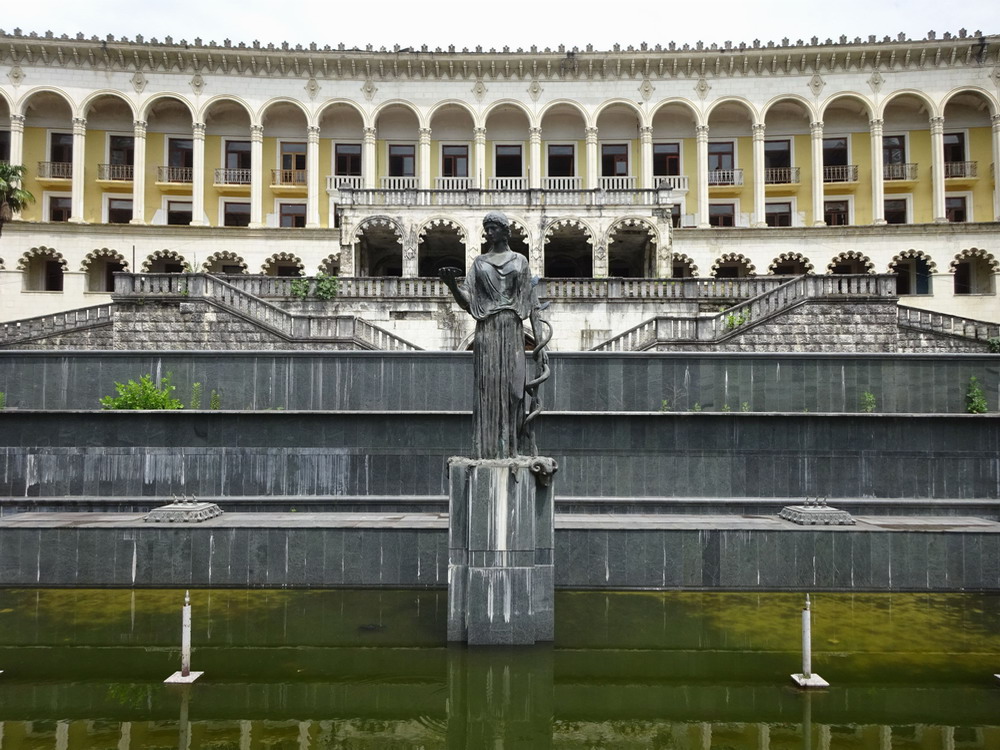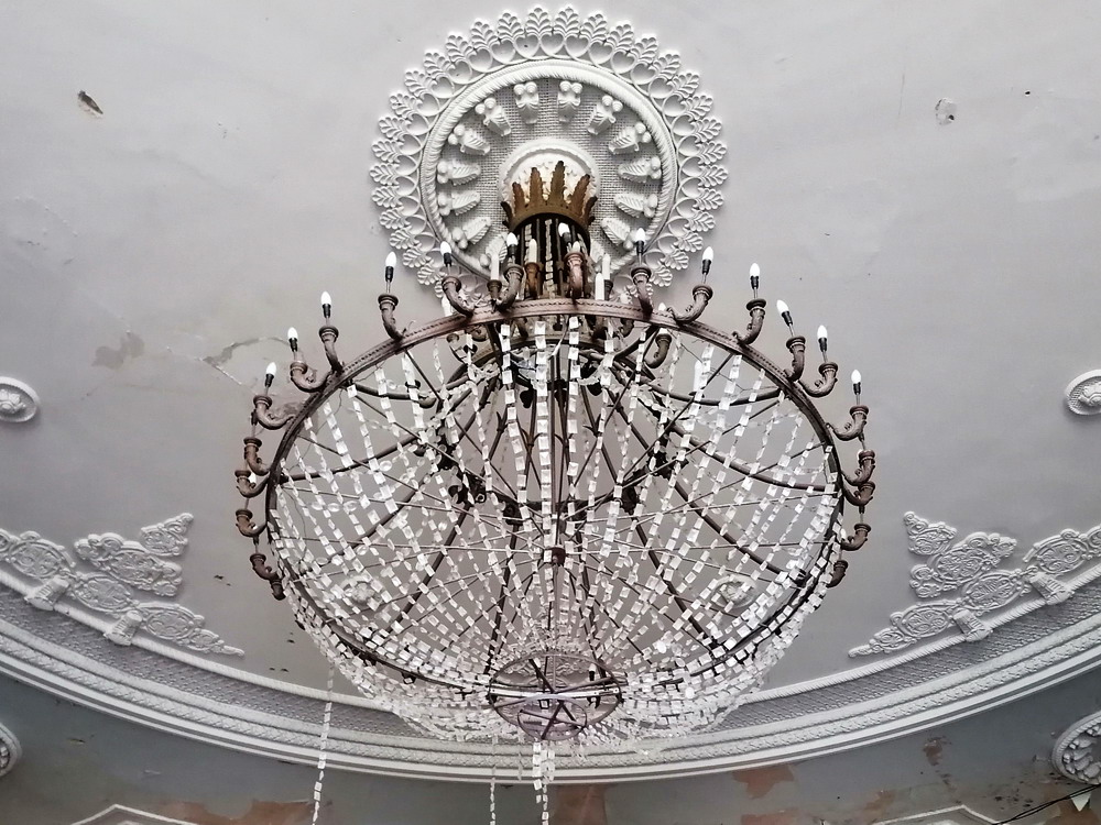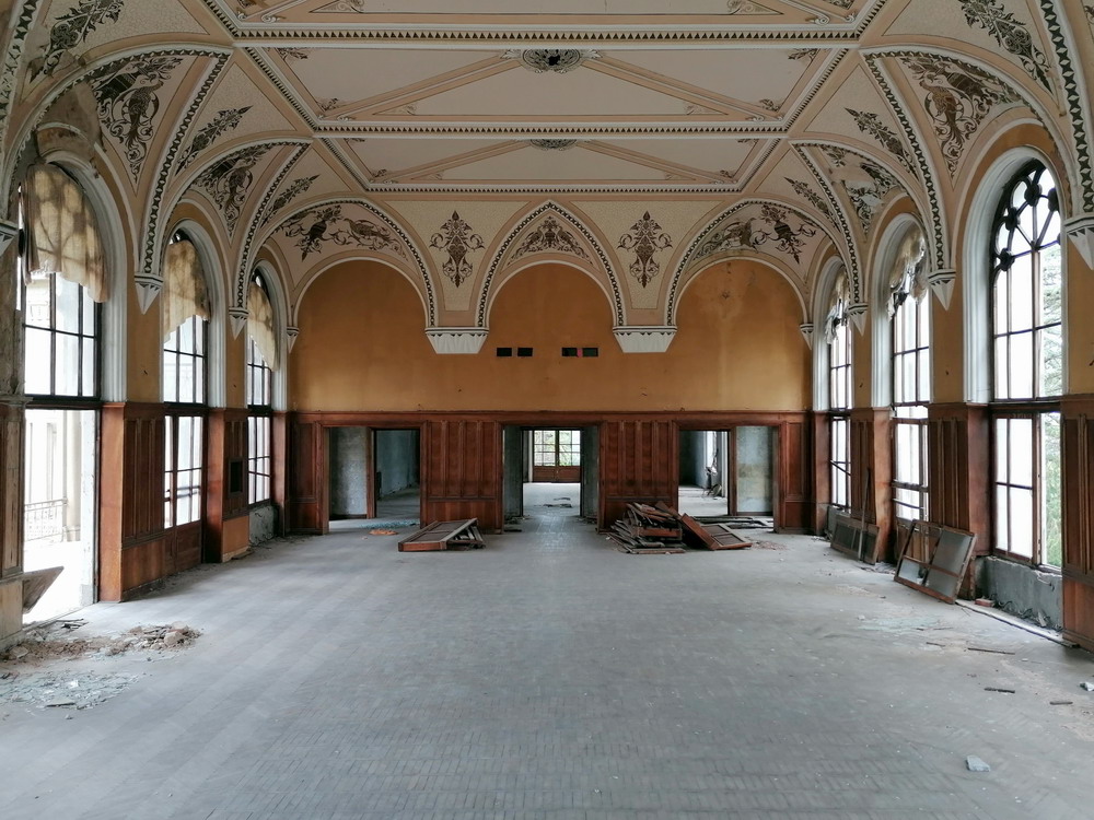 Für den letzten vollen Tag hatten wir uns noch einen ganz speziellen Ort aufgehoben. Wir fuhren nach Zqaltubo, ehemals einer der bedeutendsten Kurorte der Sowjetunion. Mit dem Niedergang dieses erzwungenen Staaten-Konstruktes setzte auch in Zqaltubo der Verfall ein und es entwickelte sich über die Jahre ein einzigartiger riesiger Lost Place. Ein gutes Dutzend Sanatorien, einige einfache Hotels und Kureinrichtungen gammeln seitdem weitestgehend unberührt vor sich hin. Einige der Sanatorien wurden durch Wohnungslose okkupiert, viele davon Geflüchtete aus den abtrünnigen Landesteilen Abchasien und Südossetien, denen von der georgischen Regierung Wohnungen in Aussicht gestellt, diese aber nie verwirklicht wurden. Die Stadt soll als Kurort aber wiederbelebt werden. Einige der alten Prachtbauten wurden bereits an Investoren veräußert, es tut sich allerdings bisher wenig. In der weitläufigen Kurpark-Anlage sind zwei der Bäder nach wie vor aktiv. Sanierungsarbeiten an den Heilanstalten sind lediglich am Sanatorium Tbilisi im Gange, andere aber bereits eingezäunt, was deren Besichtigung etwas schwieriger gestaltete. Aber letztlich geht es ja immer irgendwie, natürlich unter Abwägung des Risikos. Wir schauten uns das prächtige Sanatorium Shakhtiori, das Gelati, Metalurgist, Medea und Imereti an. Teilweise mussten selbsternannte Wärter – die einen freundlich, andere weniger freundlich – umschifft werden. Außerdem mühten wir uns, in den ‚bewohnten‘ Häusern den dort unter teils zweifelhaften Bedingungen hausenden Personen ihre Ruhe zu lassen und mieden diese Bereiche, einerseits um unnötigen Ärger zu vermeiden, aber viel mehr um diesen vom Schicksal gestraften Menschen gegenüber Respekt zu zeigen. Einrichtungsgegenstände sind in den Gebäuden nicht viele zu finden, aber diese bieten dennoch fantastische Motive mit alten Speise- und Konzertsälen, Theatern, gemusterten Tapeten, völlig intakten Stuckdecken. Glanzpunkt war der mächtige Kronleuchter in der Empfangshalle des Sanatorium Metalurgist. Allein ist man in den wenigsten Häusern. Man trifft immer wieder mal auf Gleichgesinnte, diese Begegnungen sind zum Glück aber doch selten, so dass die mystisch angehauchte Atmosphäre erhalten bleibt.