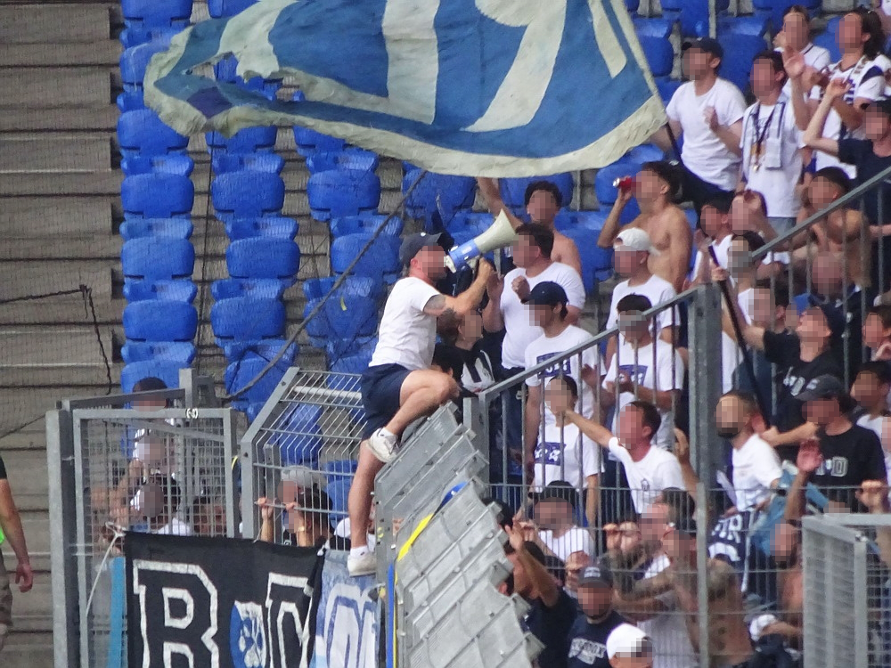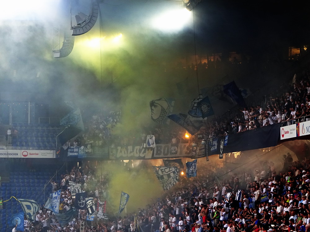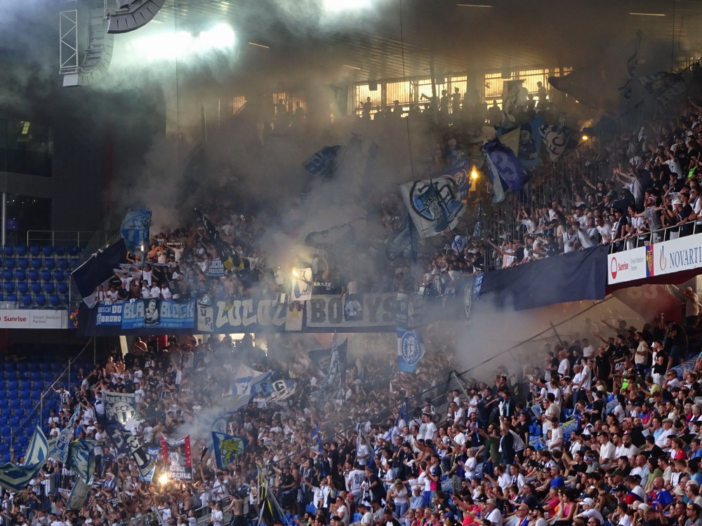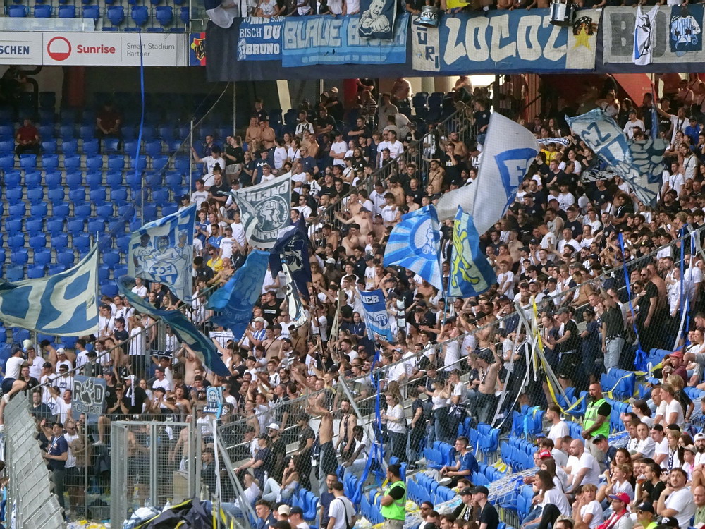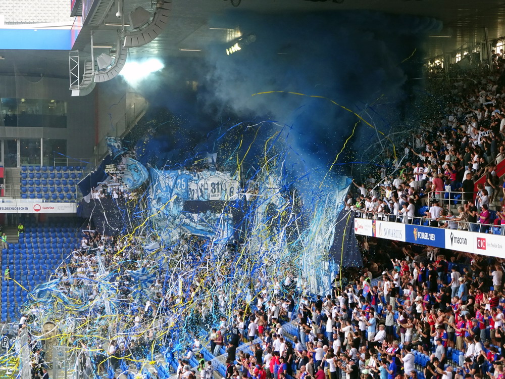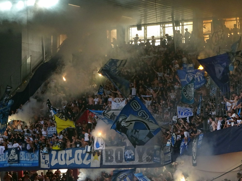 Beide Vereine eint das Schicksal der Insolvenz im Laufe des vergangenen Jahrzehnts. Während Rapid diese im Rahmen eines ordentlichen Verfahrens meisterte, wurde Otelul aufgelöst und von seinen Anhängern neu gegründet, weshalb diese dann auch namentlich in die neue Bezeichnung des Clubs aufgenommen wurden. Die Szene des Eisenbahnervereins ist die vielleicht beste Rumäniens und präsentiert sich meist lautstark und reisefreudig. So war heute der Gästeblock auch vollgepackt bis auf den letzten Platz. Gut 1.500 Rapidler werden es gewesen sein, die danach einen 1A-Support aufs Brett knallten, jederzeit die Stimmungshoheit hatten und ihre Kurve mit unzähligen teils recht großen Schwenk-Lappen in ein richtig schönes Fahnenmeer verwandelten. Für das Sternchen auf der Bestnote fehlten eigentlich nur noch ein paar Pyro-Elemente. Diese waren in etwas spärlicher Anzahl dagegen in der Heim-Kurve zu sehen, die sich an einer kleinen Choreografie versuchte. Ohne respektlos zu sein, wird es aber noch ein paar Übungseinheiten brauchen, bis das dann auch mal gut aussieht. Auch akustisch gab es noch reichlich Luft nach oben. Laut wurde es eigentlich nur, wenn die Masse mitgezogen wurde, was aber nur bei einfachen „Otelul“-Rufen gelang. Es wirkte irgendwie, als ob die Kurve ihr Potential nicht komplett abrufen konnte.