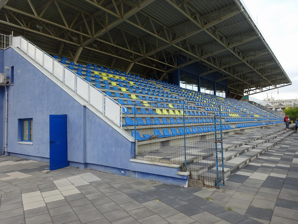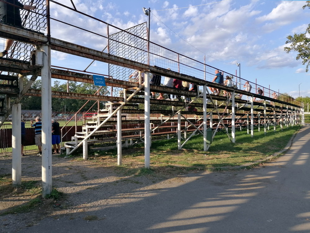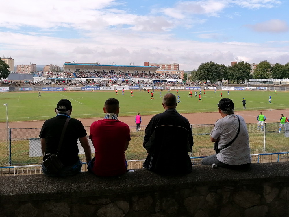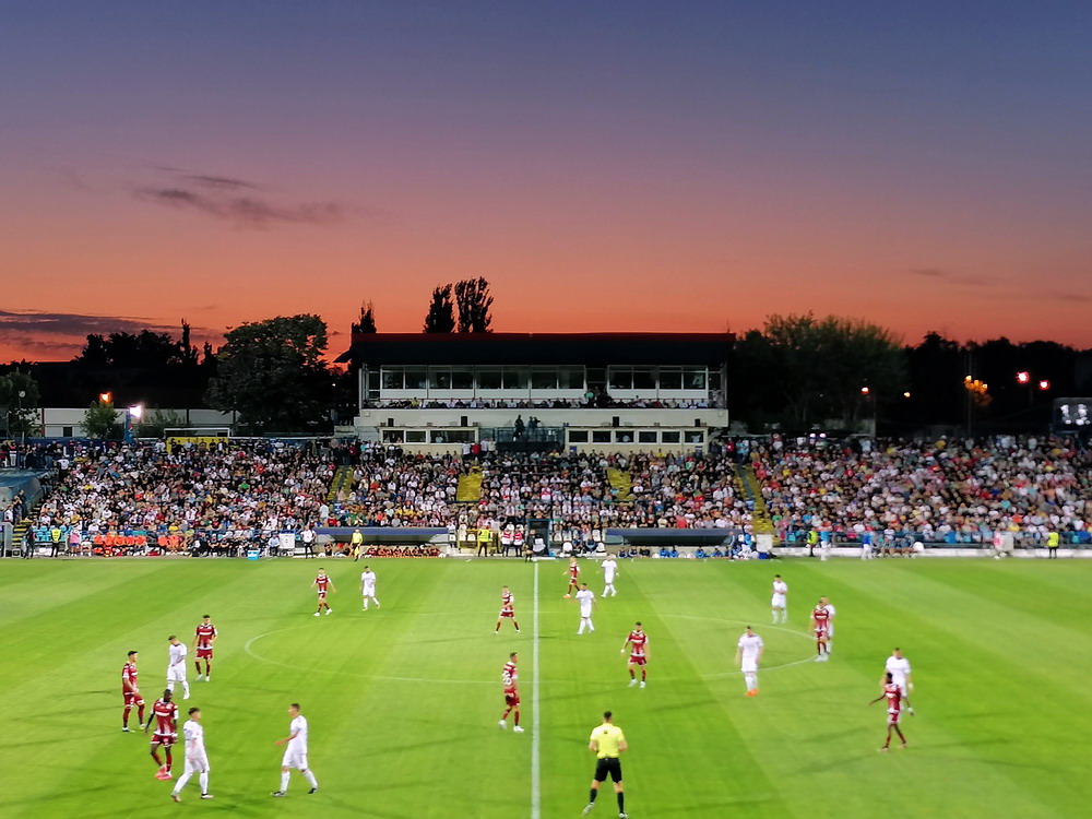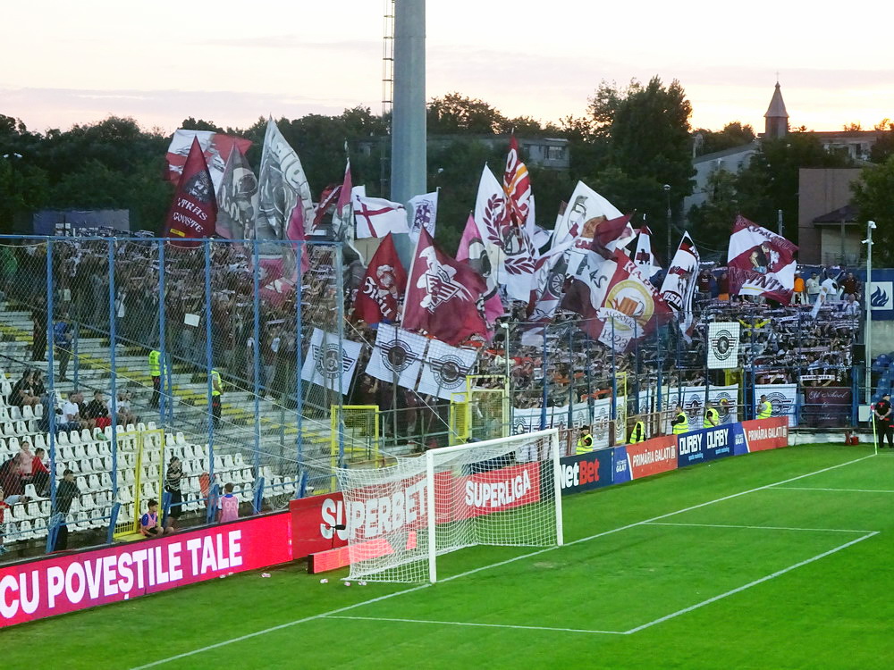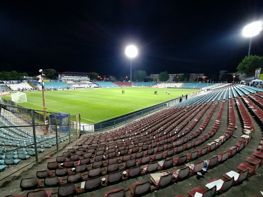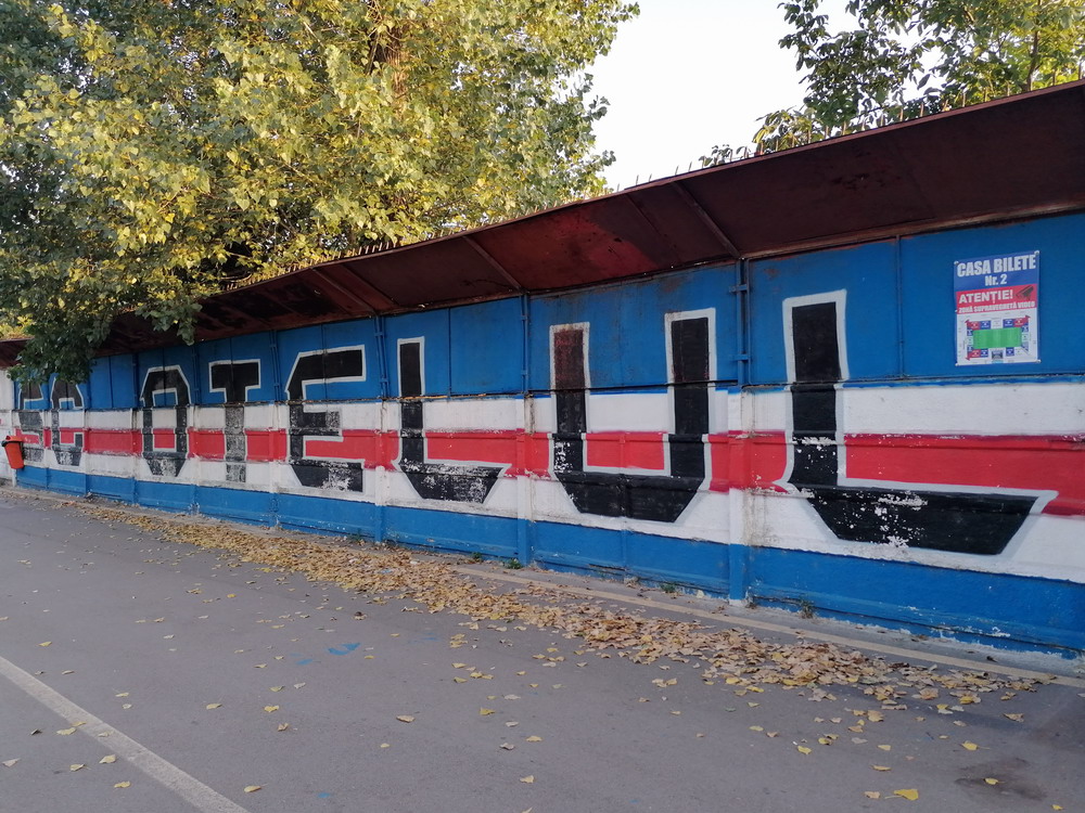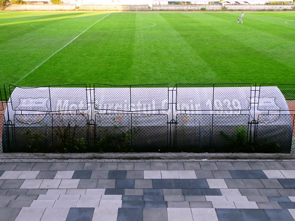 Die Gastgeber hatten erst zu dieser Saison den Wiederaufstieg gefeiert und eine gewisse Euphorie war durchaus spürbar, auch wenn am neunten Spieltag alle noch auf den ersten Saisonsieg warteten. Absurderweise stand aber auch erst eine Niederlage zu Buche, es wurden in neun Spielen tatsächlich acht Punkteteilungen erzielt – eine seltene Remis-Serie, die auch der glorreiche RWE vor einigen Jahren mal geschafft hat. Die Gäste waren der Favorit in der Partie, dem Treffer näher waren aber lange Zeit die Eisenmänner, die mit viel Herzblut und Engagement alles reinwarfen, was sie hatten. Den einzigen Treffer des Spiels erzielten dennoch die Gäste nach einer guten Stunde Spielzeit. Nachdem der Ball schon lange im Netz lag wurde dem Tor nach Rücksprache zwischen dem Referee und seinem Assistenten und letztlich finaler Bestätigung durch den Videoassistenten aber zurecht die Gültigkeit versagt. Auch das finale Aufbäumen der nun deutlich gefährlicheren Eisenbahner blieb unbelohnt und das Spiel wurde mit dem unattraktivsten aller Ergebnisse abgepfiffen. Das ‚Stadionul Otelul‘ ist noch eine der wenigen alten, nicht modernisierten oder neu erbauten Spielstätten der höchsten Liga Rumäniens. Ein schützendes Dach sucht man bis auf wenige Plätze auf der Haupttribüne ebenso vergebens wie fest erbaute Catering-Stände oder vernünftige sanitäre Anlagen. Diese fehlen sogar gänzlich und stattdessen übernehmen mobile Toilettenhäuser die undankbare Aufgabe. Aber irgendwie macht das den Spielbesuch ja nur authentisch.