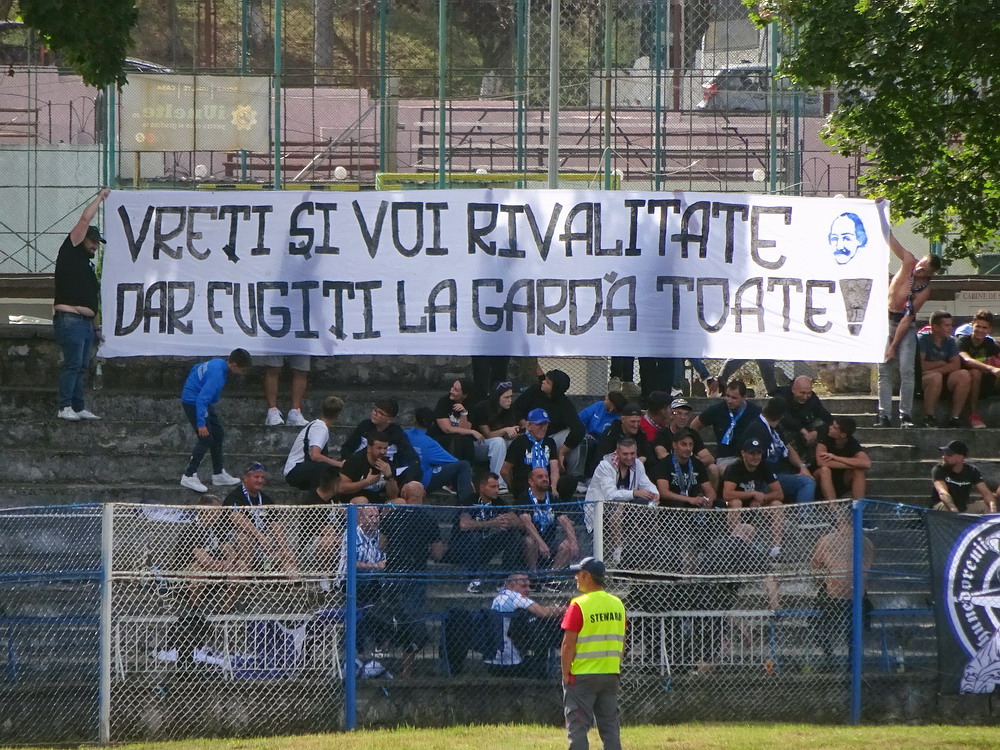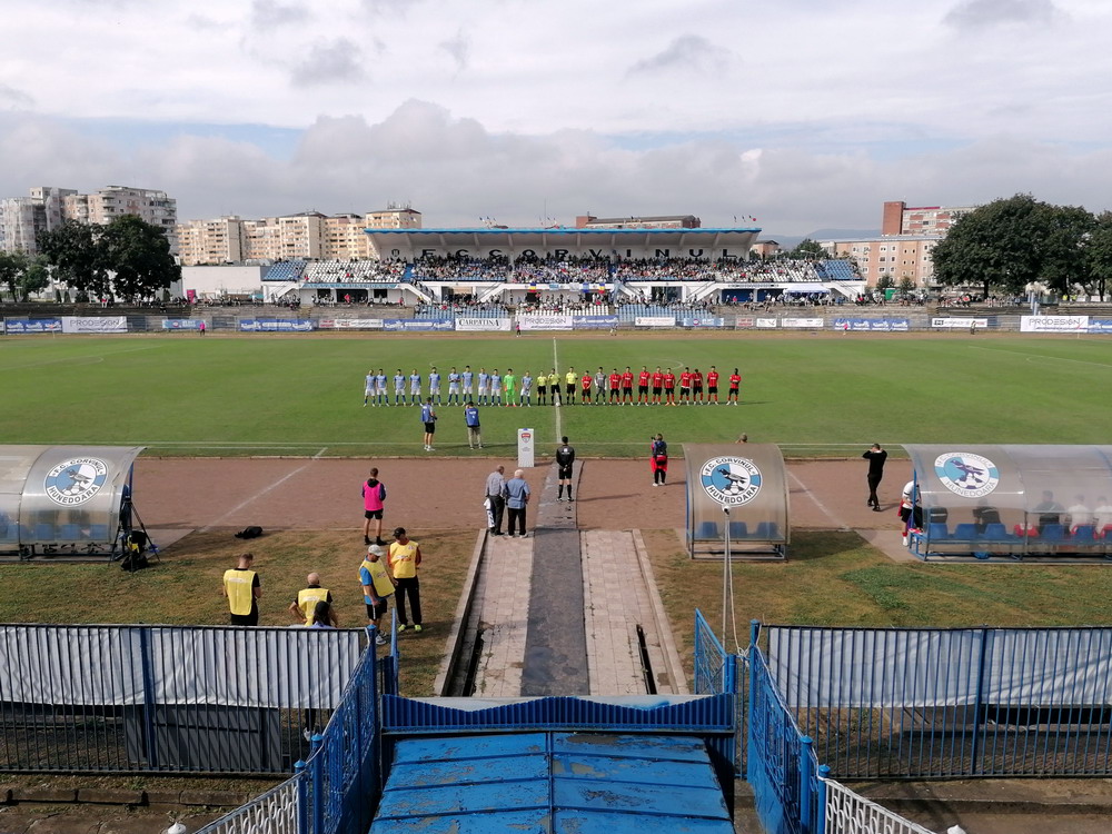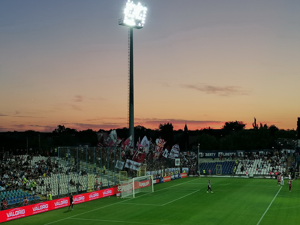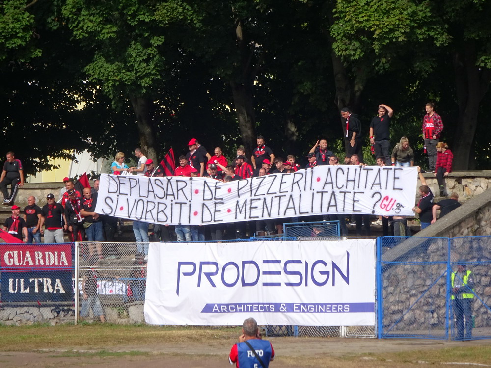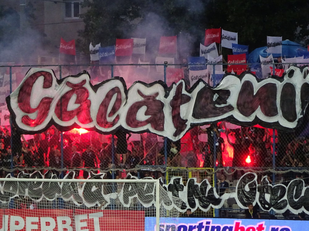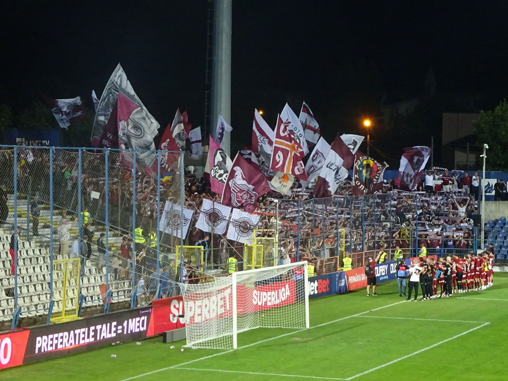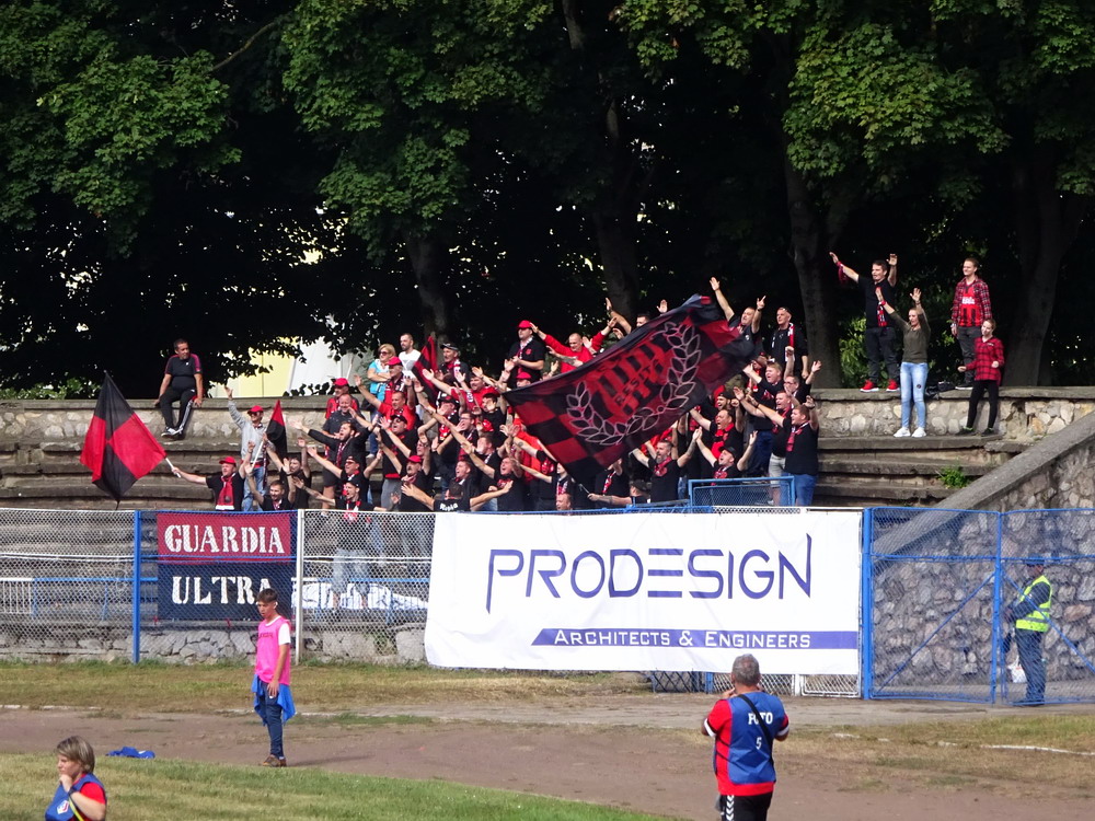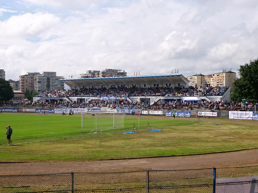 Die Gastgeber hatten erst zu dieser Saison den Wiederaufstieg gefeiert und eine gewisse Euphorie war durchaus spürbar, auch wenn am neunten Spieltag alle noch auf den ersten Saisonsieg warteten. Absurderweise stand aber auch erst eine Niederlage zu Buche, es wurden in neun Spielen tatsächlich acht Punkteteilungen erzielt – eine seltene Remis-Serie, die auch der glorreiche RWE vor einigen Jahren mal geschafft hat. Die Gäste waren der Favorit in der Partie, dem Treffer näher waren aber lange Zeit die Eisenmänner, die mit viel Herzblut und Engagement alles reinwarfen, was sie hatten. Den einzigen Treffer des Spiels erzielten dennoch die Gäste nach einer guten Stunde Spielzeit. Nachdem der Ball schon lange im Netz lag wurde dem Tor nach Rücksprache zwischen dem Referee und seinem Assistenten und letztlich finaler Bestätigung durch den Videoassistenten aber zurecht die Gültigkeit versagt. Auch das finale Aufbäumen der nun deutlich gefährlicheren Eisenbahner blieb unbelohnt und das Spiel wurde mit dem unattraktivsten aller Ergebnisse abgepfiffen. Das ‚Stadionul Otelul‘ ist noch eine der wenigen alten, nicht modernisierten oder neu erbauten Spielstätten der höchsten Liga Rumäniens. Ein schützendes Dach sucht man bis auf wenige Plätze auf der Haupttribüne ebenso vergebens wie fest erbaute Catering-Stände oder vernünftige sanitäre Anlagen. Diese fehlen sogar gänzlich und stattdessen übernehmen mobile Toilettenhäuser die undankbare Aufgabe. Aber irgendwie macht das den Spielbesuch ja nur authentisch.