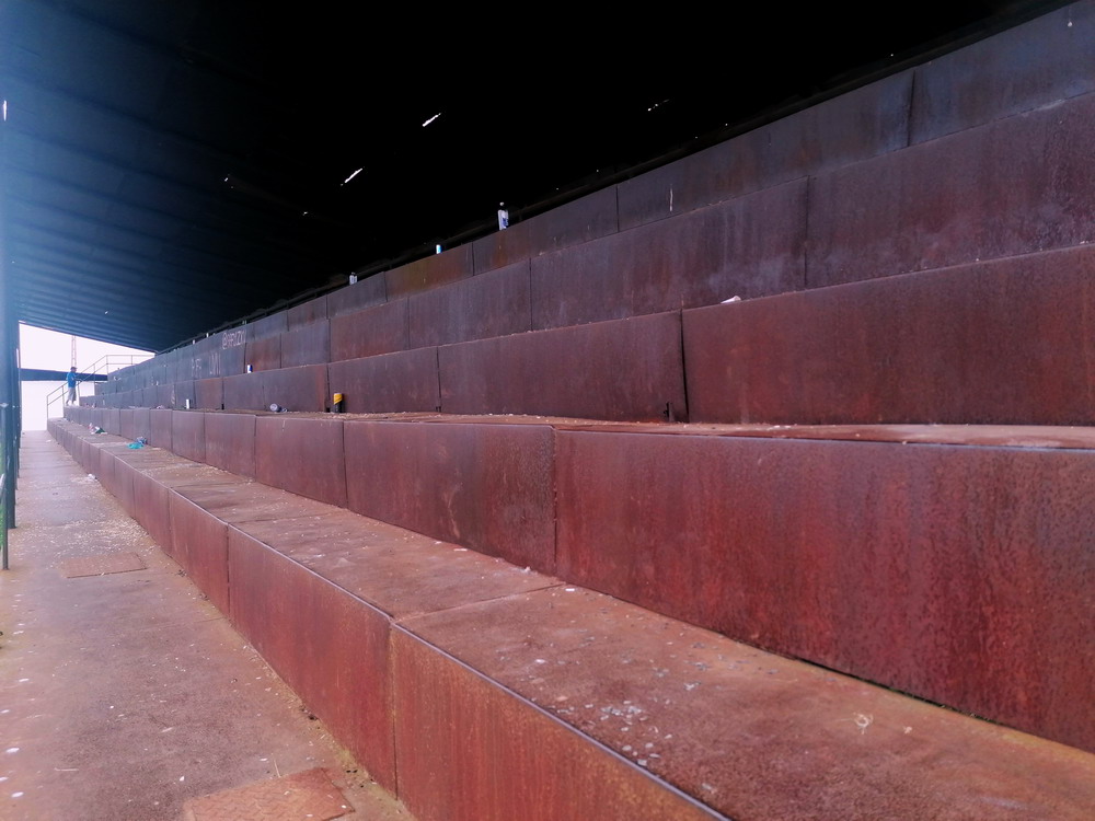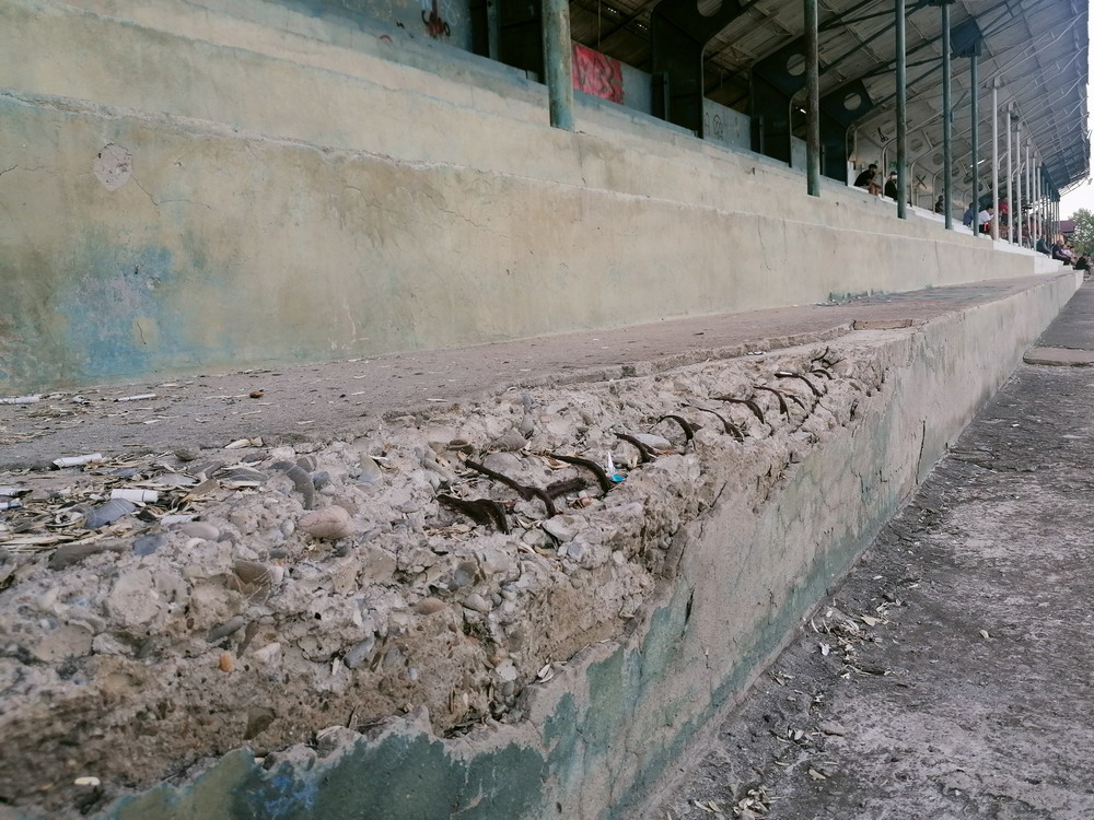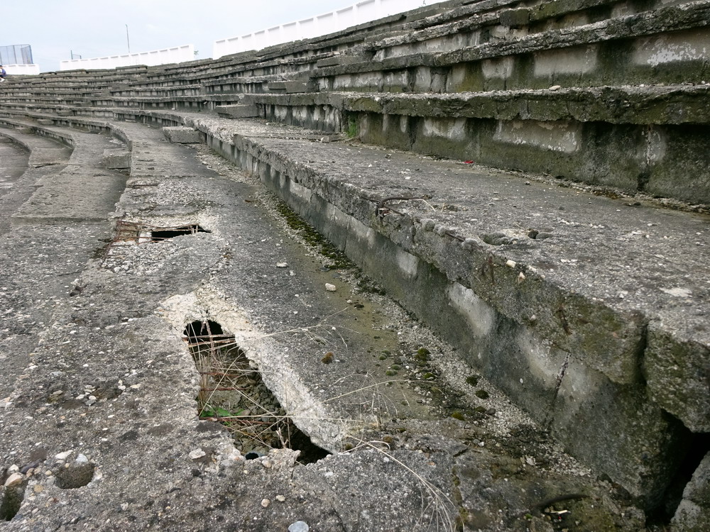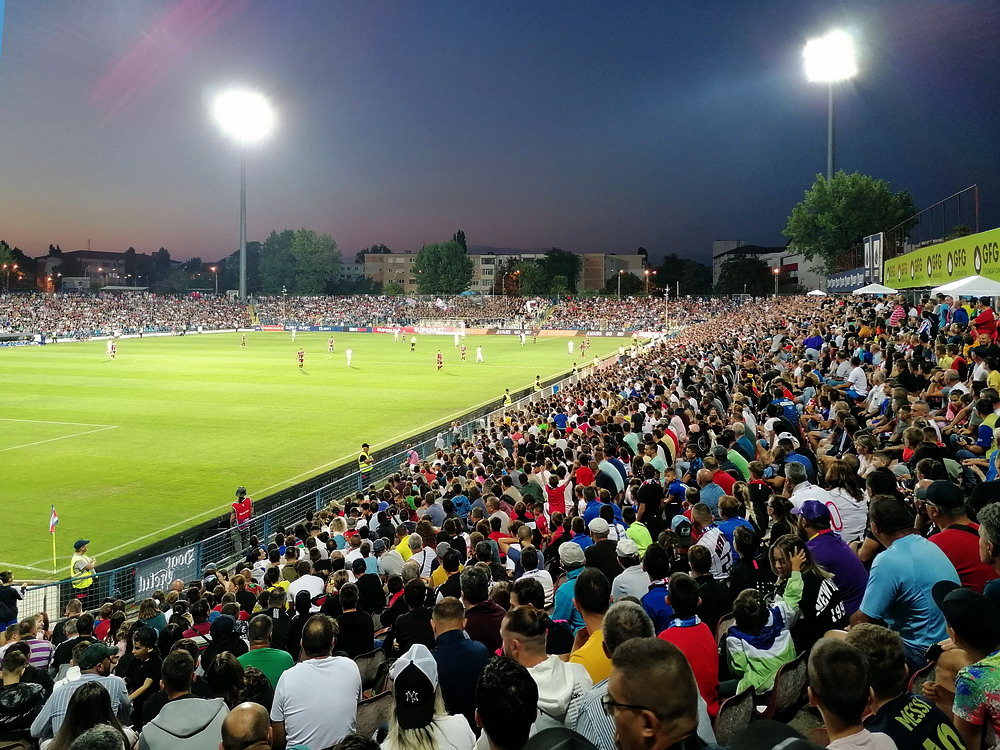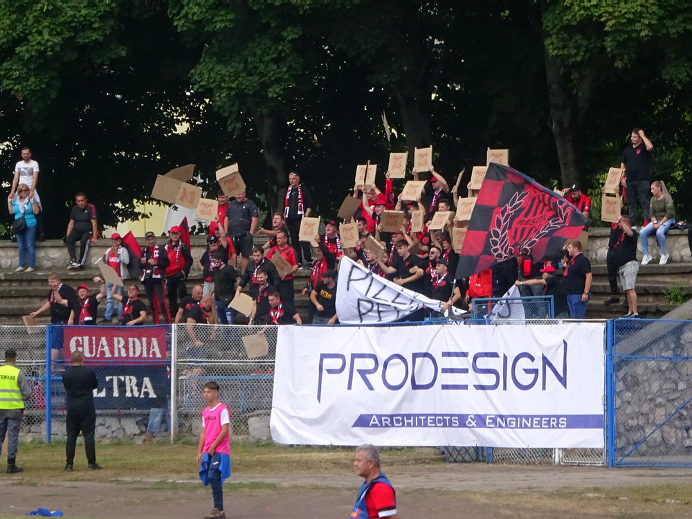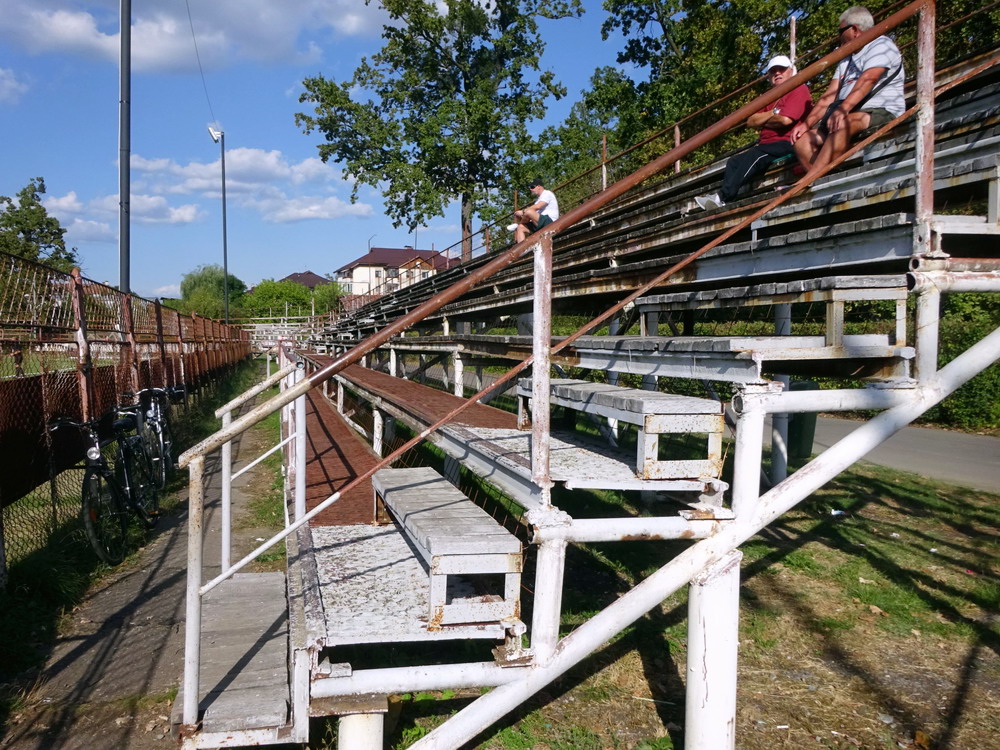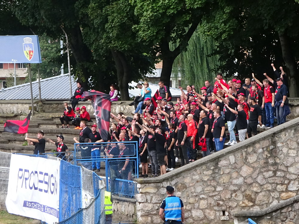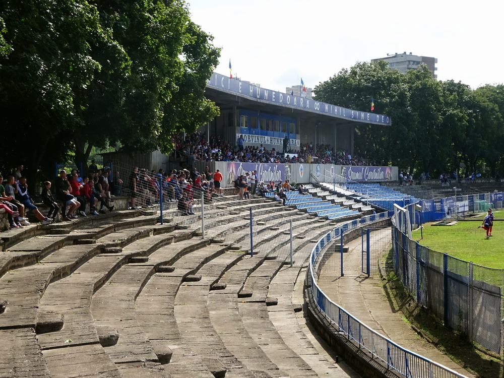 Die Gastgeber hatten erst zu dieser Saison den Wiederaufstieg gefeiert und eine gewisse Euphorie war durchaus spürbar, auch wenn am neunten Spieltag alle noch auf den ersten Saisonsieg warteten. Absurderweise stand aber auch erst eine Niederlage zu Buche, es wurden in neun Spielen tatsächlich acht Punkteteilungen erzielt – eine seltene Remis-Serie, die auch der glorreiche RWE vor einigen Jahren mal geschafft hat. Die Gäste waren der Favorit in der Partie, dem Treffer näher waren aber lange Zeit die Eisenmänner, die mit viel Herzblut und Engagement alles reinwarfen, was sie hatten. Den einzigen Treffer des Spiels erzielten dennoch die Gäste nach einer guten Stunde Spielzeit. Nachdem der Ball schon lange im Netz lag wurde dem Tor nach Rücksprache zwischen dem Referee und seinem Assistenten und letztlich finaler Bestätigung durch den Videoassistenten aber zurecht die Gültigkeit versagt. Auch das finale Aufbäumen der nun deutlich gefährlicheren Eisenbahner blieb unbelohnt und das Spiel wurde mit dem unattraktivsten aller Ergebnisse abgepfiffen. Das ‚Stadionul Otelul‘ ist noch eine der wenigen alten, nicht modernisierten oder neu erbauten Spielstätten der höchsten Liga Rumäniens. Ein schützendes Dach sucht man bis auf wenige Plätze auf der Haupttribüne ebenso vergebens wie fest erbaute Catering-Stände oder vernünftige sanitäre Anlagen. Diese fehlen sogar gänzlich und stattdessen übernehmen mobile Toilettenhäuser die undankbare Aufgabe. Aber irgendwie macht das den Spielbesuch ja nur authentisch.