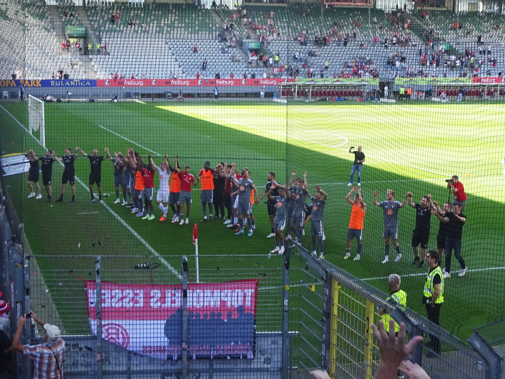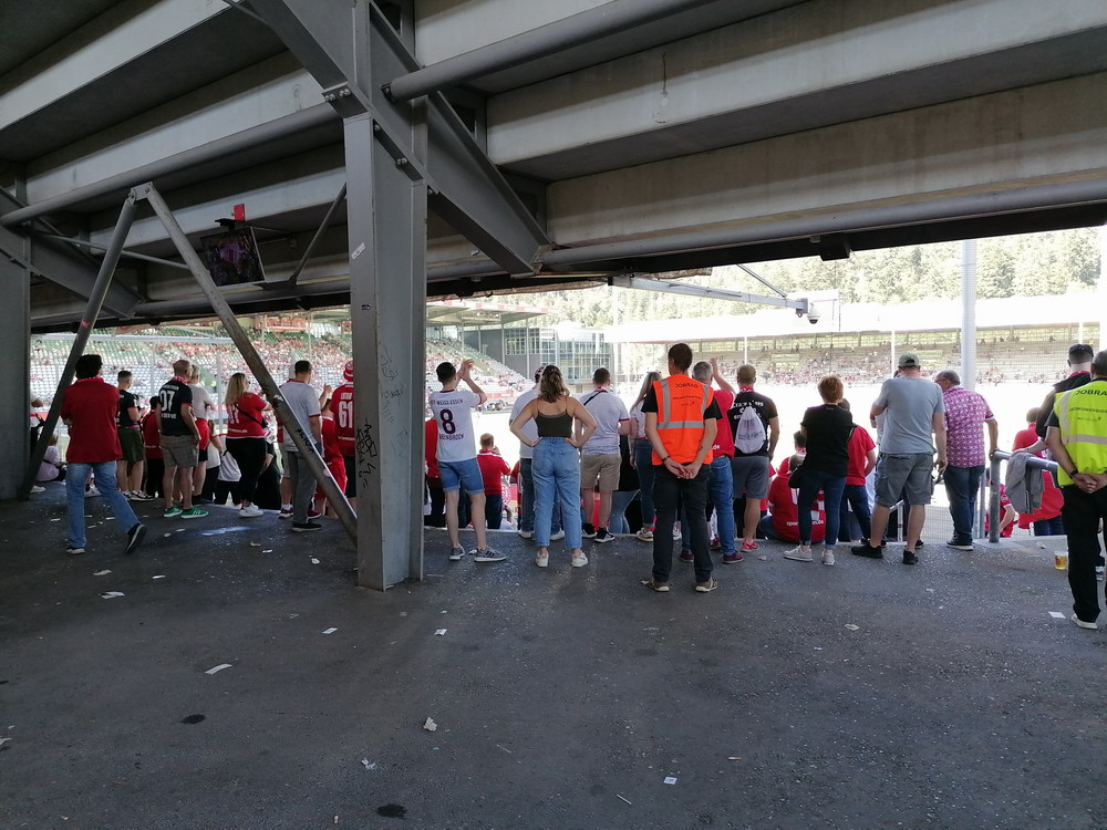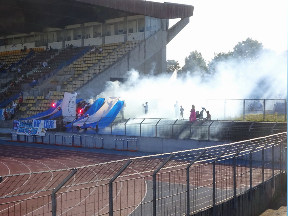 Mein Mitreisender war stark bemüht, ein Spiel für den heutigen Morgen zu recherchieren und wurde schließlich auf übelstem Amateur-Niveau fündig. In der 15.(!) Spielklasse – es gibt sogar noch eine 16.Spielklasse, dann ist aber wirklich Schluss – wurde munter vor sich hingebolzt. Der erste Versuch am ‚Stade Bruno Barina‘ schlug aufgrund von akutem Nebenplatz-Terror noch fehl, aber ein paar Kilometer weiter passte es dann. Da man es auf diesem Niveau mit der Pünktlichkeit offenbar nicht sehr genau nimmt, verpassten wir auch lediglich zwei oder drei Minuten. Im Stade de Moulin suchte man eine namensgebende Mühle vergeblich. Ebenso wie einen offiziellen Schiedsrichter, einen Trainer bei den Gastgebern oder mehr als einen Ersatzspieler beim Gäste-Team. Als wir eintrafen waren wir Zuschauer Nummer vier und fünf, 13 Personen sollten es schließlich werden, welche nach und nach die Sportanlage betraten. Drei kleine Kinder beschäftigten sich aber anderweitig und ein kleiner schwarzer Hund, der die Menschenschaar ergänzte, zeigte ebenso wenig Interesse am Spielgeschehen. Ein Paradebeispiel für Rumpelfußball wurde uns dann geboten, welches auf seine Art unterhaltsam war. In Einzelaktionen ließ so mancher Akteur dann sein individuelles ‚Können‘ aufblitzen, welches im Zusammenspiel aber schnell wieder verblasste. Dennoch war diese Veranstaltung sehr kurzweilig, wenn man mal auf die feinen Details achtete, die der Bodensatz des Amateurfußballs bietet.