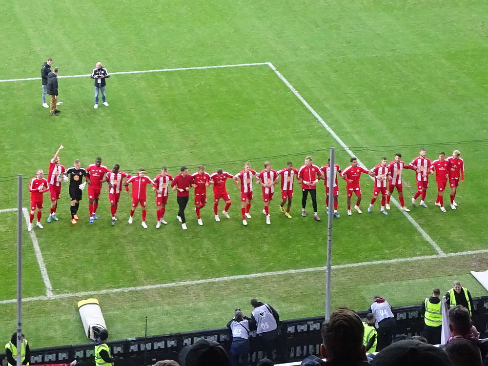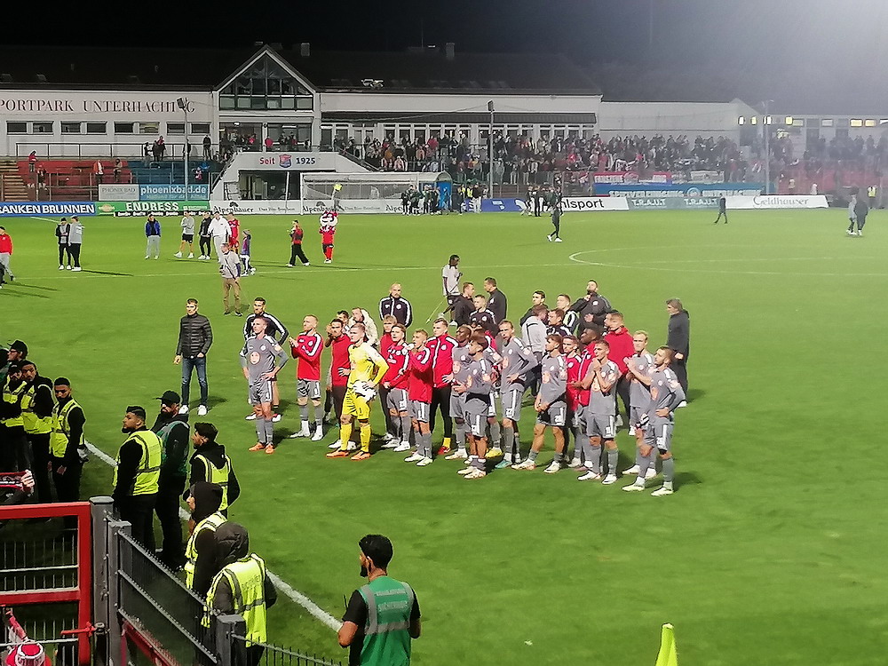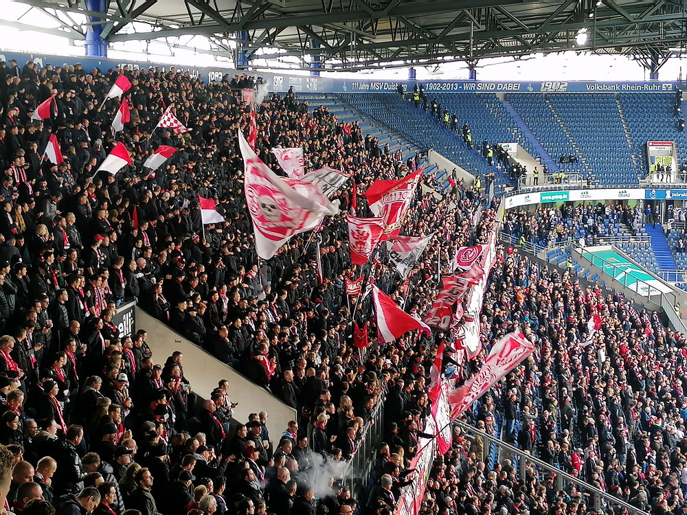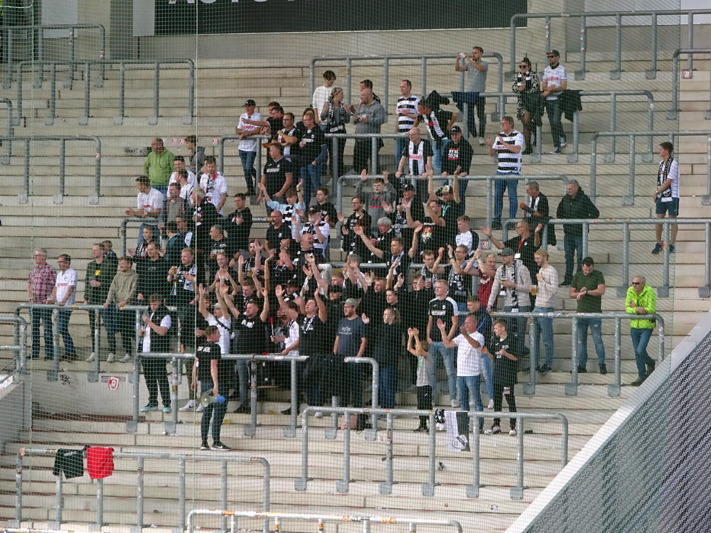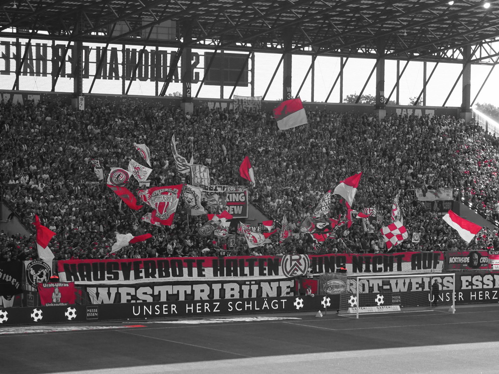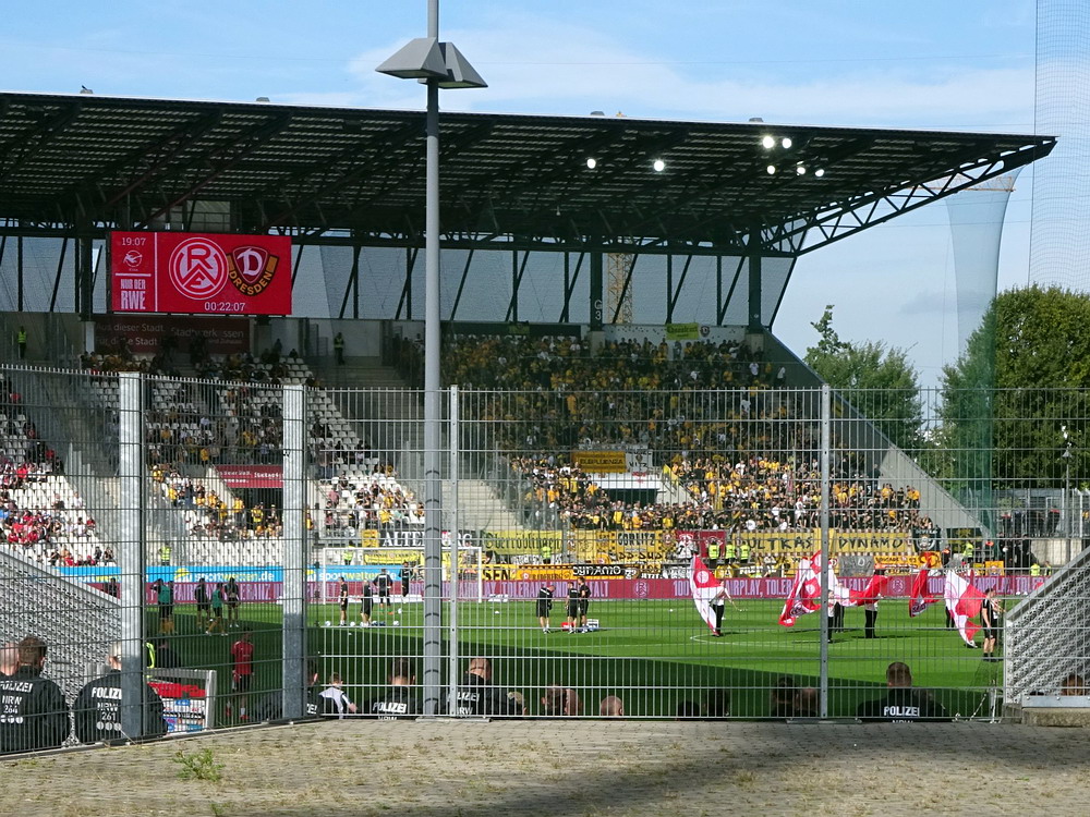 Der Strafstoß wurde sicher verwandelt und die Gäste spielten danach 83 Minuten ihren Stiefel runter. Die Adler waren in Unterzahl nicht hoffnungslos unterlegen, es fehlten aber die Mittel um offensiv gefährlich zu werden. Der früh nach der Pause erzielte zweite Treffer war eigentlich nur am Rande interessant, denn das gesamte Publikum döste aufgrund der einseitigen und dadurch todlangweiligen Partie vor sich hin. Auch vom doppelten Uerdinger Ultra-Dutzend kam nicht viel, insgesamt beschlich mich ein Pre-Season-Friendly-Feeling. Die Punkte gegen den Abstieg müssen aber eh gegen andere Clubs geholt werden. Nach Spielende gab es dann auf der Straße vor der Anlage noch etwas Rennerei. Ich war eh überrascht, dass dieses Heimspiel auf der recht ungeschützten Platzanlage ohne echte Fantrennung stattfinden durfte. Da war für einige Erlebnisorientierte aus dem rot-weissen Lager die Versuchung wohl doch zu groß. Außer viel Blaulicht und übertriebener Anzahl zusammengezogener Streifenwagen ist aber offenbar nicht viel passiert.