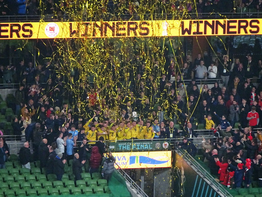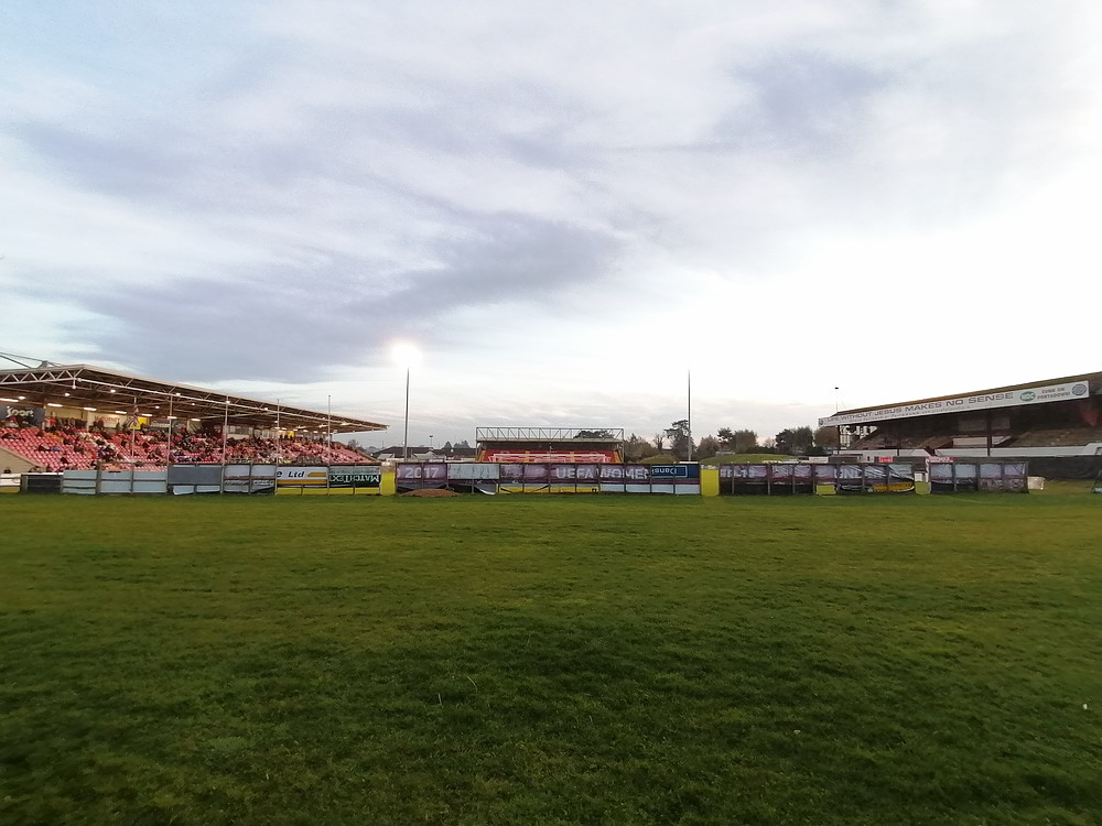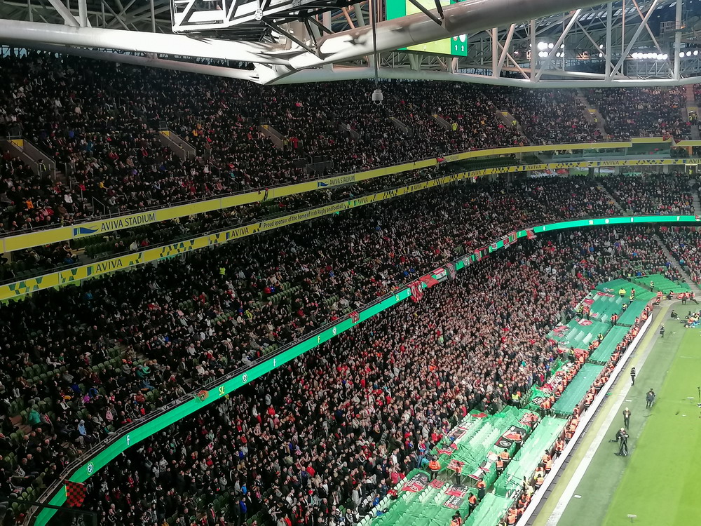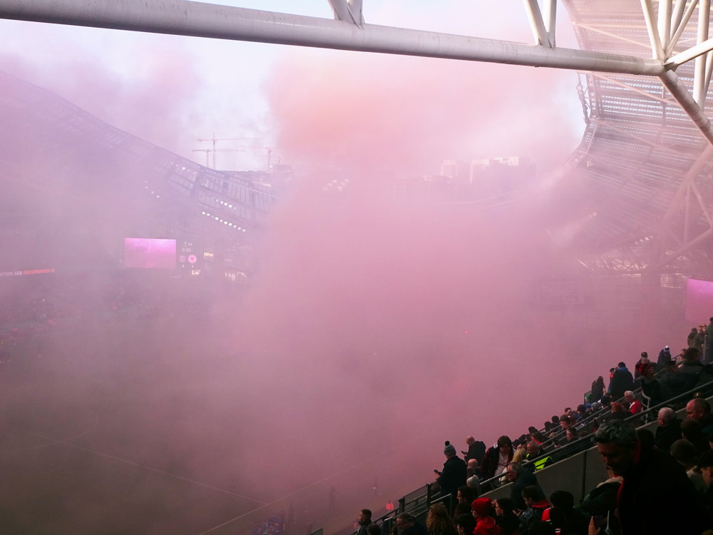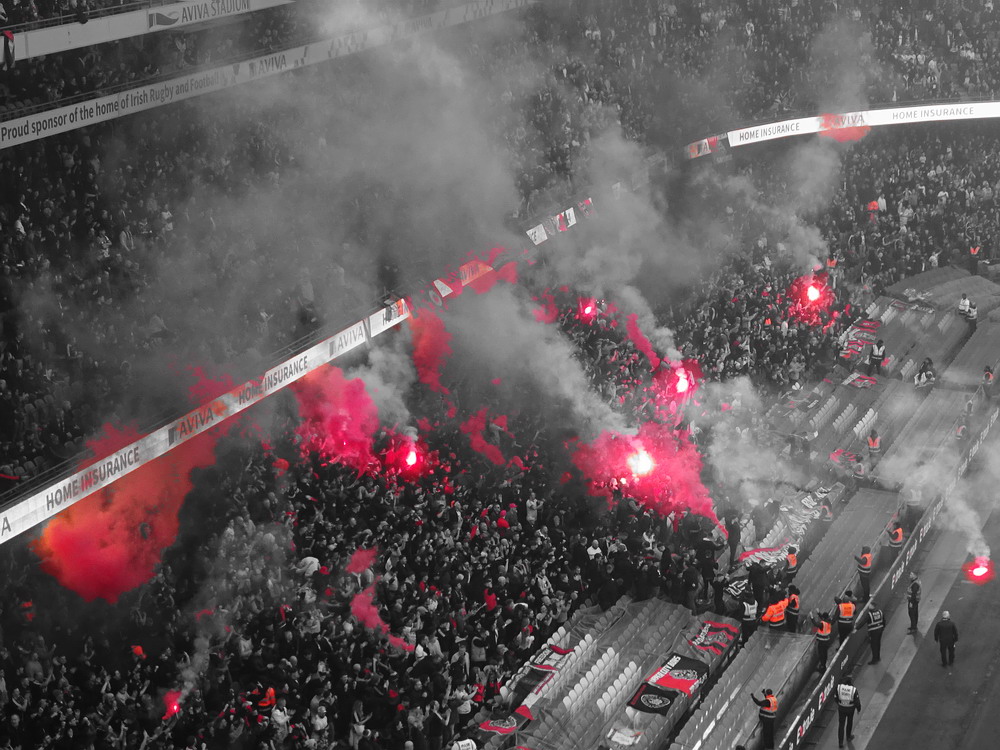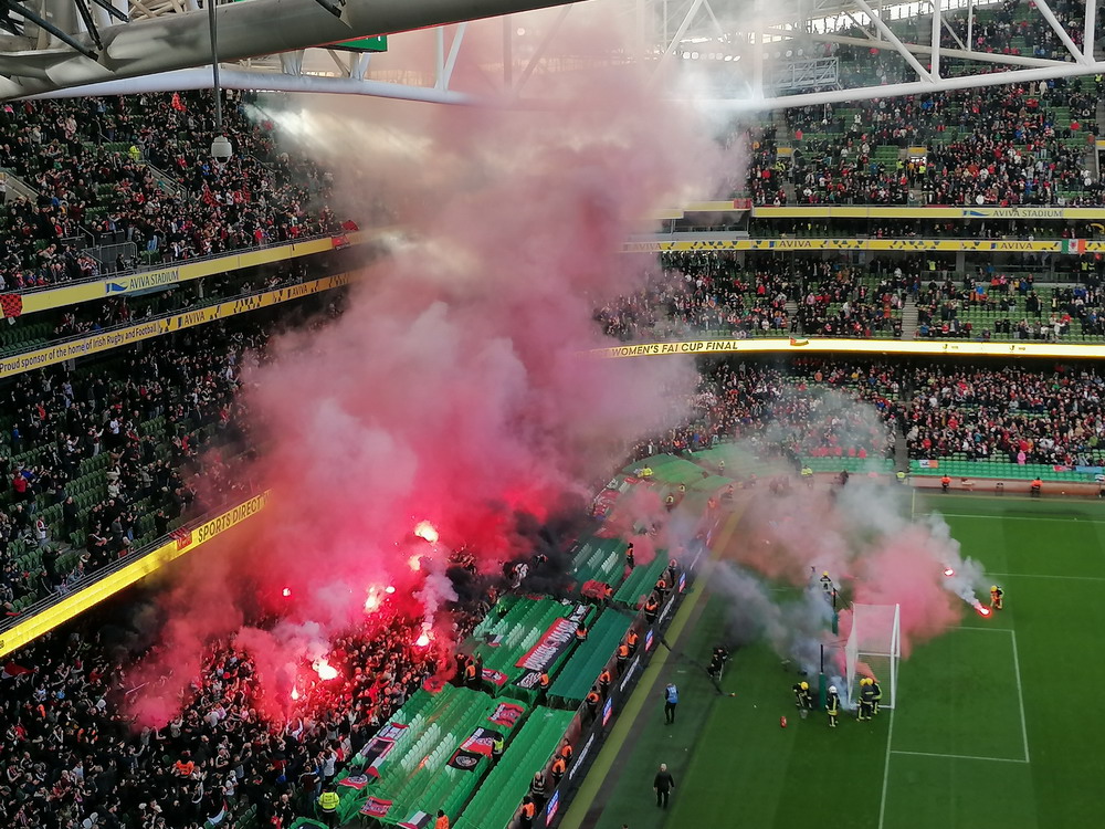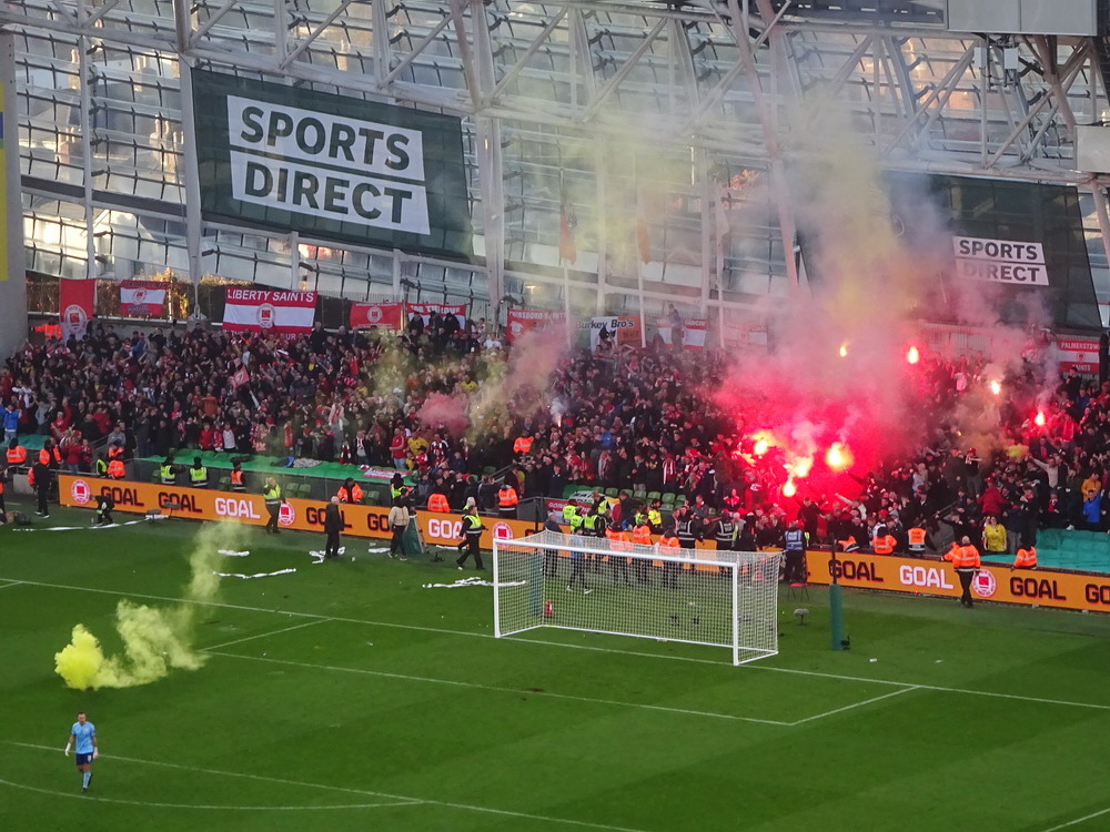Etwa 800 Anhänger waren aus dem nahen Zwickau angereist. Trotz widriger Umstände präsentierte die Szene um ‚Red Kaos‘ eine Choreo. Ein überdimensionaler Doppelhalter zeigte das Maskottchen der Gruppe, welches den Landespokal im Arm hielt. Am Zaun prangte ein fettes Spruchband, welches lautete „Wer Visionen hat, der soll zum FSV gehen“ und zielte wohl auf einen möglichen Pokalgewinn ab, eventuell auch auf die mutige Vorstellung, den ins Schlingern geratenen Verein ohne Hilfe eines Investors aus eigener Kraft heraus zu retten. Abgerundet wurde die Aktion mit etwas vom Winde verwehten Rauch in den Club-Farben. Auch die kleine Szene der Gastgeber hatten etwas vorbereitet und so freute sich der Löwe aus dem VfB-Vereinswappen auf einen Sonntagsbraten, mit dem vermutlich die Schwäne gemeint waren. Aus dem kleinen Heim-Block wurde auch ab und an supportet, was natürlich hinter den Gesängen aus dem Gäste-Block verblasste. Allerdings geriet das Liedgut aus der Zwigge-Kurve zum Teil langatmig und einschläfernd. Zu lang wurden manche Lieder getragen, zu speziell waren die Melodien. Das war schon sehr ‚ultra‘ und nullkommanull aufs Spielgeschehen bezogen. Der Kick war in der ersten Hälfte auch ziemlich unterirdisch. Der FSV hatte zwei Tor-Chancen, die ungenutzt blieben, ansonsten war König Fehlpass sehr präsent. Das änderte sich in Hälfte zwei, als die Gäste zielstrebiger auftraten. An das späte Führungstor für die Gäste zehn Minuten vor dem Ende habe ich aber trotzdem nicht mehr geglaubt. Treffer Nummer zwei in der Nachspielzeit war dann nur noch abschließende Kosmetik.