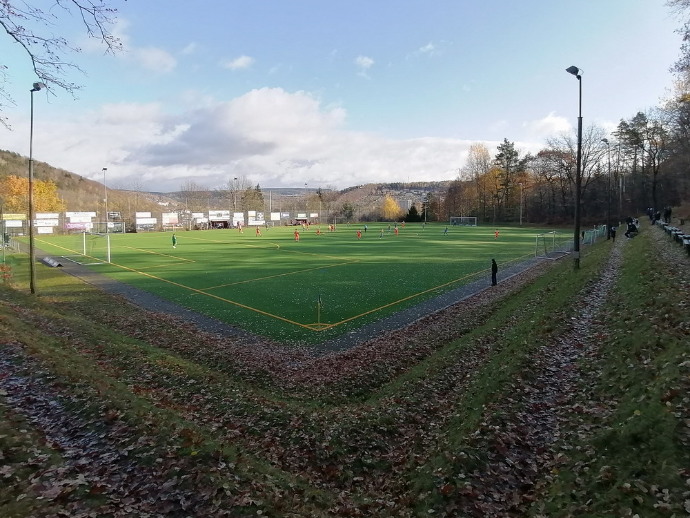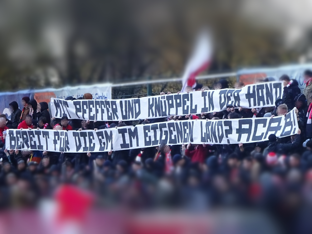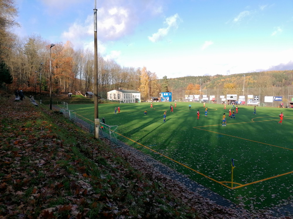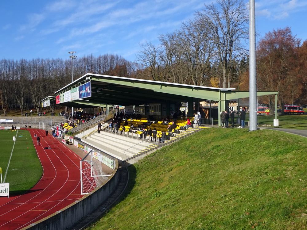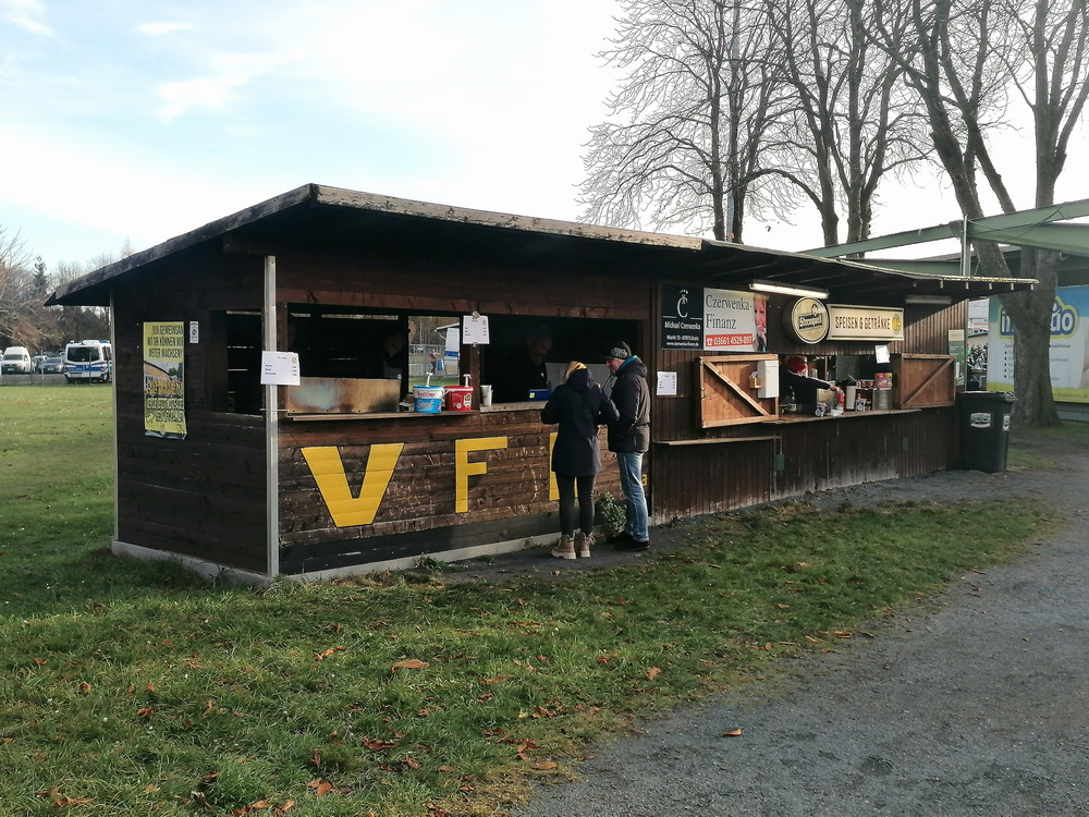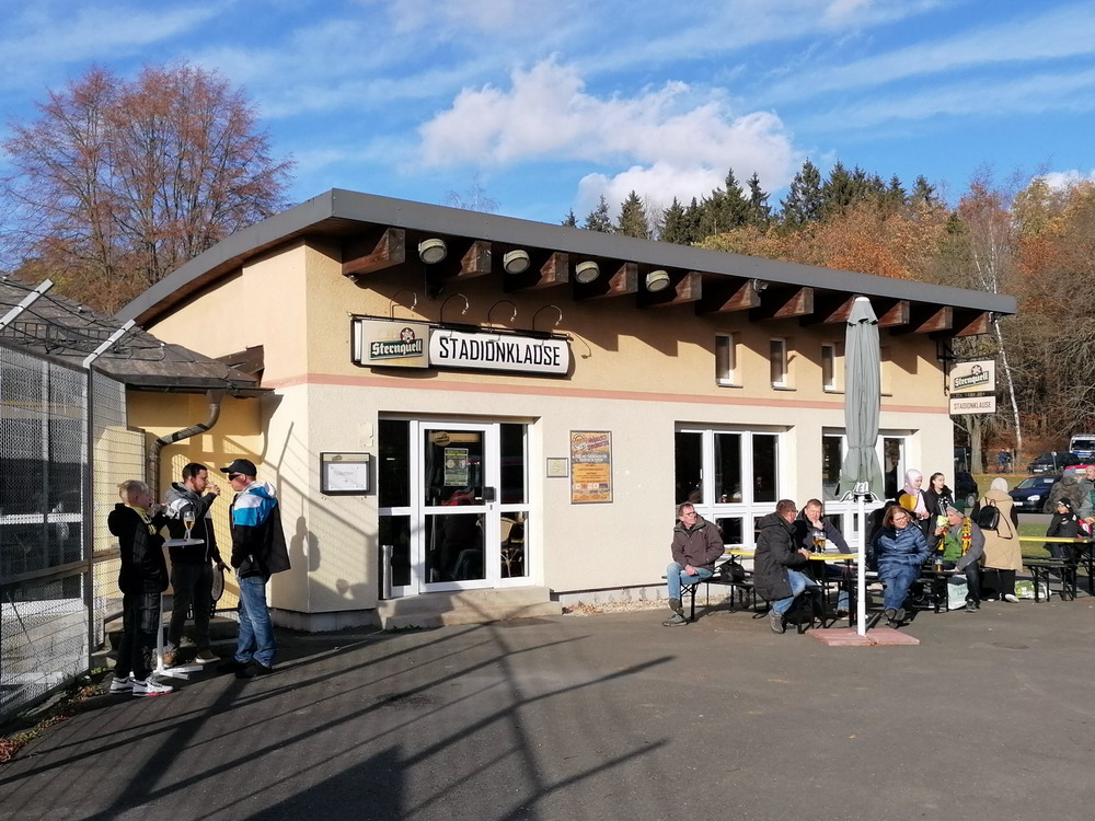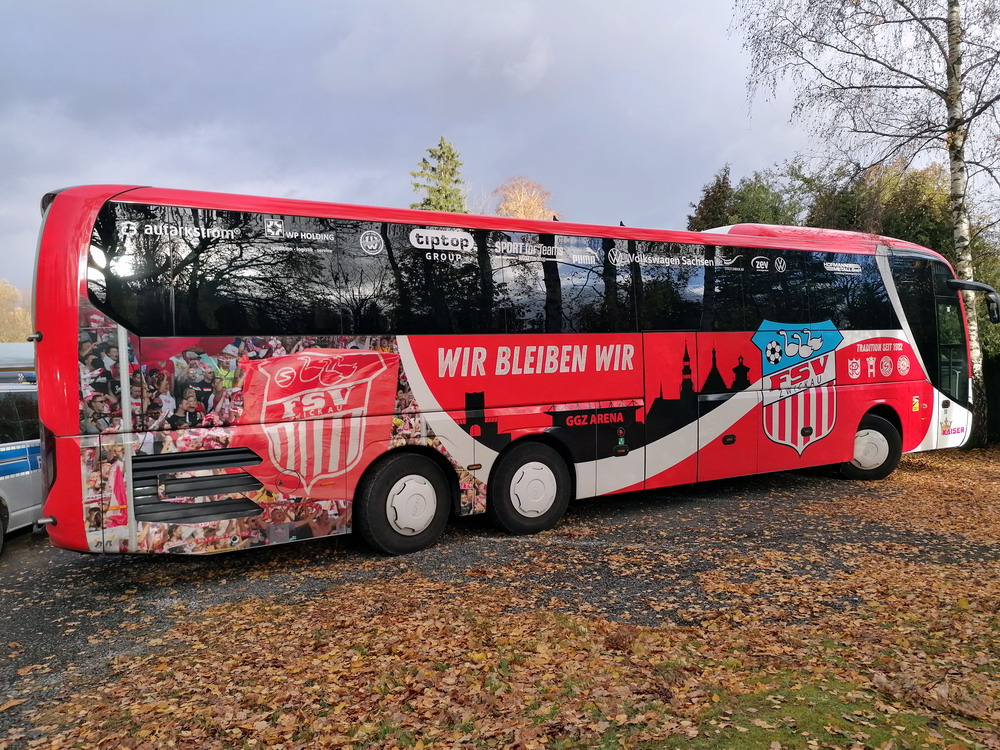 Die zweite Kraft im Vogtland hinter dem VFC Plauen ist der VfB Auerbach. Allerdings betrifft dieser Aussage eher die öffentliche Wahrnehmung, denn in den vergangenen Jahren war der VfB dem VFC durch die Teilnahme an der Regionalliga einen Schritt voraus, als die Plauener längst abgestiegen waren. Im vergangenen Jahr musste aber auch der VfB den bitteren Gang in die Oberliga antreten. Zum Pokalspiel reiste heute der FSV Zwickau an, ein Club der seit Monaten von Krisen geschüttelt wird. Gefühlter Beginn, vielleicht sogar tatsächlicher Auslöser der Misere, war die unsägliche Bierdusche des Referees beim Ligaspiel gegen den glorreichen Deutschen Meister von 1955, der Punktabzug und Geldstrafe zur Folge hatte. Danach gingen die eh schon stark abstiegsbedrohten Schwäne in den Sturzflug über, der schließlich im Abstieg in die Regionalliga sein Ende fand. Das wiederum hatte einen finanziellen Engpass zur Folge, der dank einer Crowdfunding-Aktion der Fanszene erst einmal überstanden wurde. Allerdings sitzt der Gürtel weiterhin verdammt eng und der FSV spielt eine desaströse Saison. Als aktueller Vorletzter droht der nächste Abstieg und sollte dieser Fall eintreten, dürfte es wohl verdammt dunkel über der Automobil-Stadt werden. Die Anhängerschaft ließ sich aber weder von der bedrohlichen Lage noch vom miesen Wetter beeindrucken und reiste zahlreich ins Vogtland.